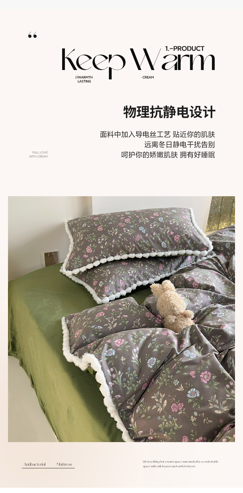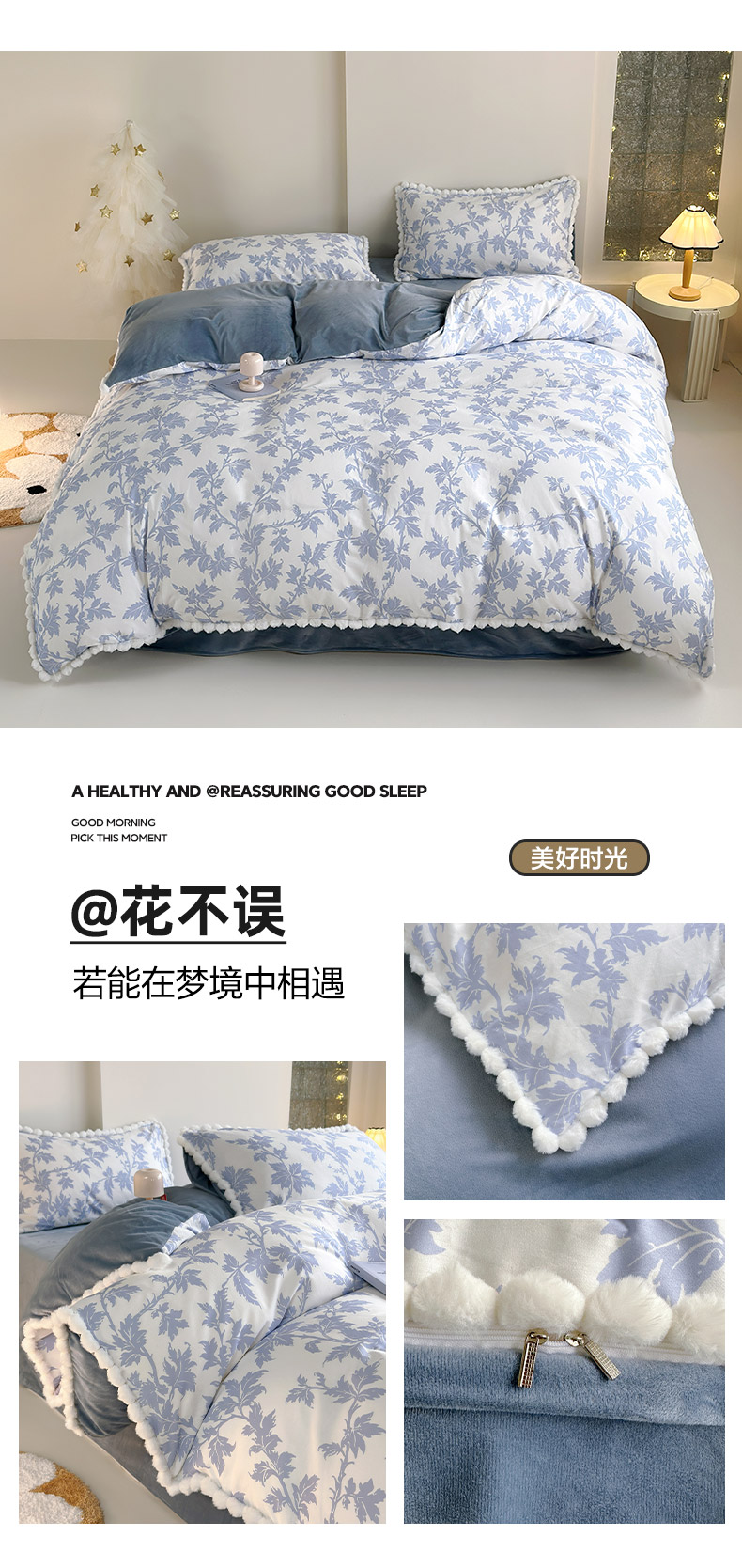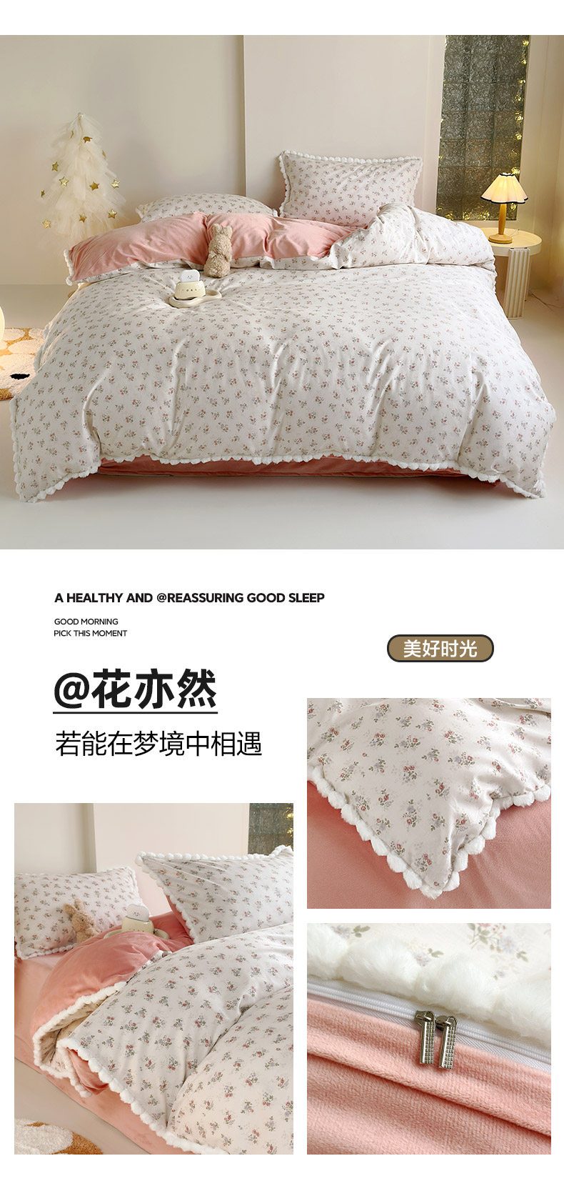 (总)怡家居 2025秋冬新款毛球花边棉加绒四件套,觅秋,花不误,花亦然,花影,剪影,栗子狗,千代兰,童趣,嫣然