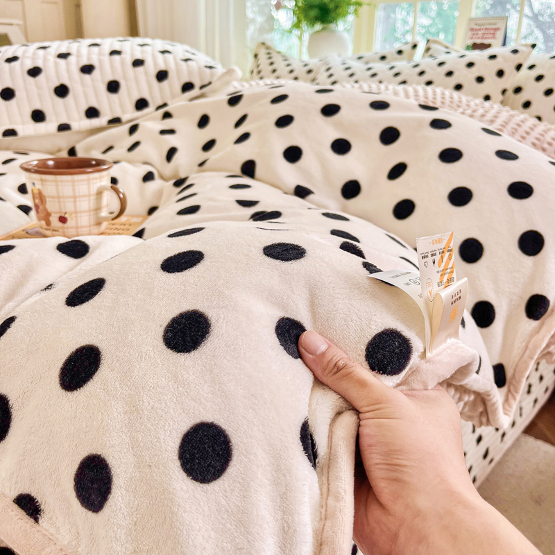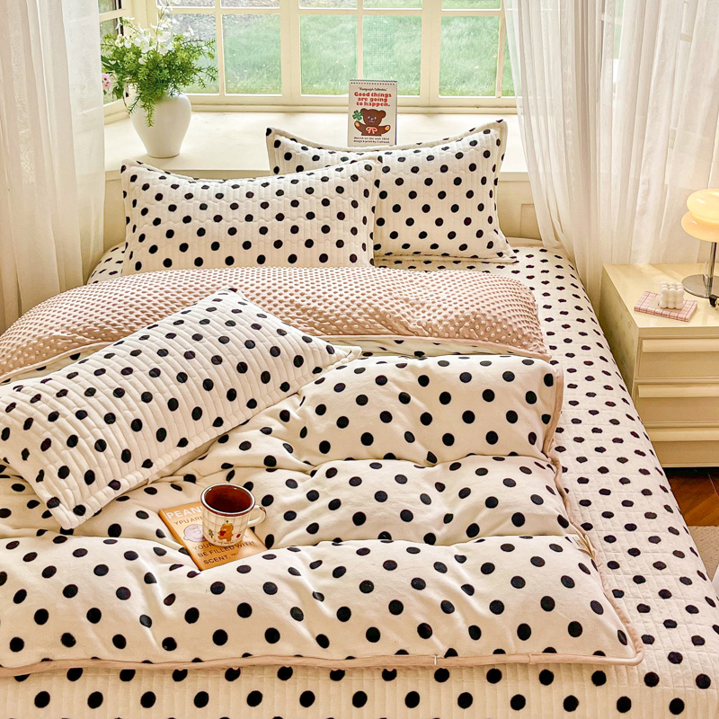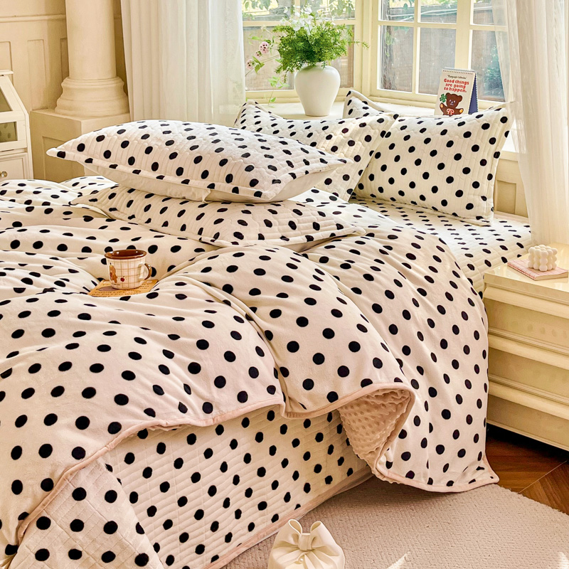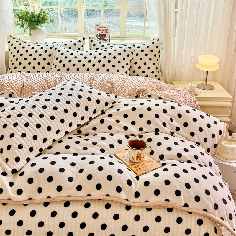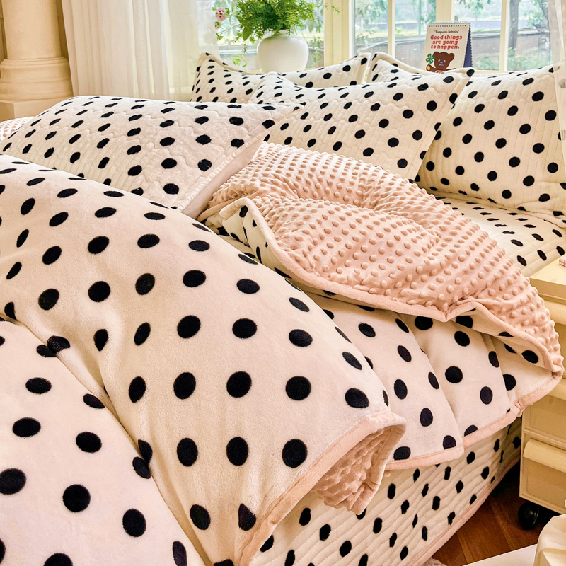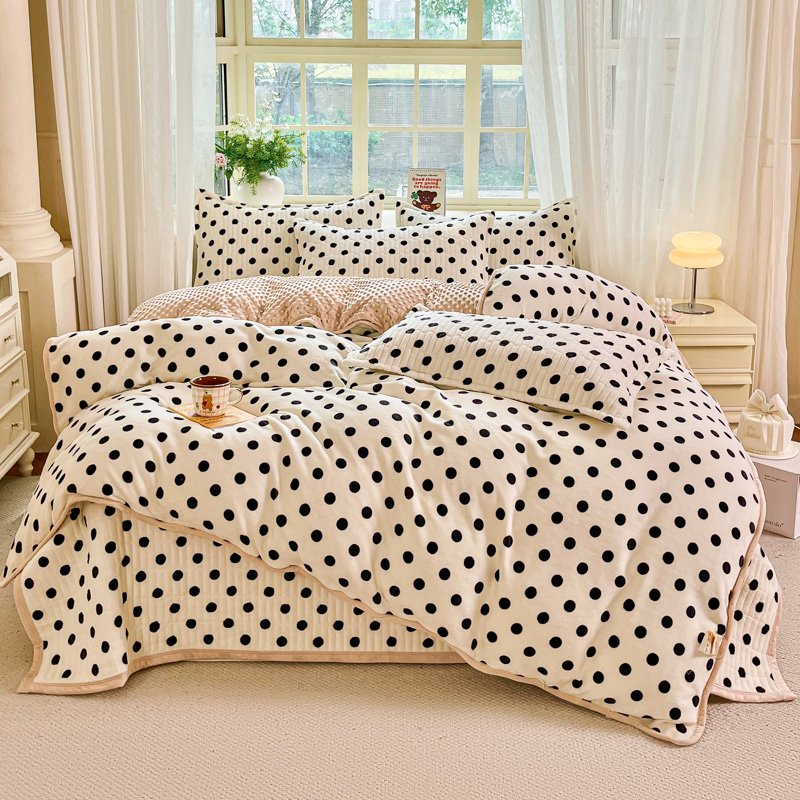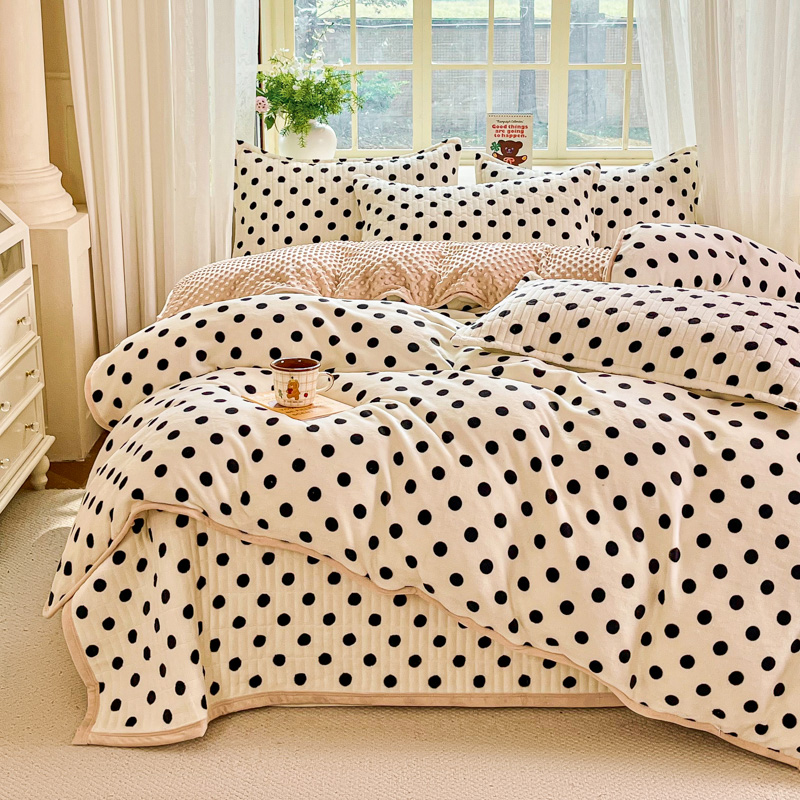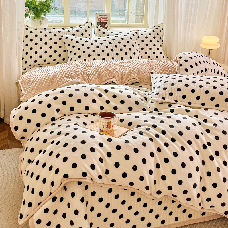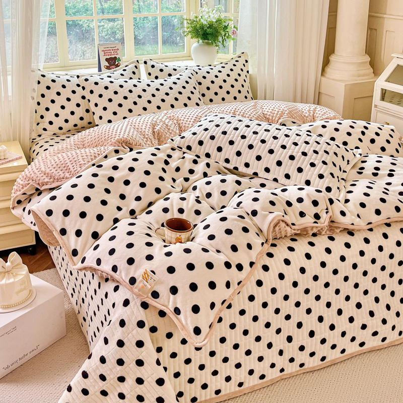 尚美家纺 2025冬季新品豆豆绒高克重床盖被套四件套 小波点米色