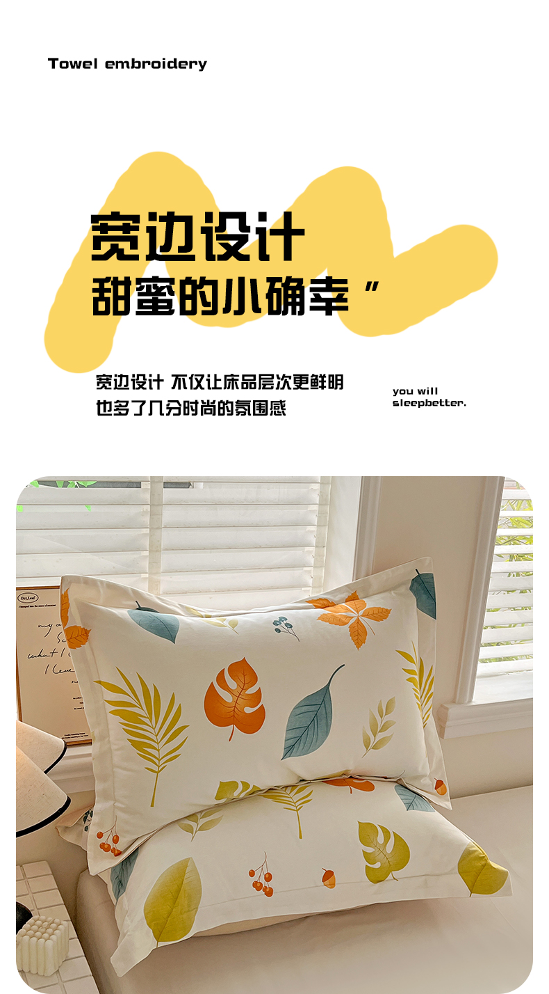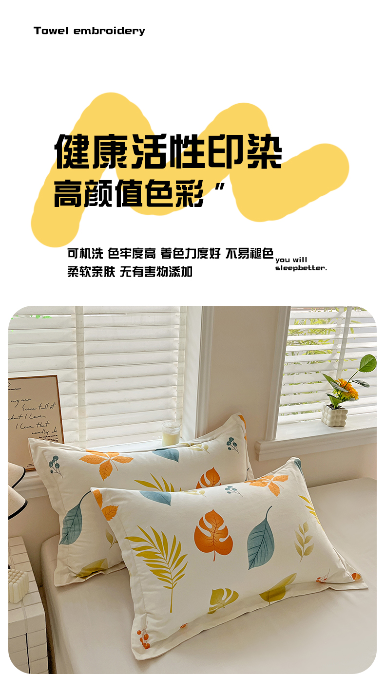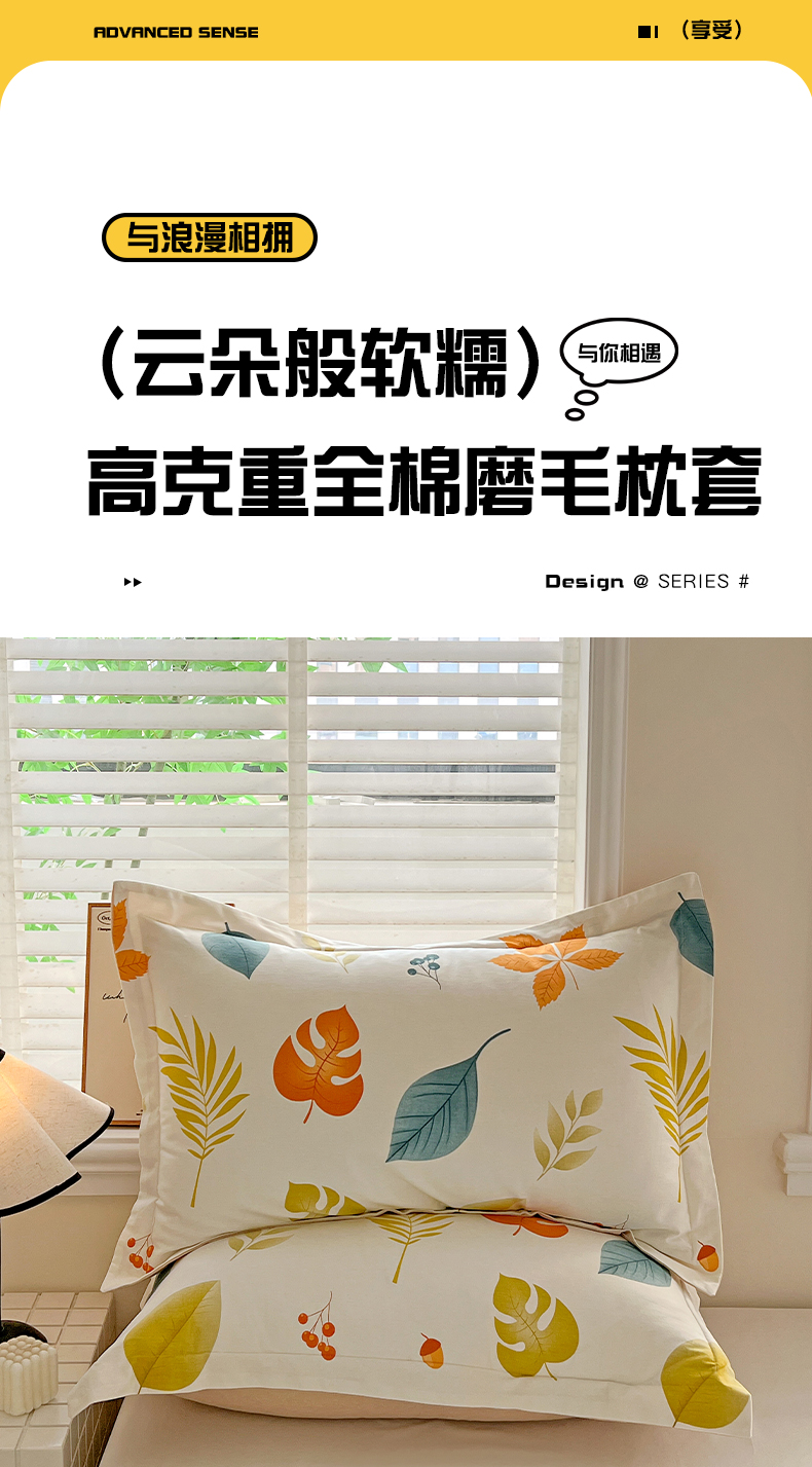 商品名称:依庭 2025新款高克重全棉纯棉磨毛印花单枕套 叶之恋