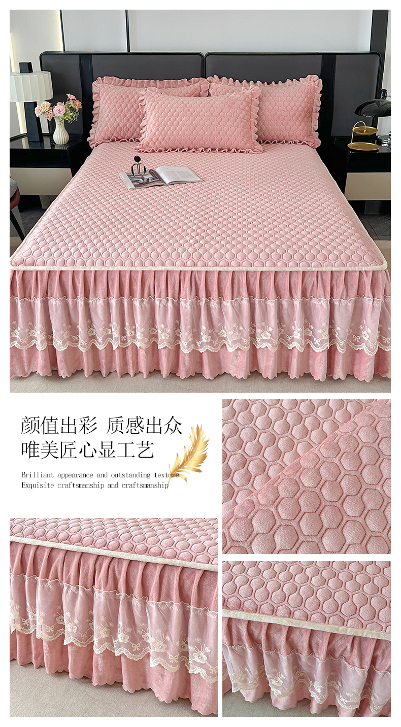 • 91家纺网 家纺一手货源 找家纺 董韵家纺 2025新款牛奶绒刺绣夹棉床裙三件套系列(控价) 绒语-豆沙