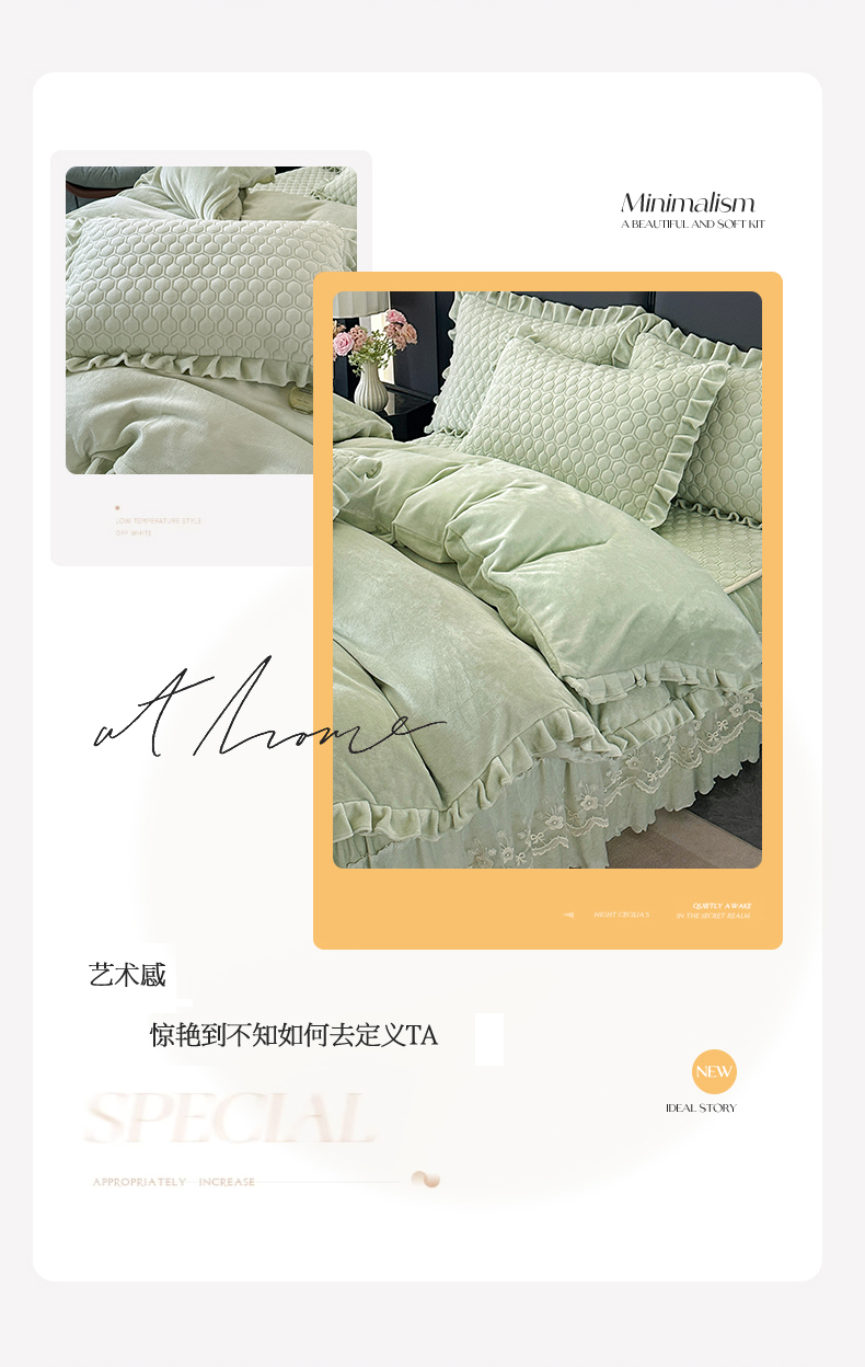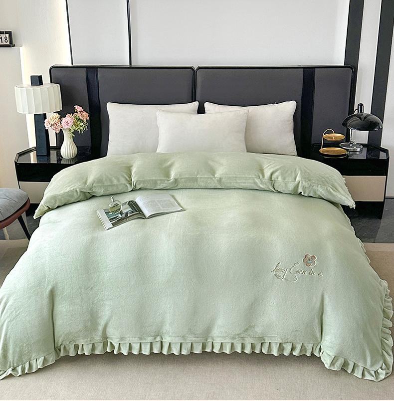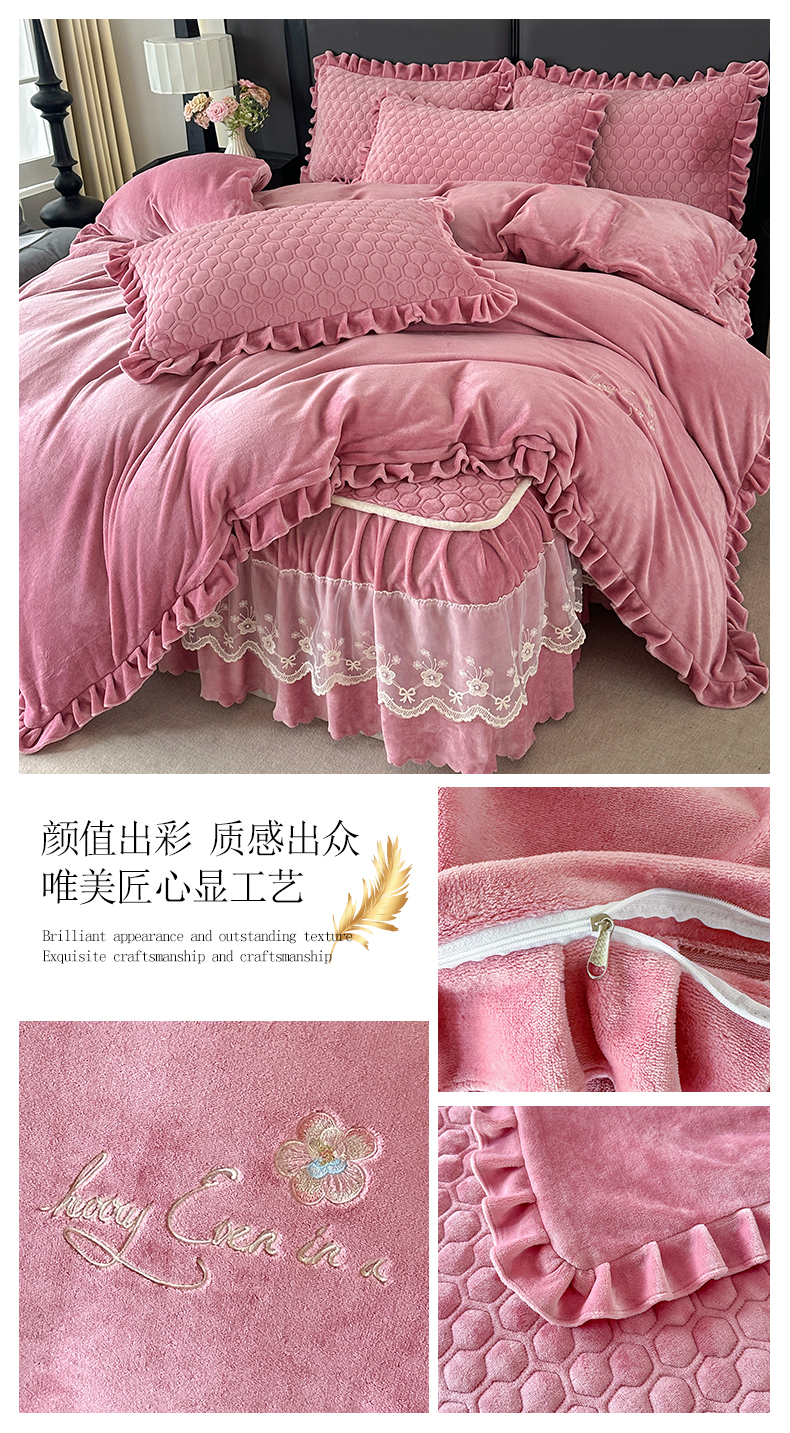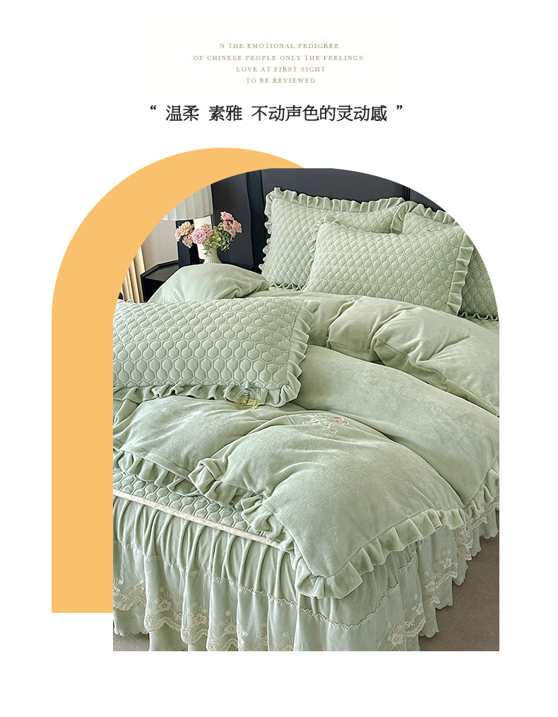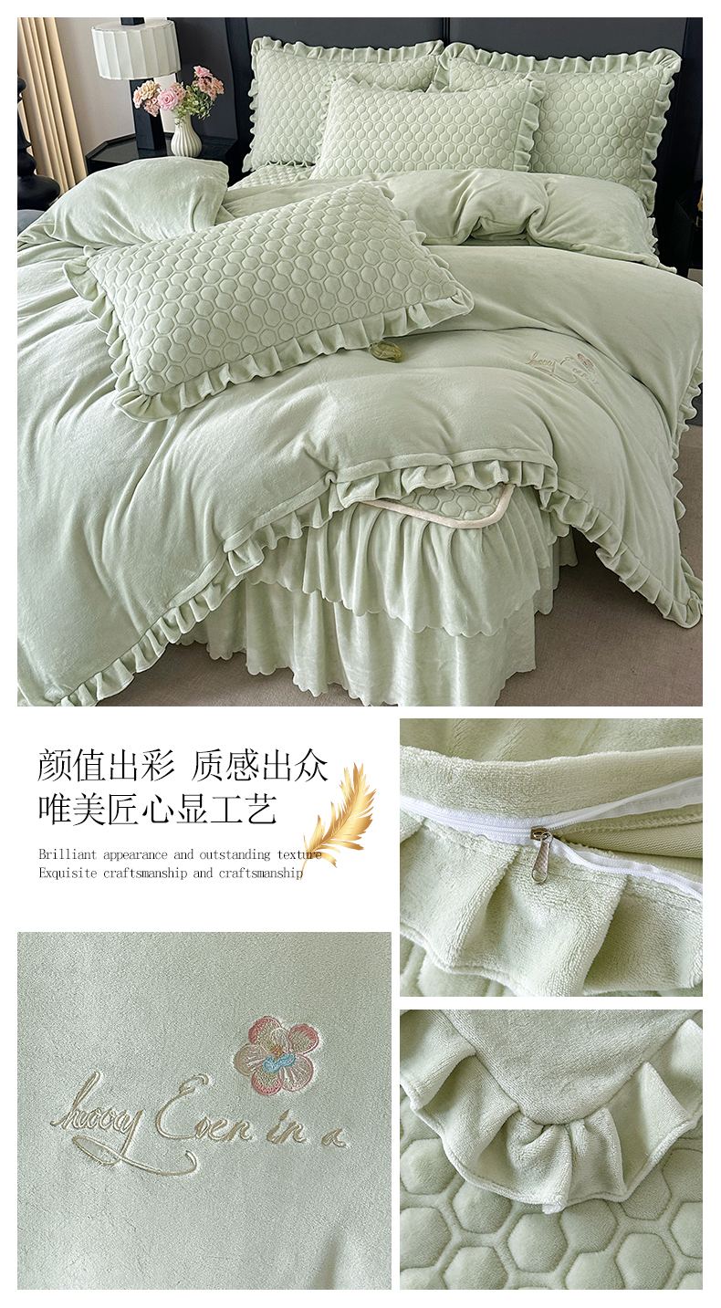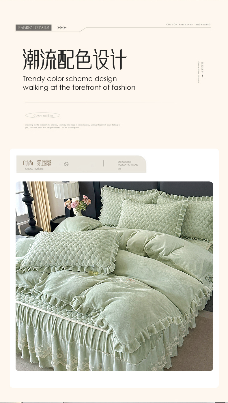 商品名称:董韵家纺 2025新款牛奶绒刺绣夹棉床裙四件套系列(控价) 丝语-青霭