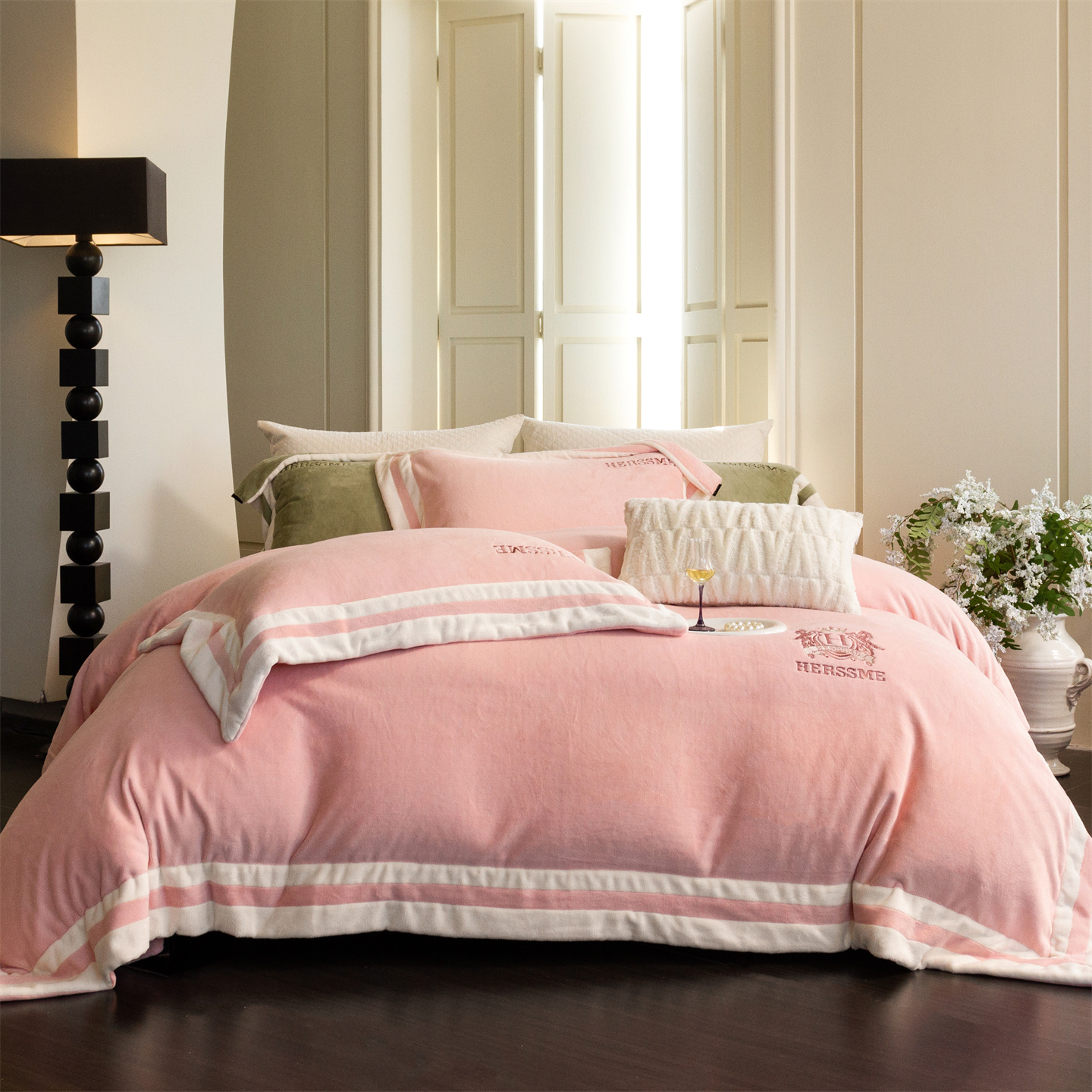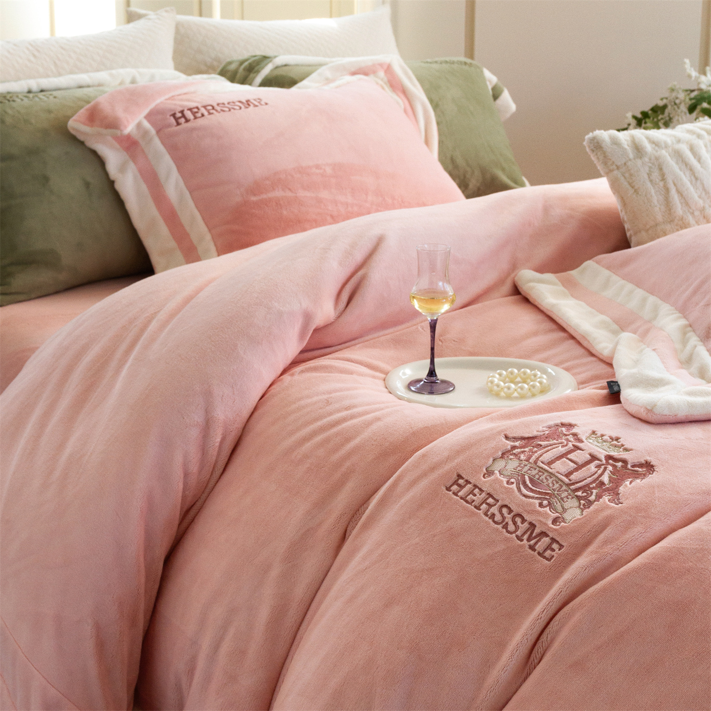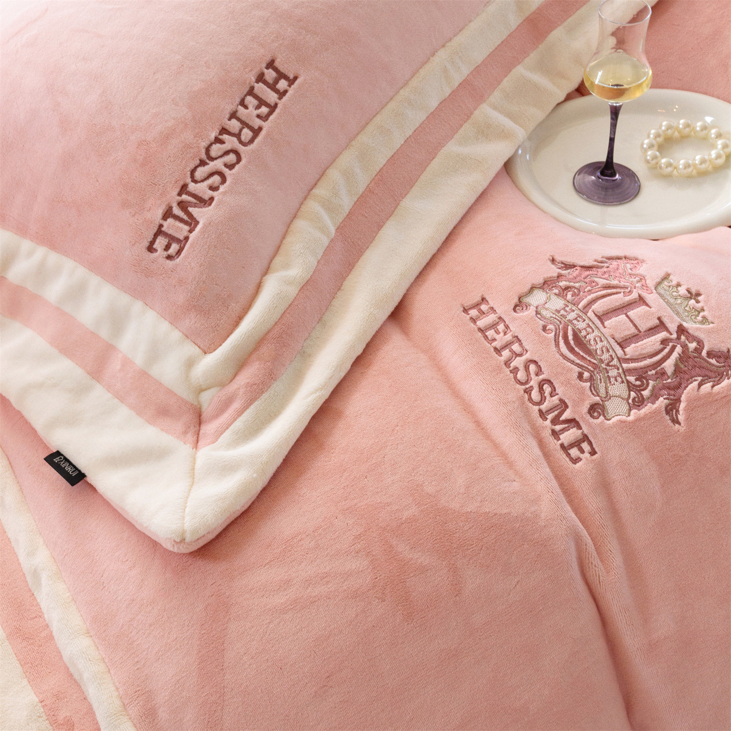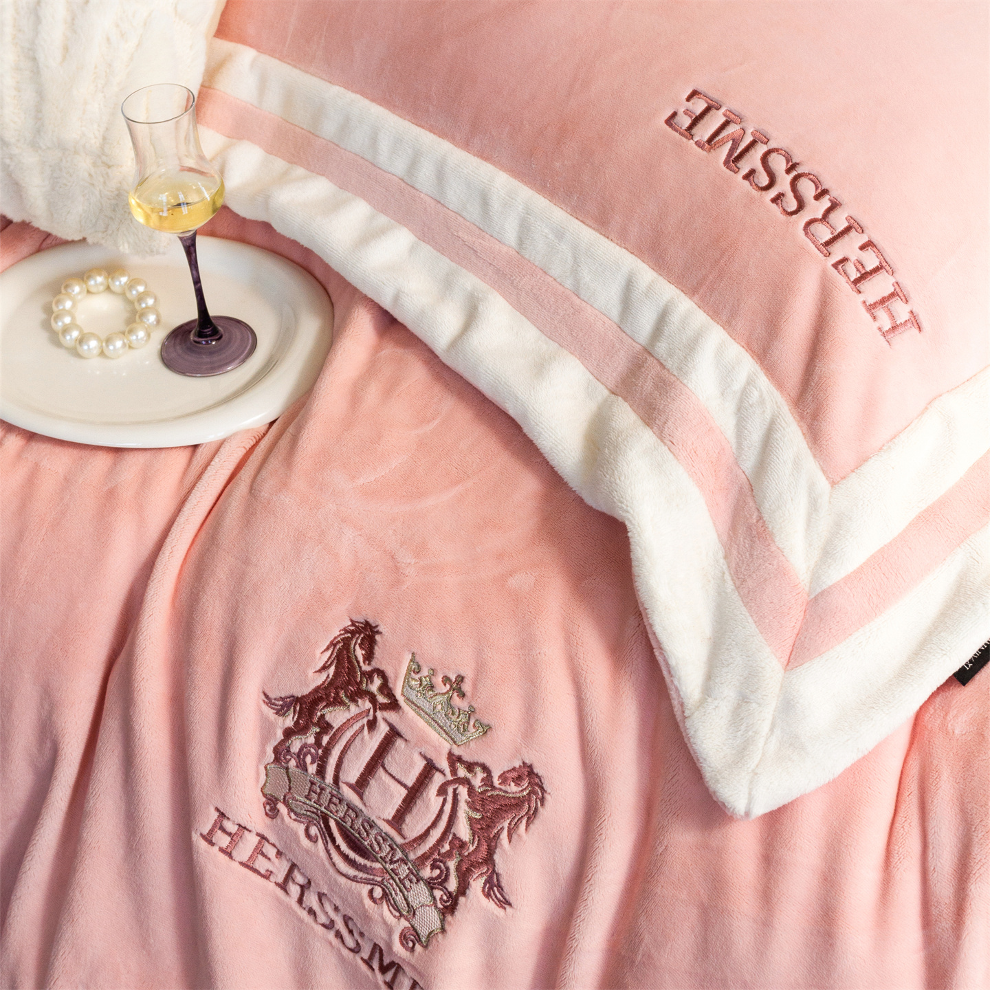 (总)馨蕊家居 2025新款意大利进口高精密刺绣拼角工艺秋冬法式高奢雪貂绒系列-绒雪芙 会员-10【券后控价358/378】,绒雪芙-奶咖,绒雪芙-蔷薇粉,绒雪芙-婉若紫,绒雪芙-月光白