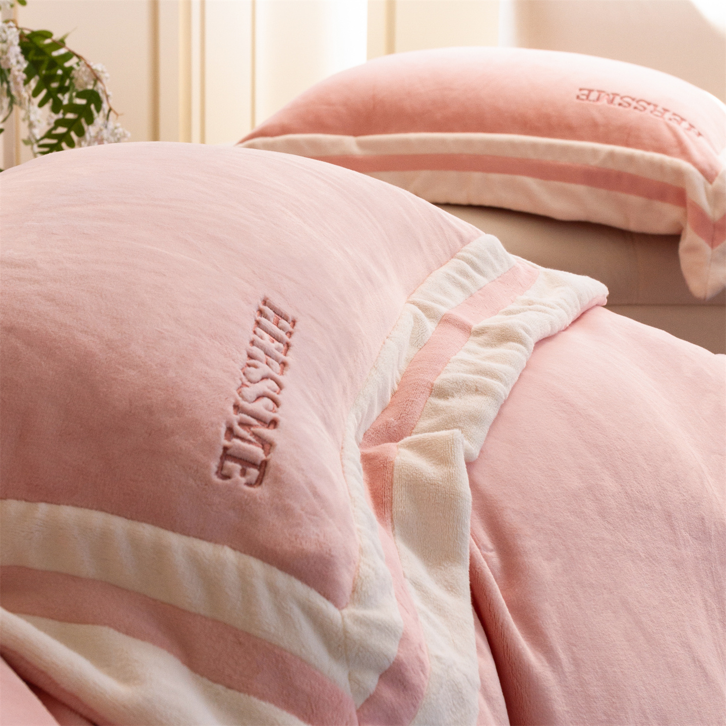 商品名称:馨蕊 2025新款秋冬轻奢煦暖绒牛奶绒四件套系列-绒巴黎 会员-10【券后控价358/378】 绒巴黎-蔷薇粉