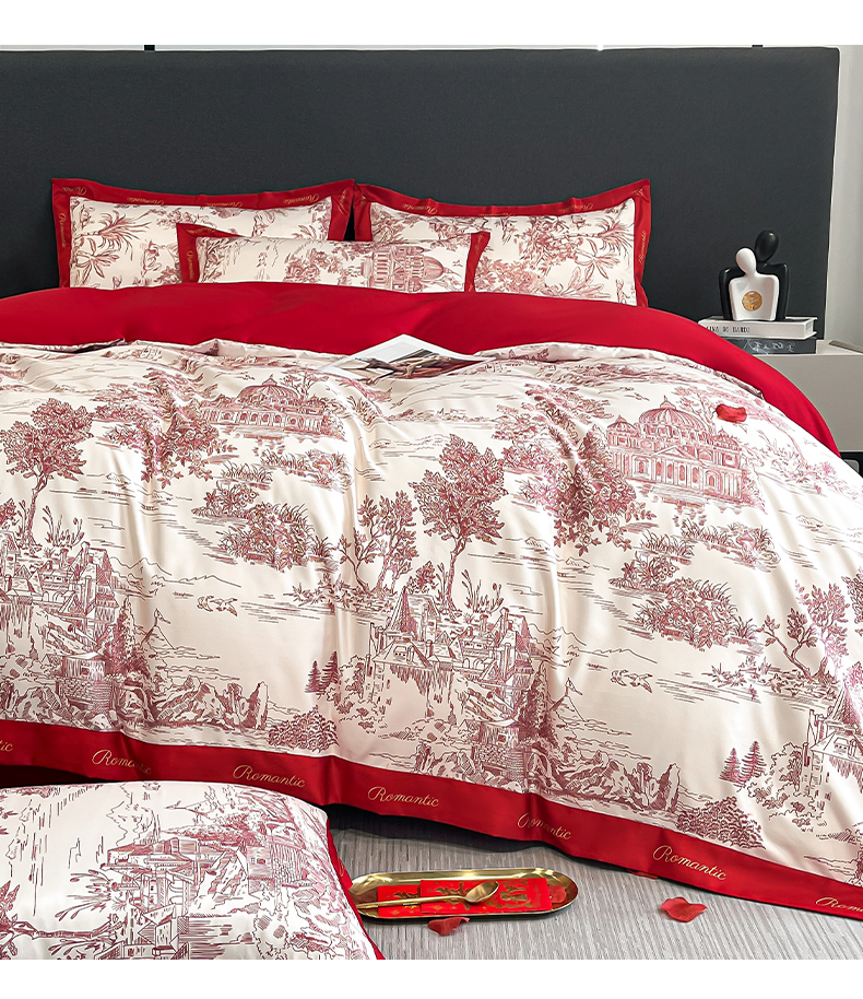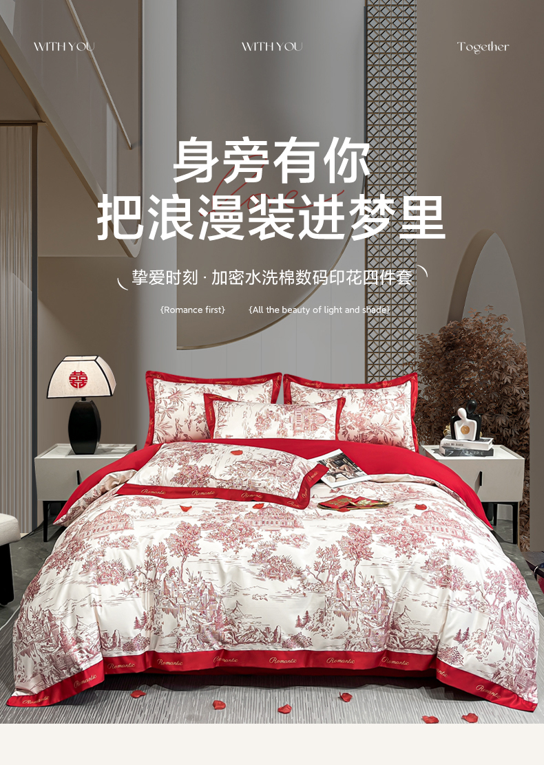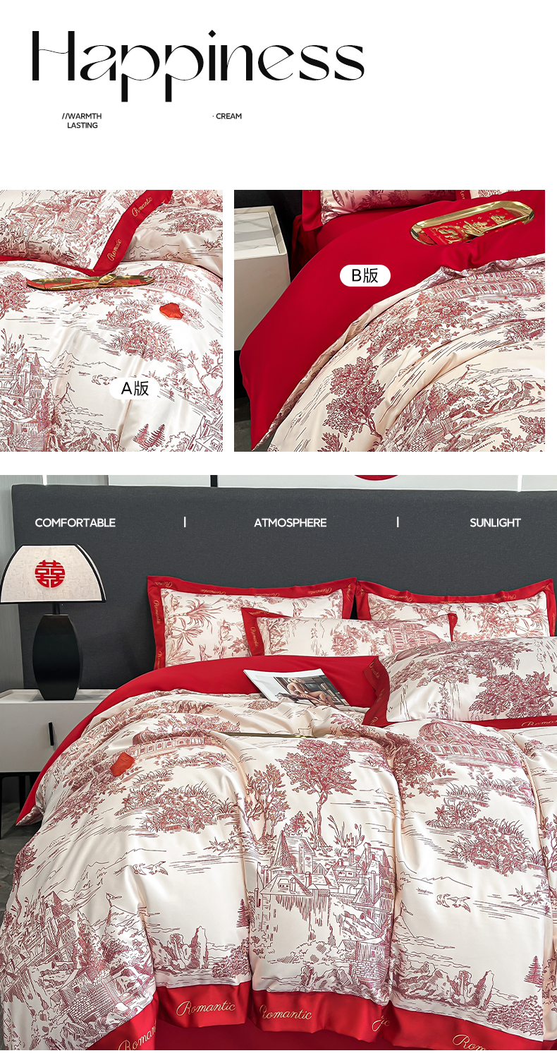 花愿 2025新款婚庆大版印花四件套 浪漫庄园