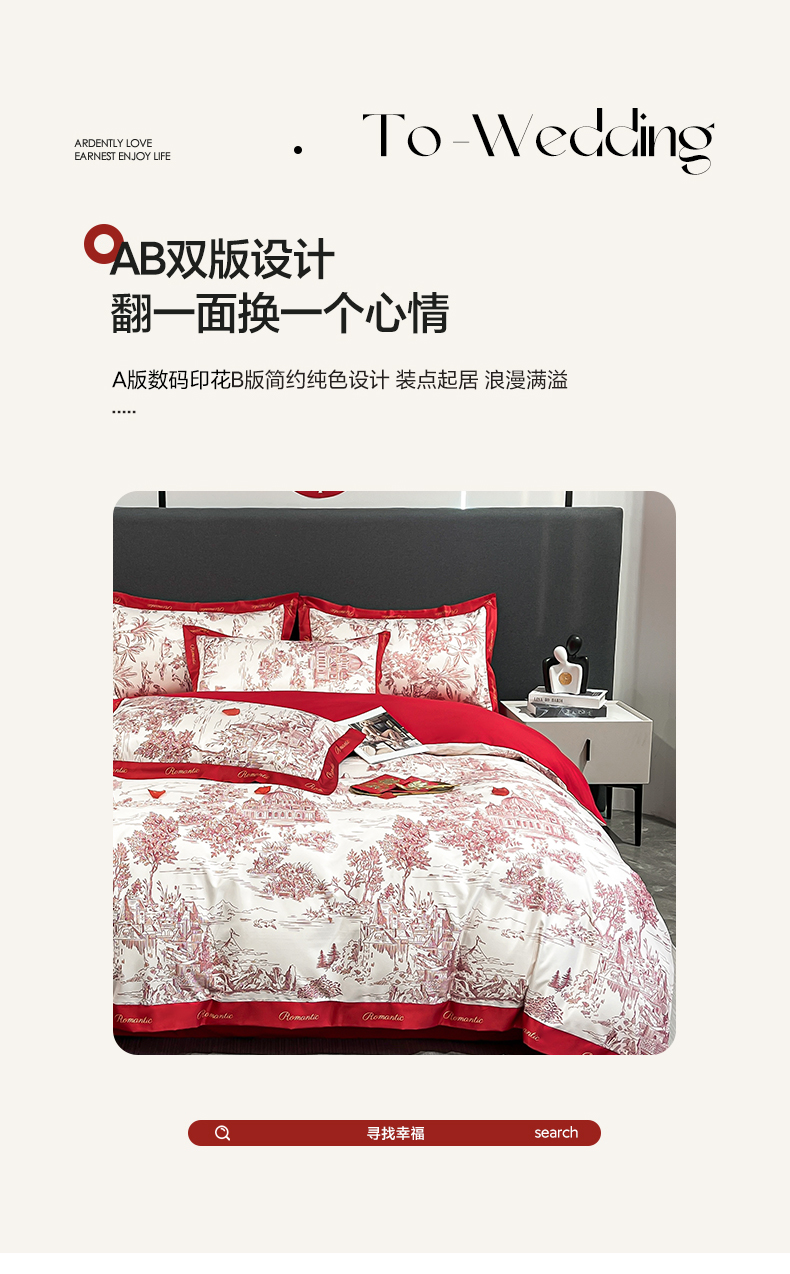(总)花愿(原花纪) 2025新款水洗棉刺绣婚庆四件套系列,丹枫迎喜,欢喜,良缘,龙凤欢喜,玫瑰之恋,美满,如意,天禧,唯一,喜爱,心心相印,幸福,永恒之恋,钟爱一生
