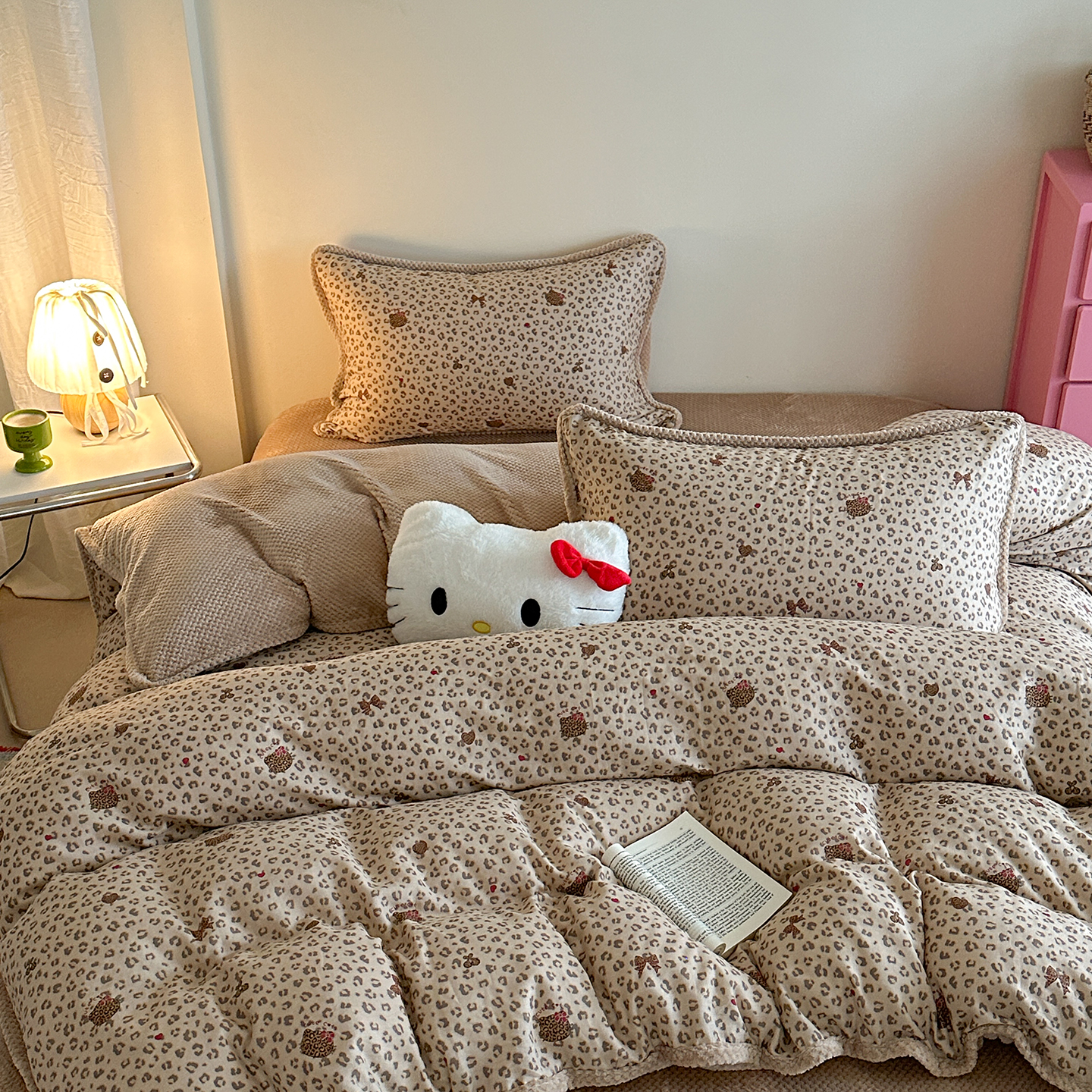 柚子YOUTH 2025新款全棉双层纱华夫格提花暖绒四件套 咖豹纹