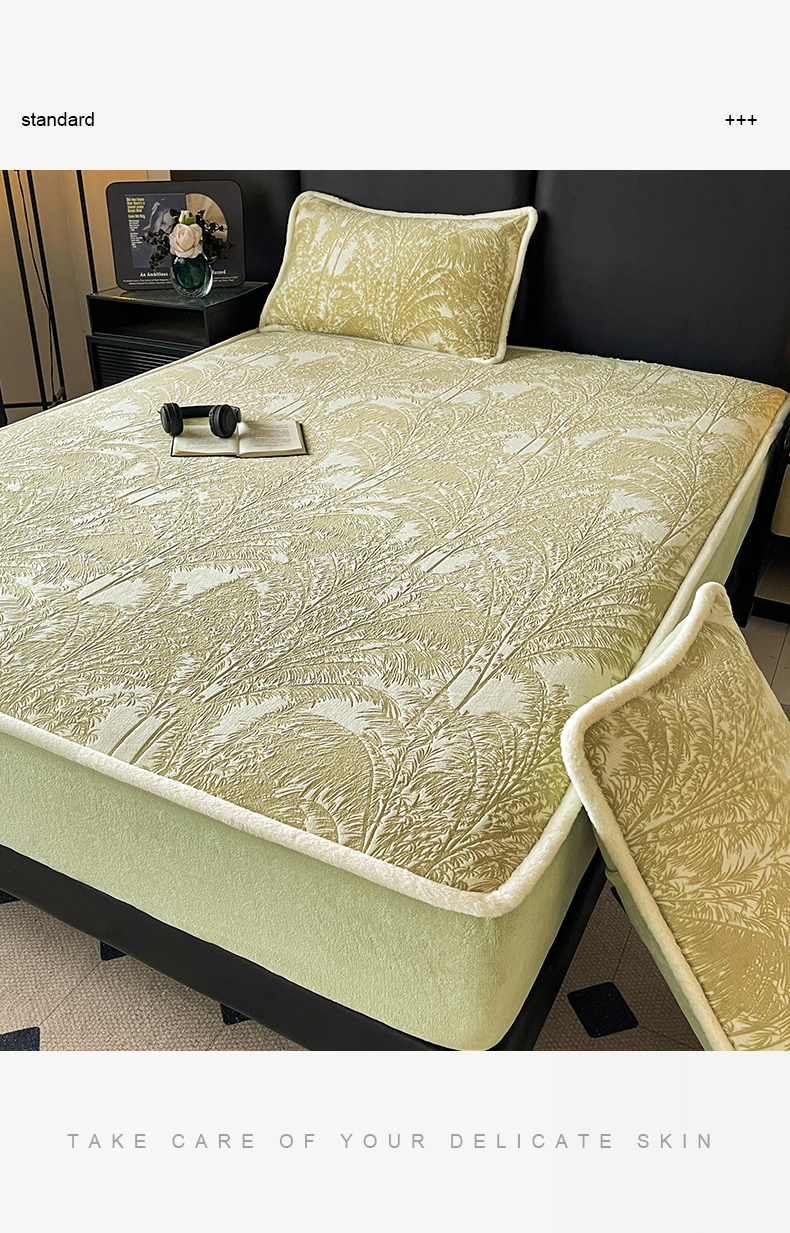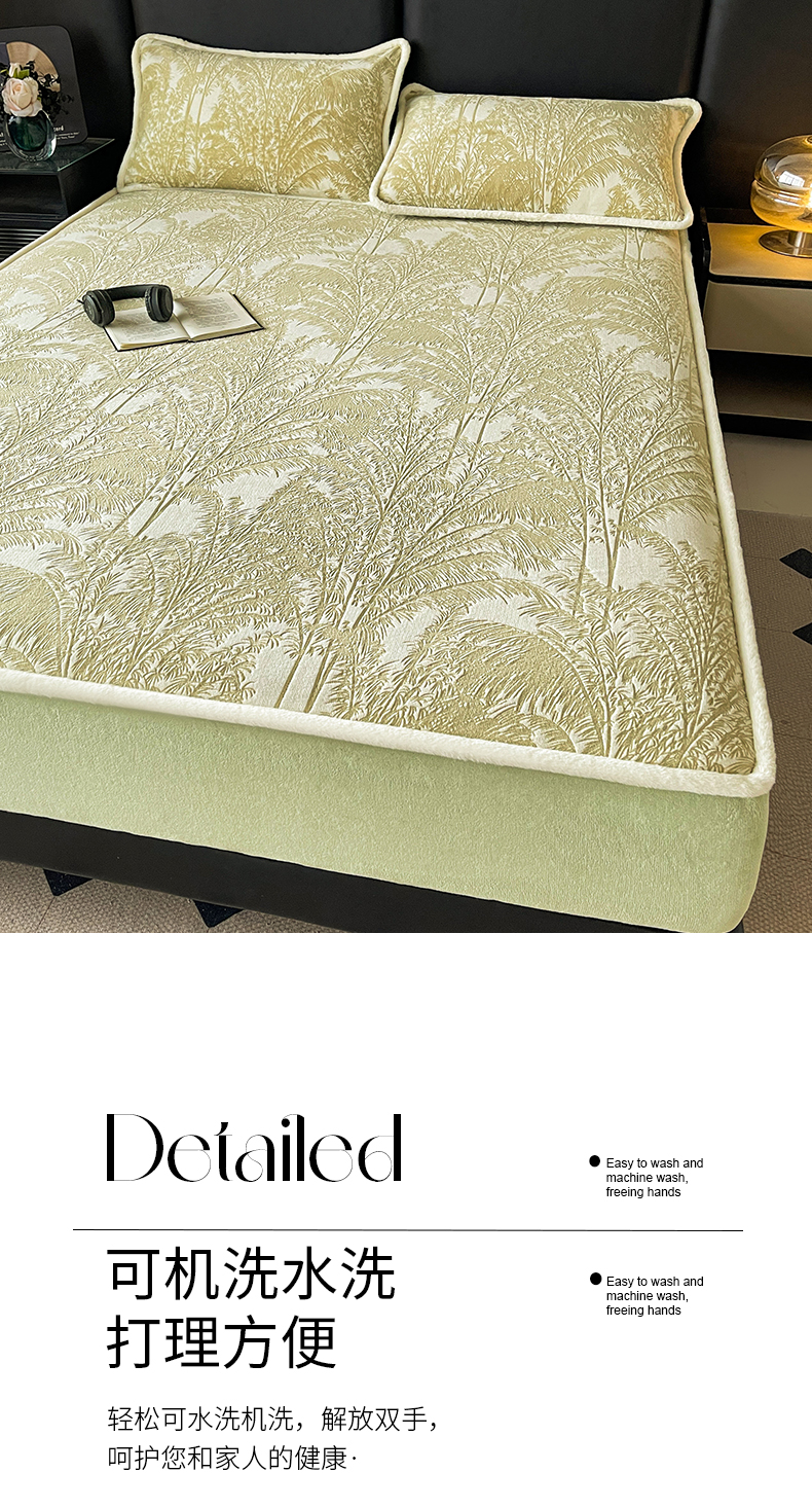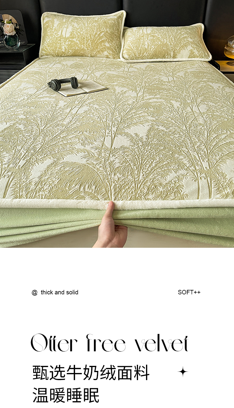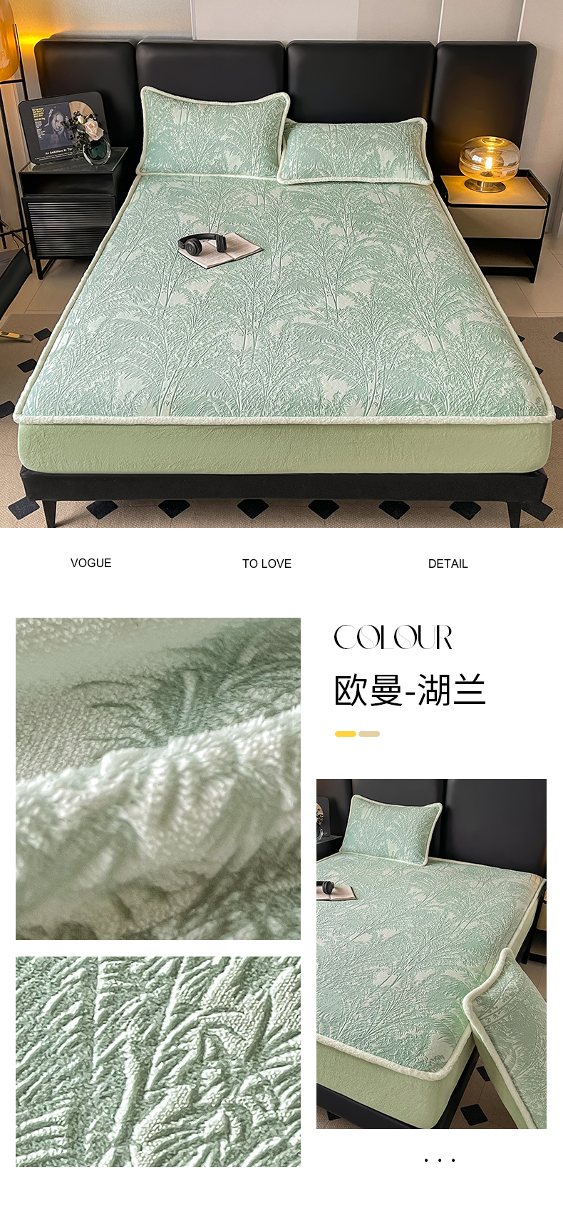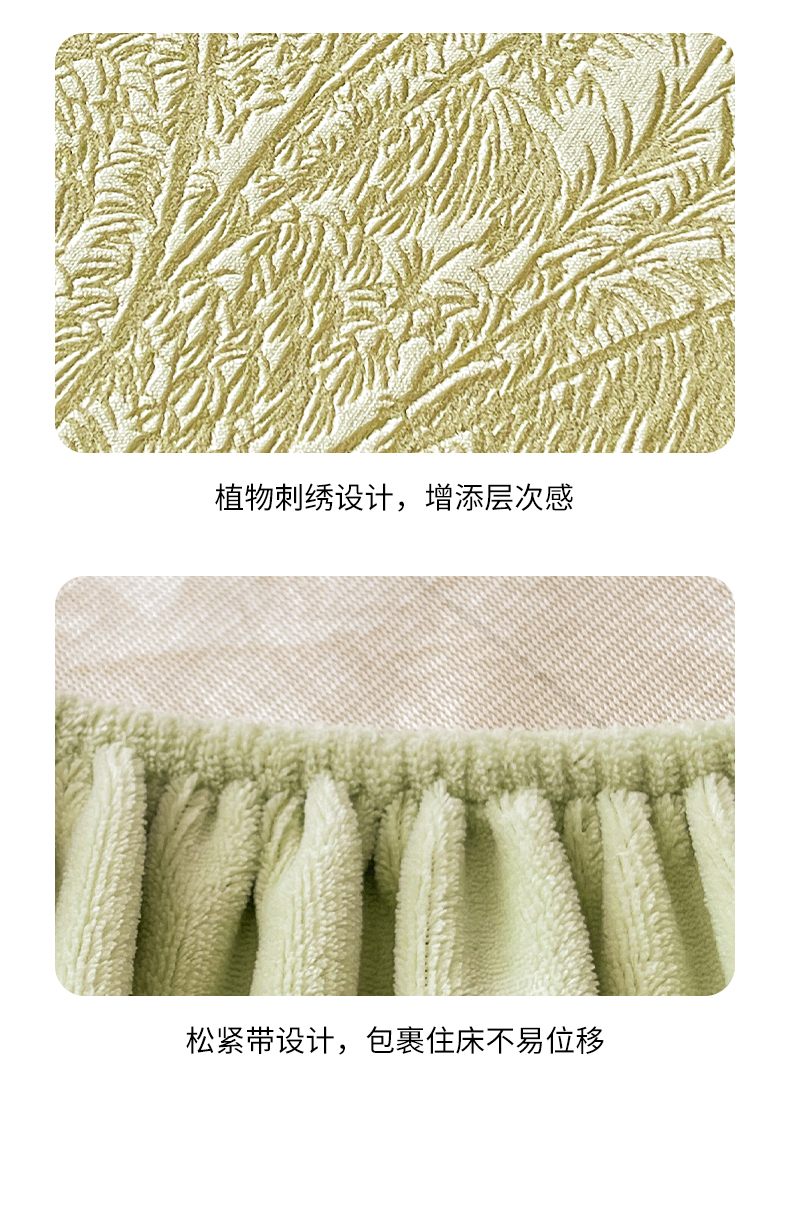 商品名称:极简 2025新款雕花牛奶绒床笠-欧曼系列 欧曼-美丽绿