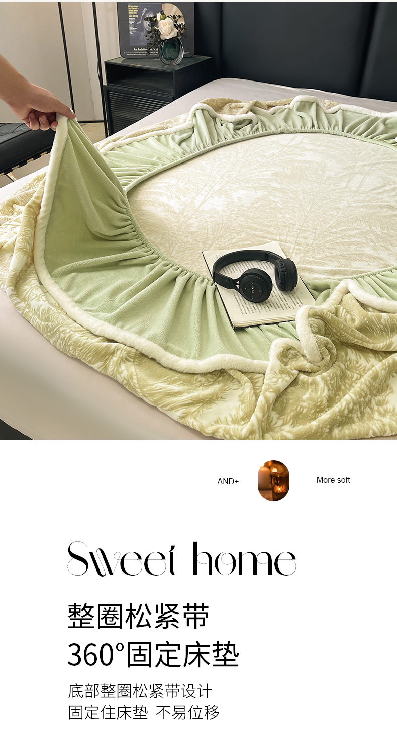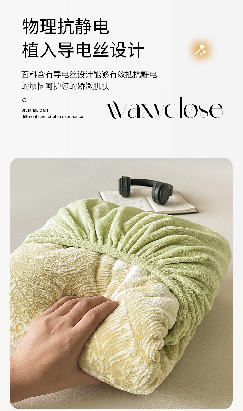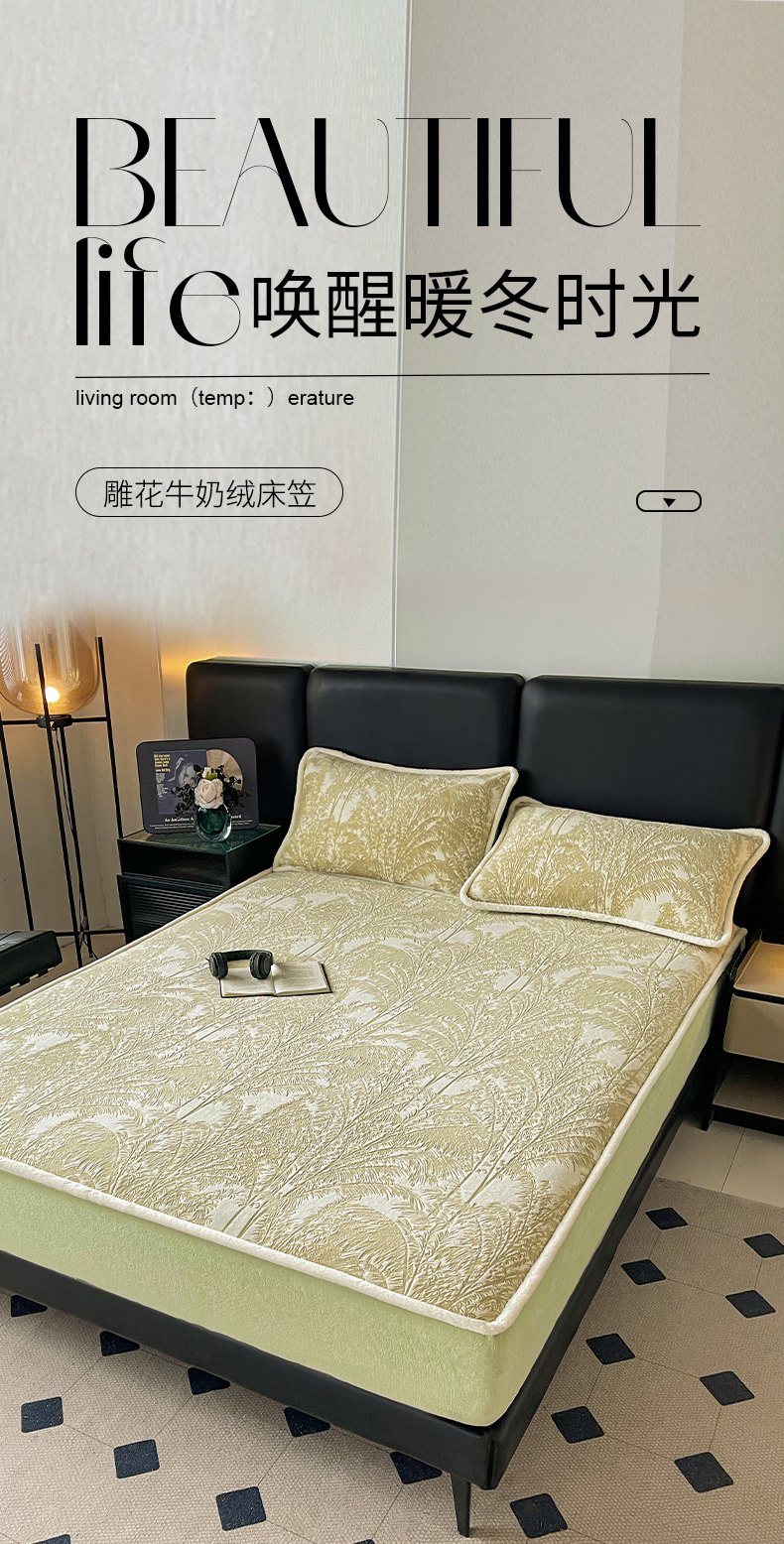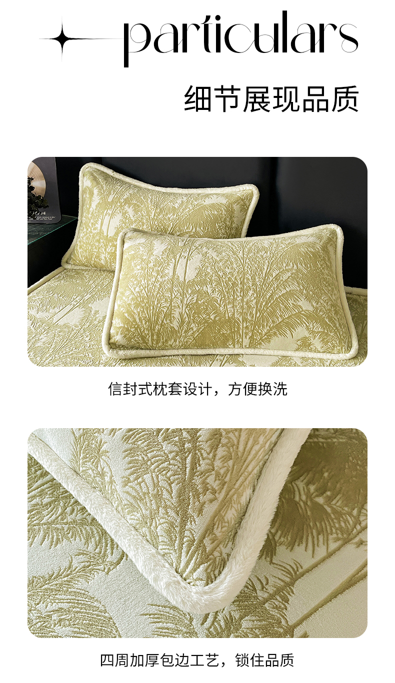 商品名称:极简 2025新款雕花牛奶绒床笠-欧曼系列 欧曼-美丽绿
