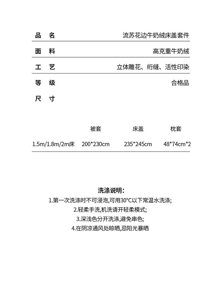 商品名称:(总)佰诗特 牛奶绒夹棉流苏单床盖 立体浮雕花绒单品被套三件套床盖四件套保暖套件