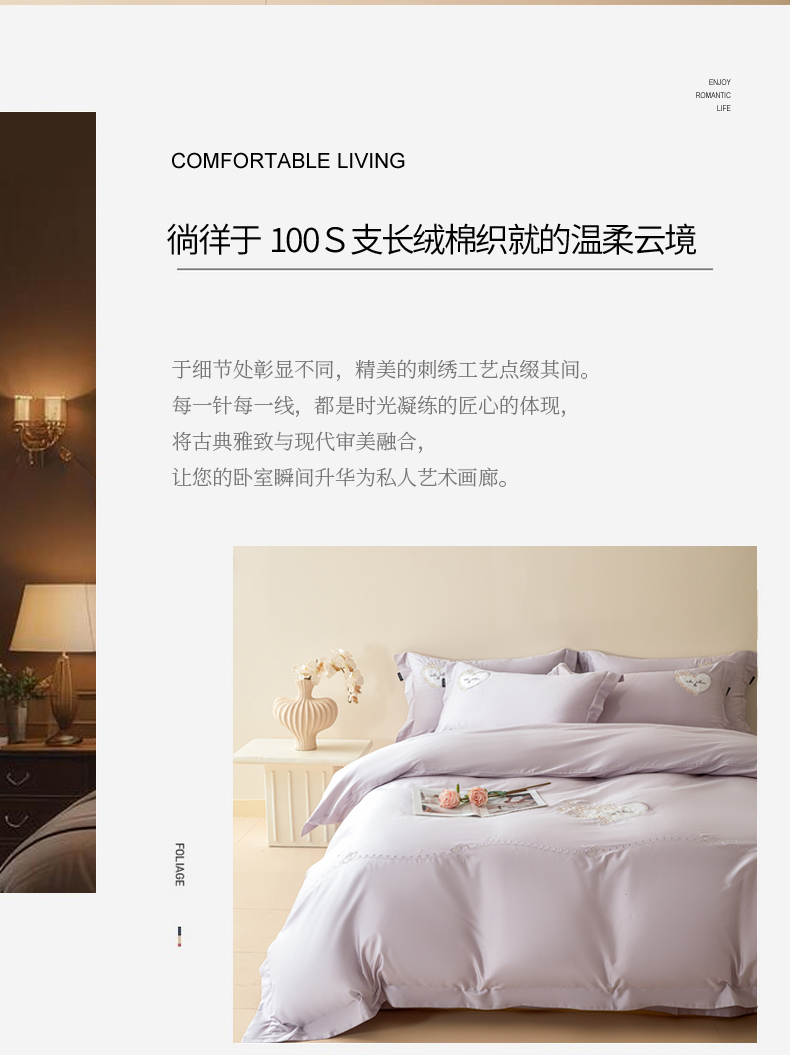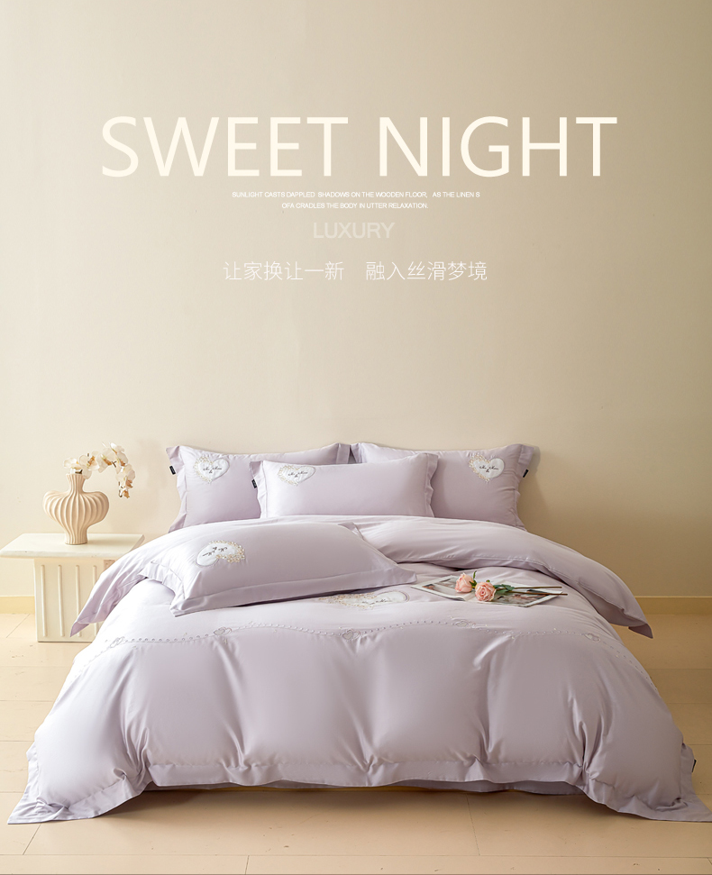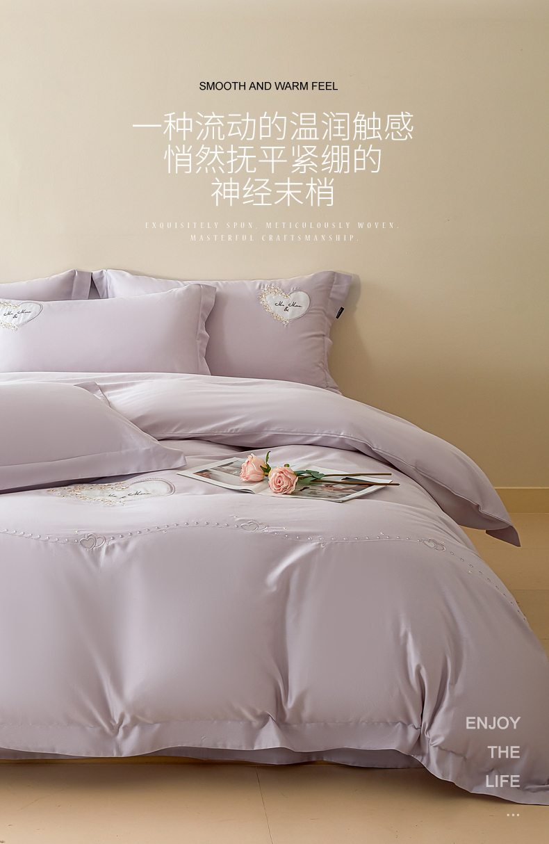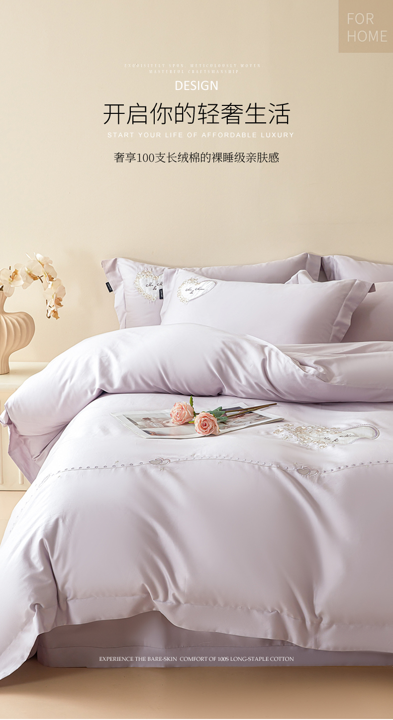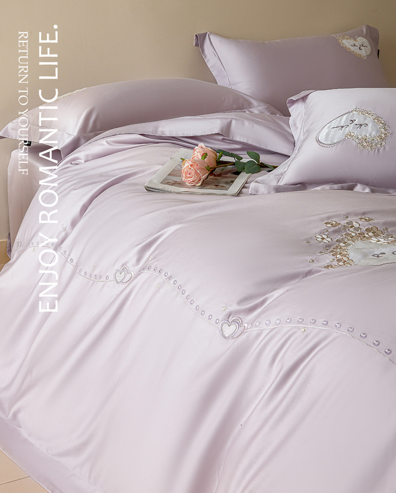 洺兰家居 2025年新款新疆长绒棉100支刺绣款绣花四件套 小确幸 小确幸-紫