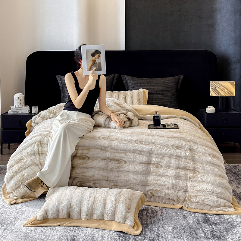 (总)若未家居 LOVEWE HOUSE 2025新款轻奢意式风仿真貂绒床盖四件套A版400克B版260克-北国雪乡,北国雪乡 暗夜灰,北国雪乡 咖,北国雪乡 驼