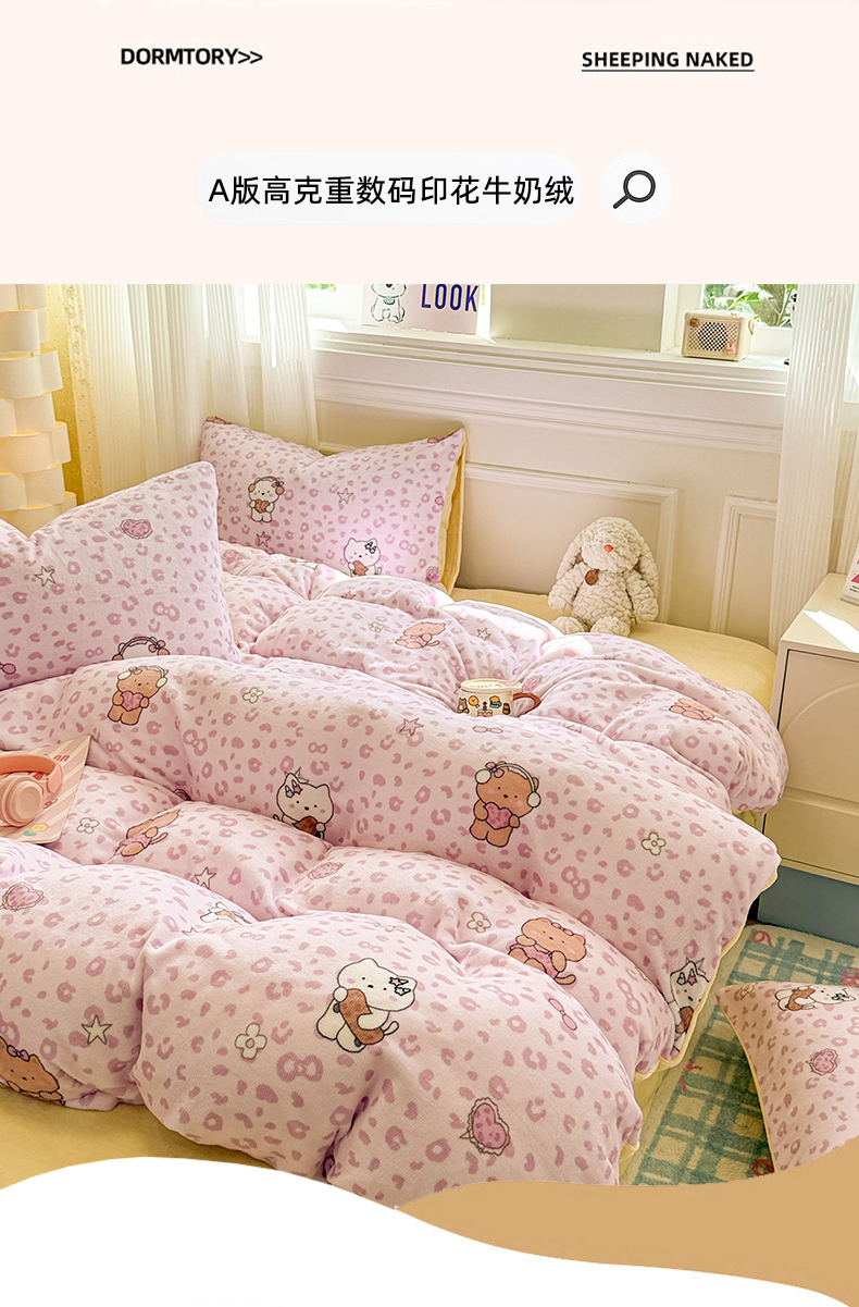 商品名称:呗旺鹿 2025新款A类牛奶绒数码印花卡通小清新四件套(场景二) 圣诞丫丫
