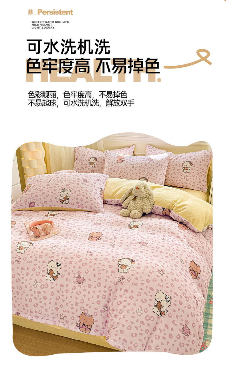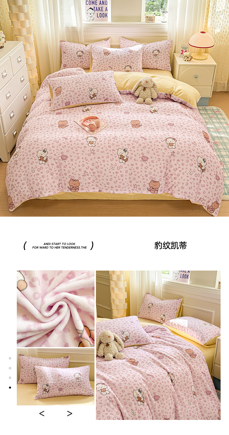 (总)呗旺鹿 2025新款A版全棉B版牛奶绒四件套,冰岛小马,萌星,糖果小马,小狗笔记,费尔岛小熊