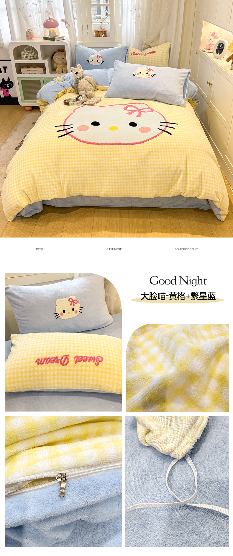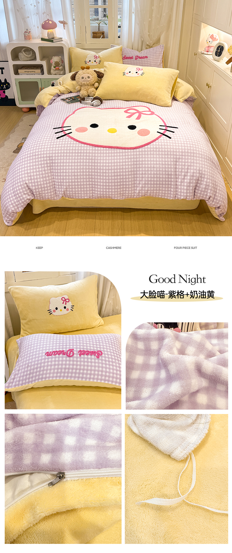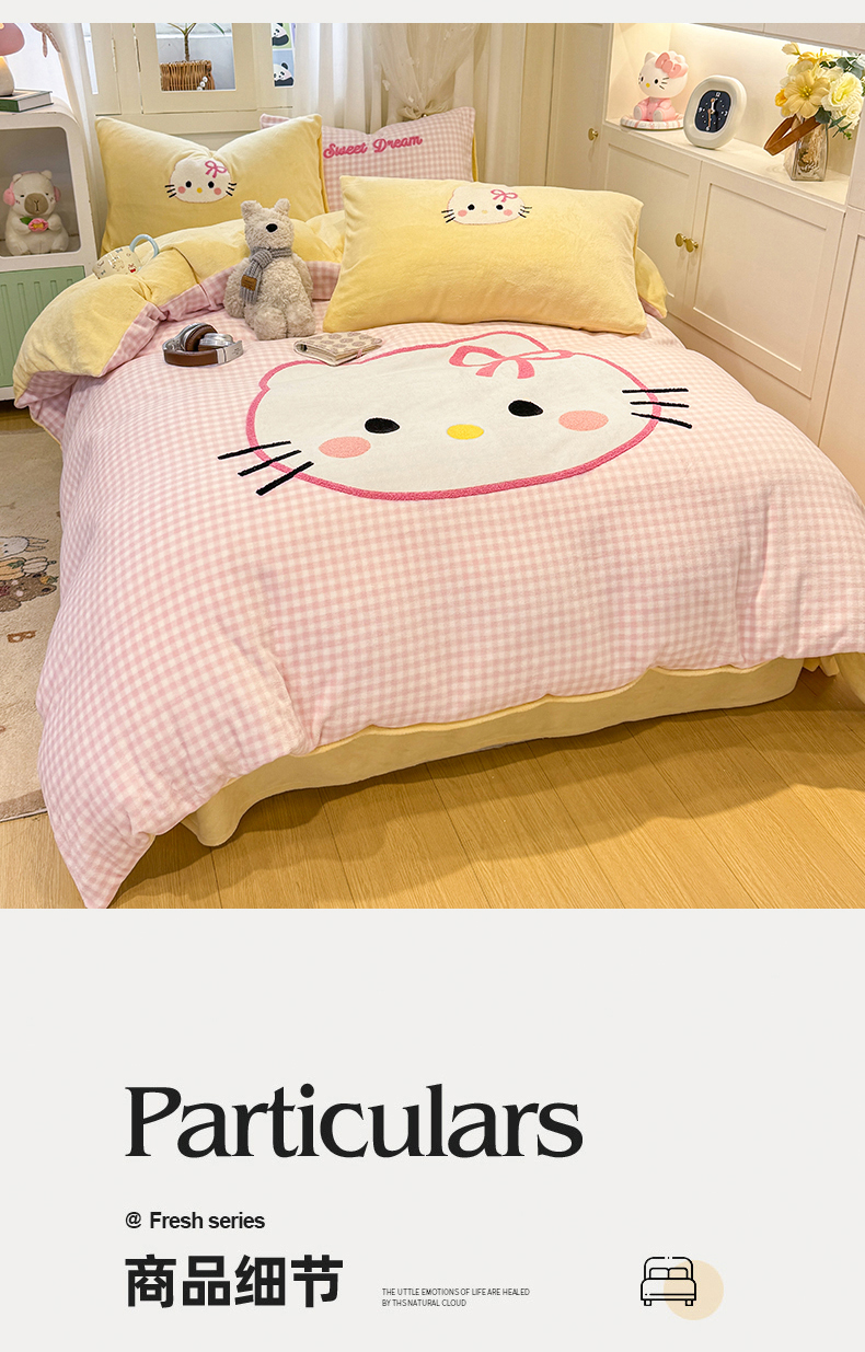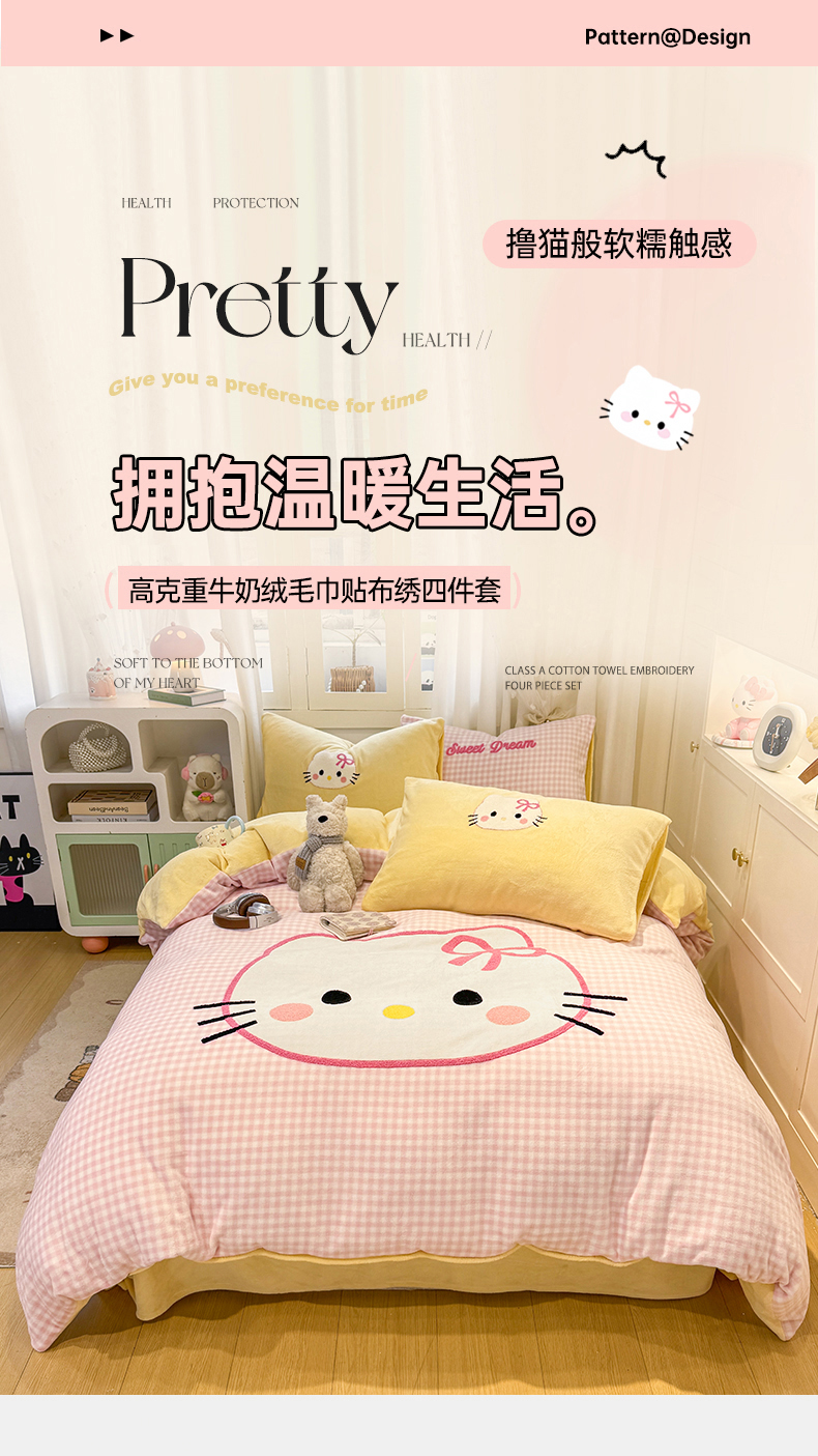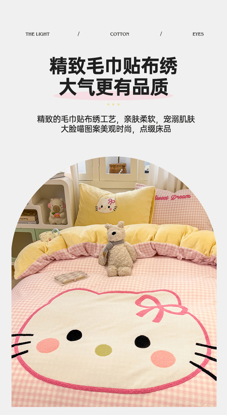 当前位置: 91家纺网 > 商品网购 > 床品套件 > 四件套 > 牛奶绒四件套 > 灰鲸 2025新款牛奶绒毛巾贴布绣四件套-大脸喵系列 大脸喵-粉格+奶油黄