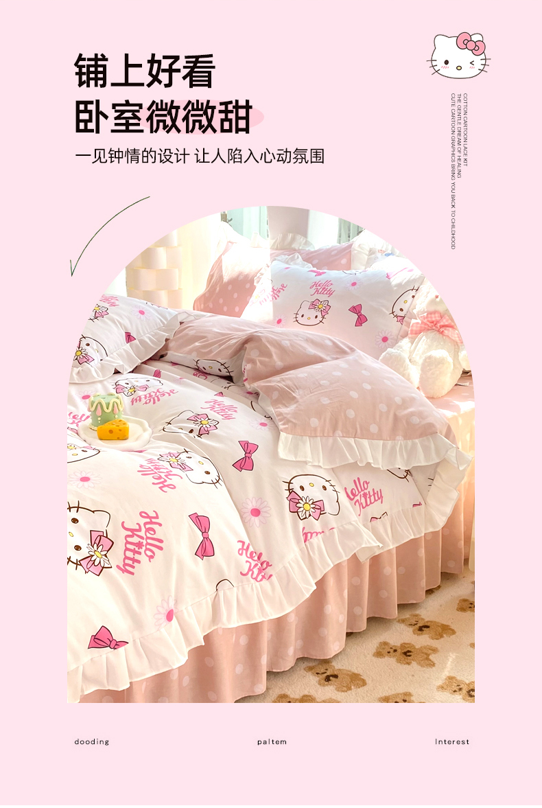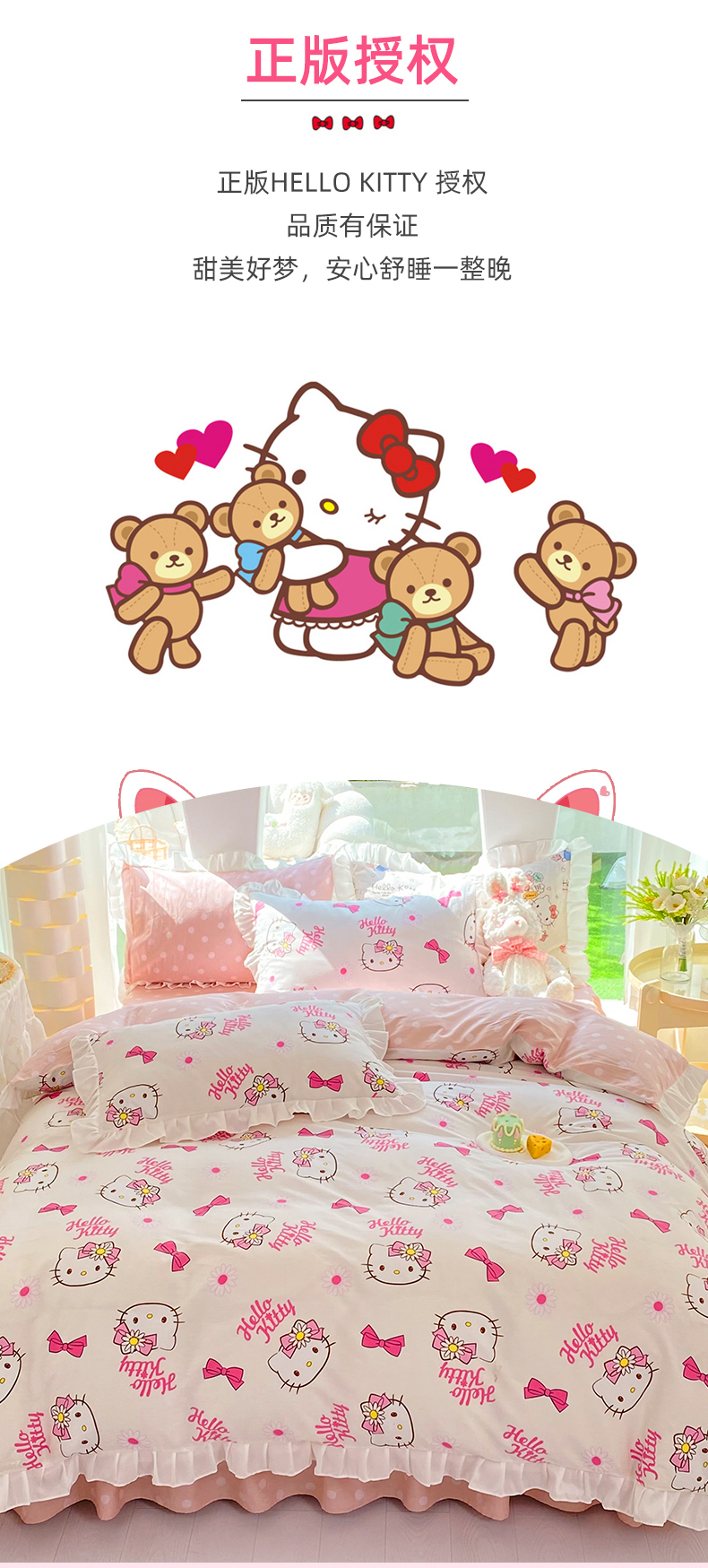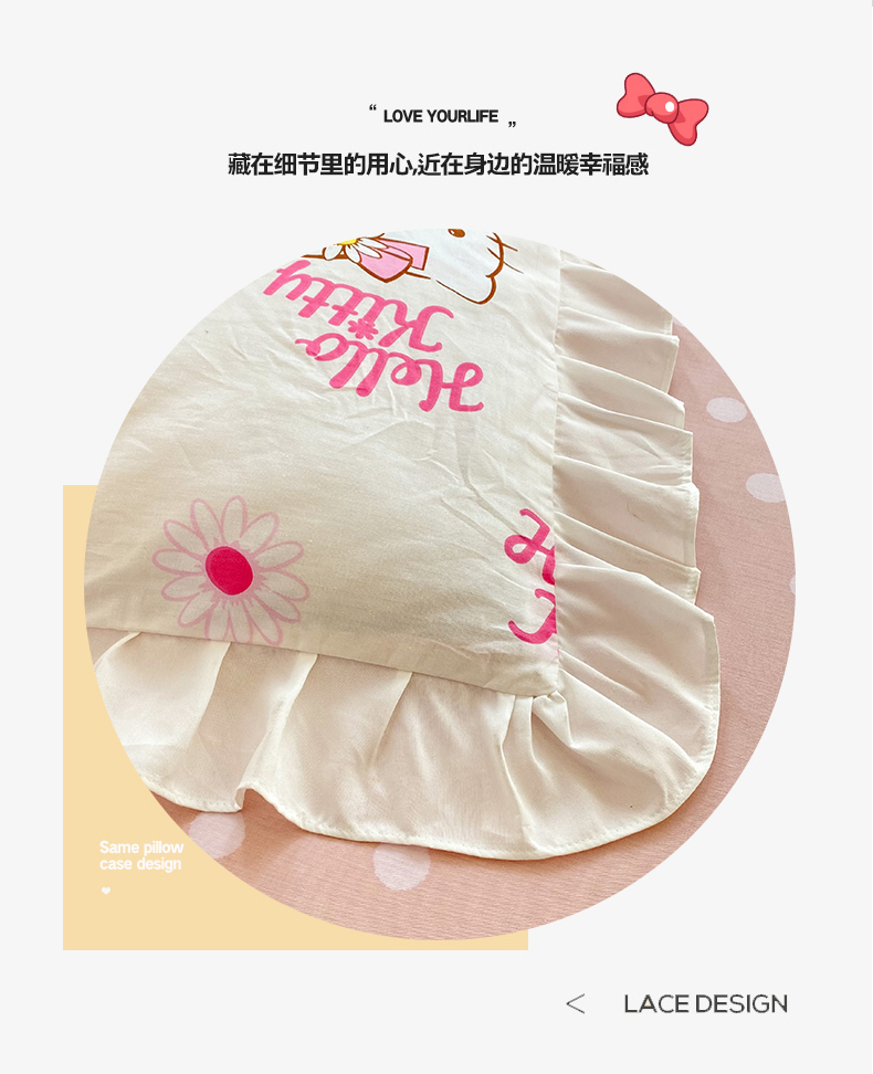 当前位置: 91家纺网 > 商品网购 > 床品套件 > 四件套 > 全棉普通四件套 > 玉元坊 2025新款全棉纯棉凯蒂猫白花边款式四件套 雏菊kt 花边款