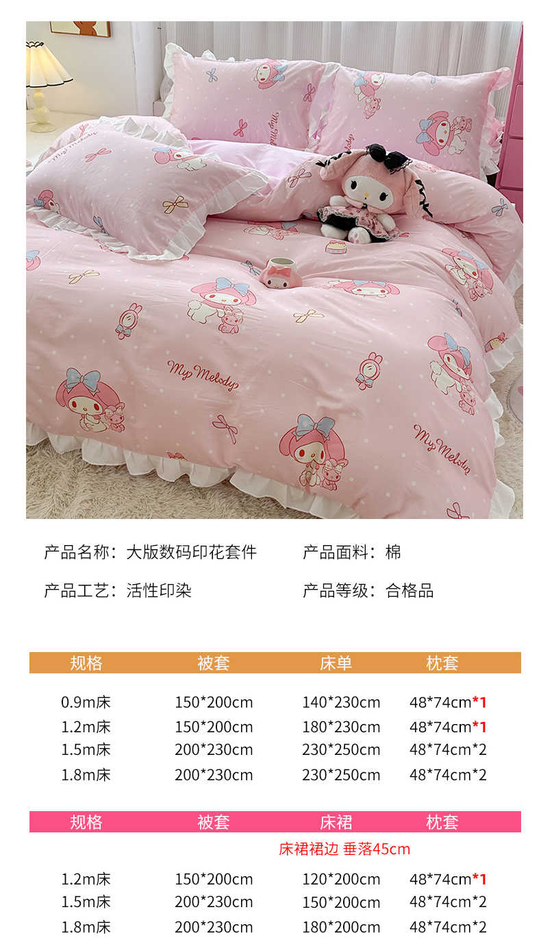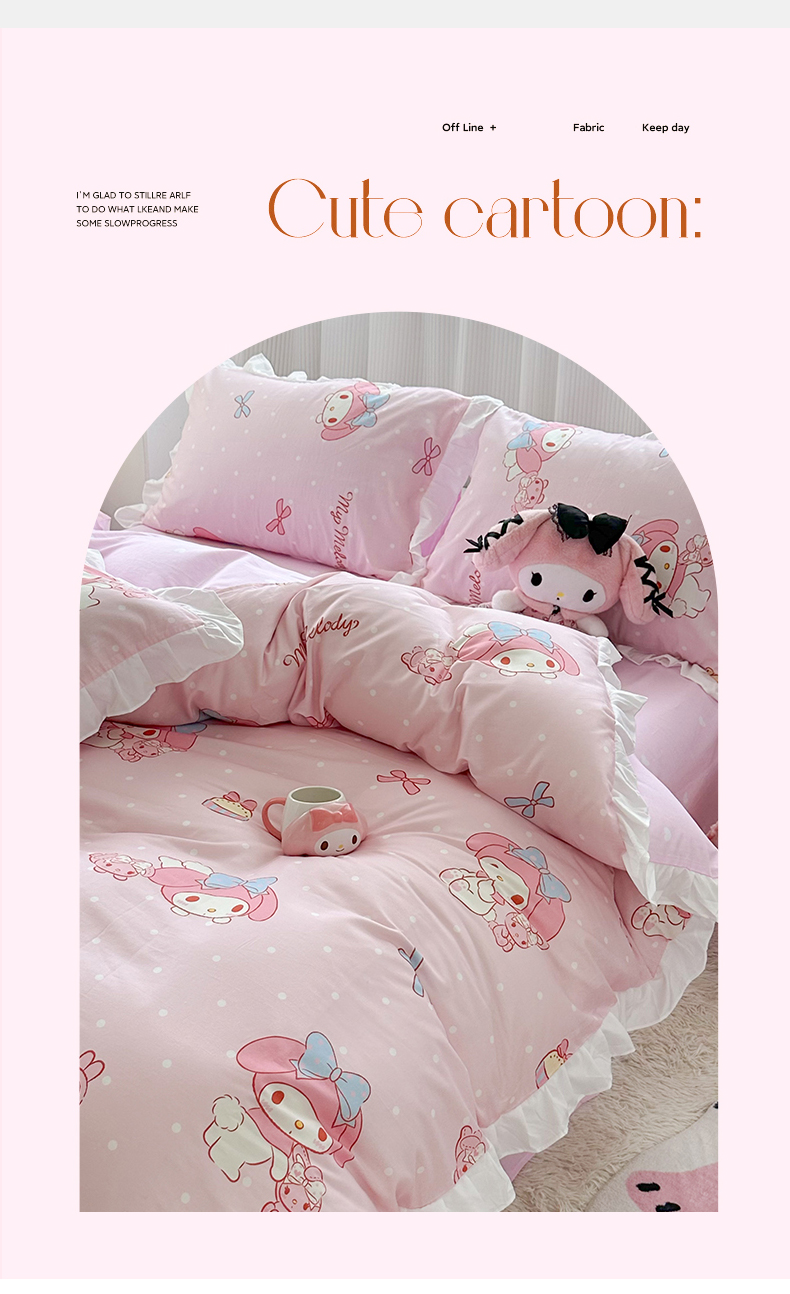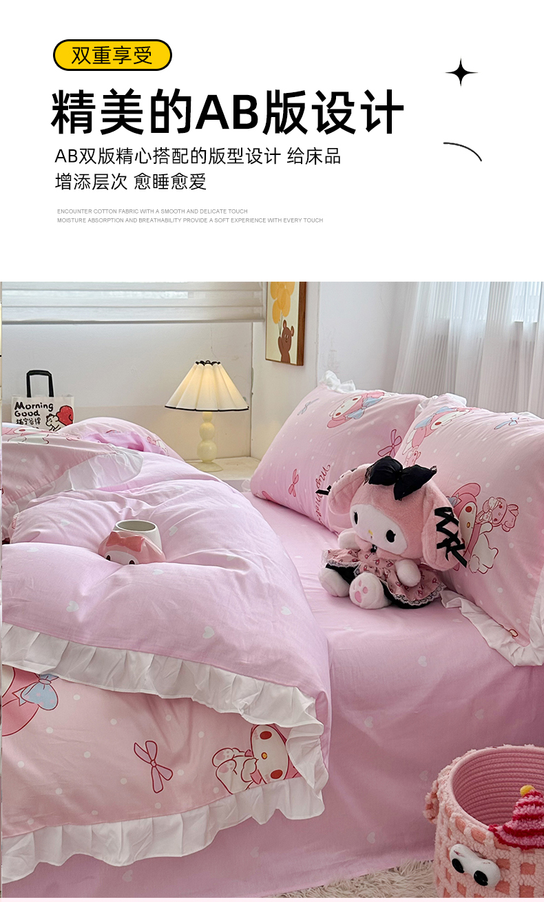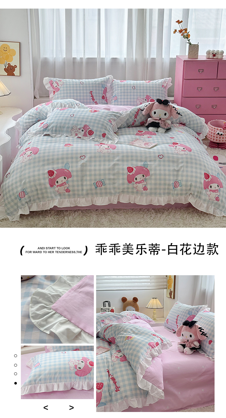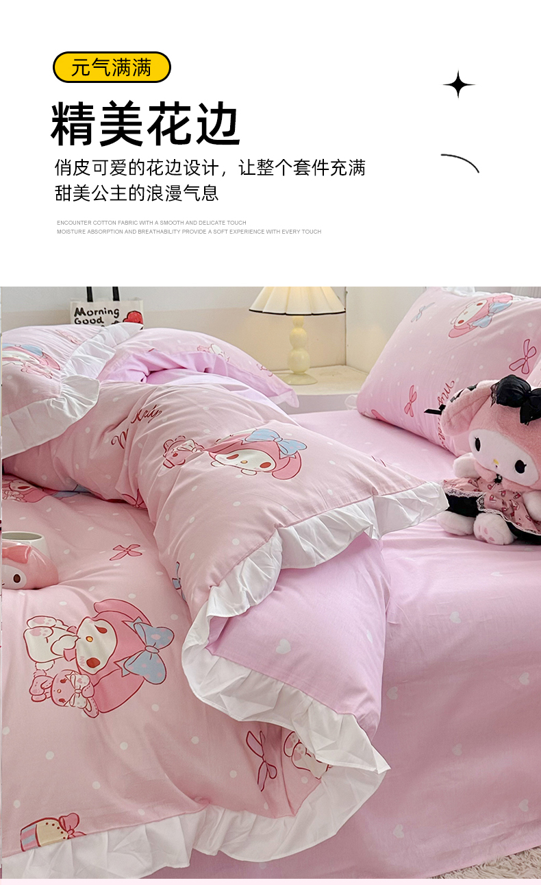 当前位置: 91家纺网 > 商品网购 > 床品套件 > 四件套 > 全棉普通四件套 > 玉元坊 2025新款全棉纯棉美乐蒂白花边款式四件套 魔法美乐蒂-白花边款