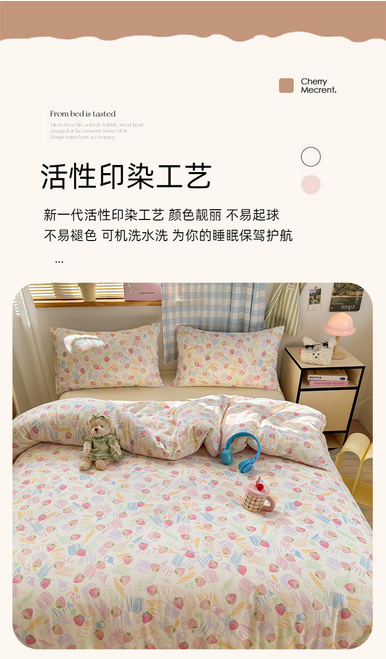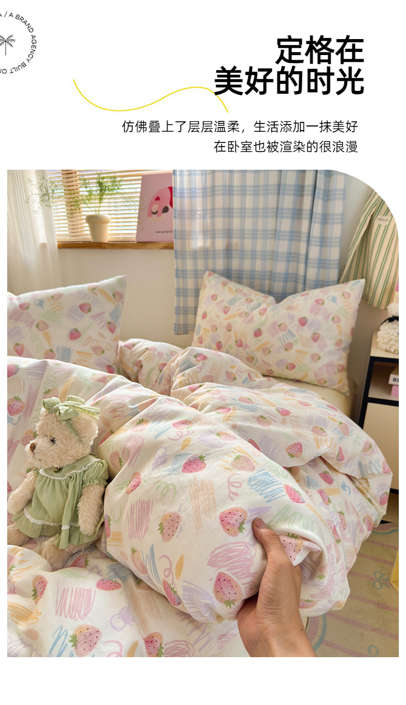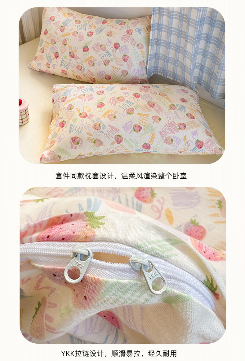 当前位置: 91家纺网 > 商品网购 > 床品套件 > 四件套 > 全棉普通四件套 > 曼之夏 2025新款全棉纯棉双层印花四件套 缤纷草莓