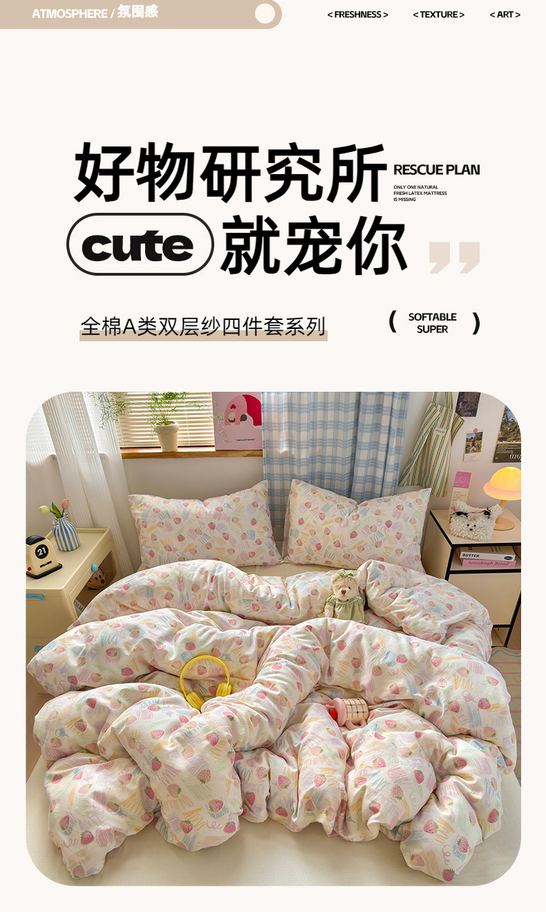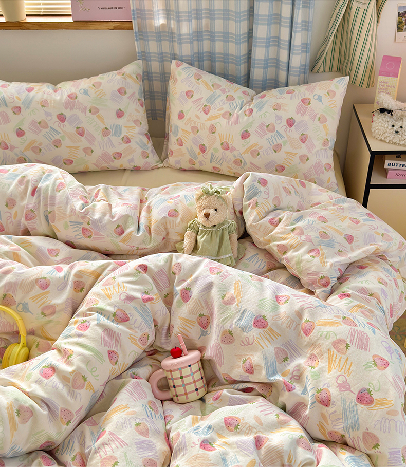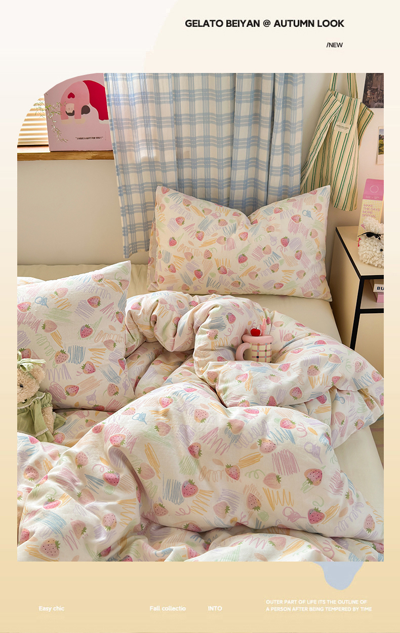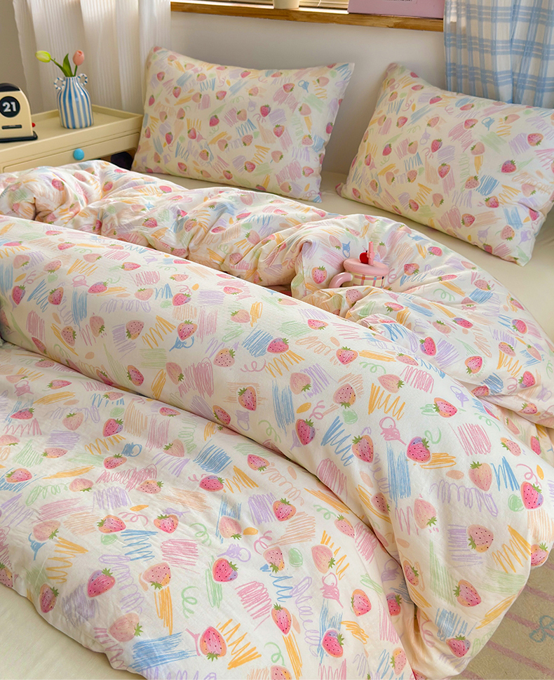 当前位置: 91家纺网 > 商品网购 > 床品套件 > 四件套 > 全棉普通四件套 > 曼之夏 2025新款全棉纯棉双层印花四件套 缤纷草莓