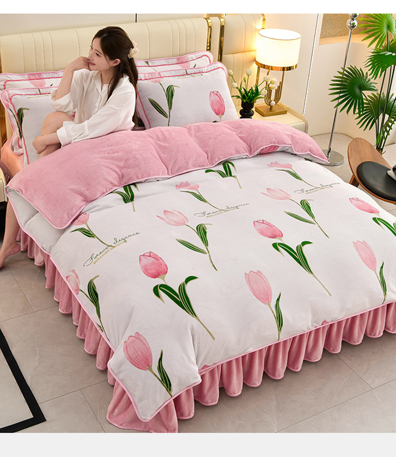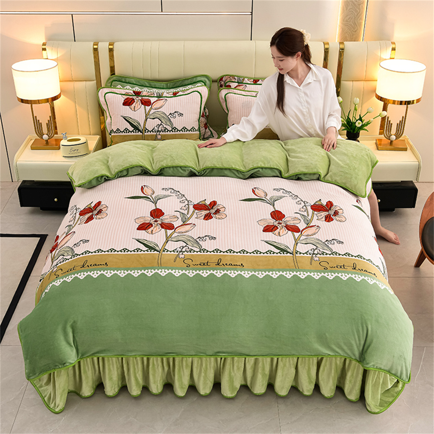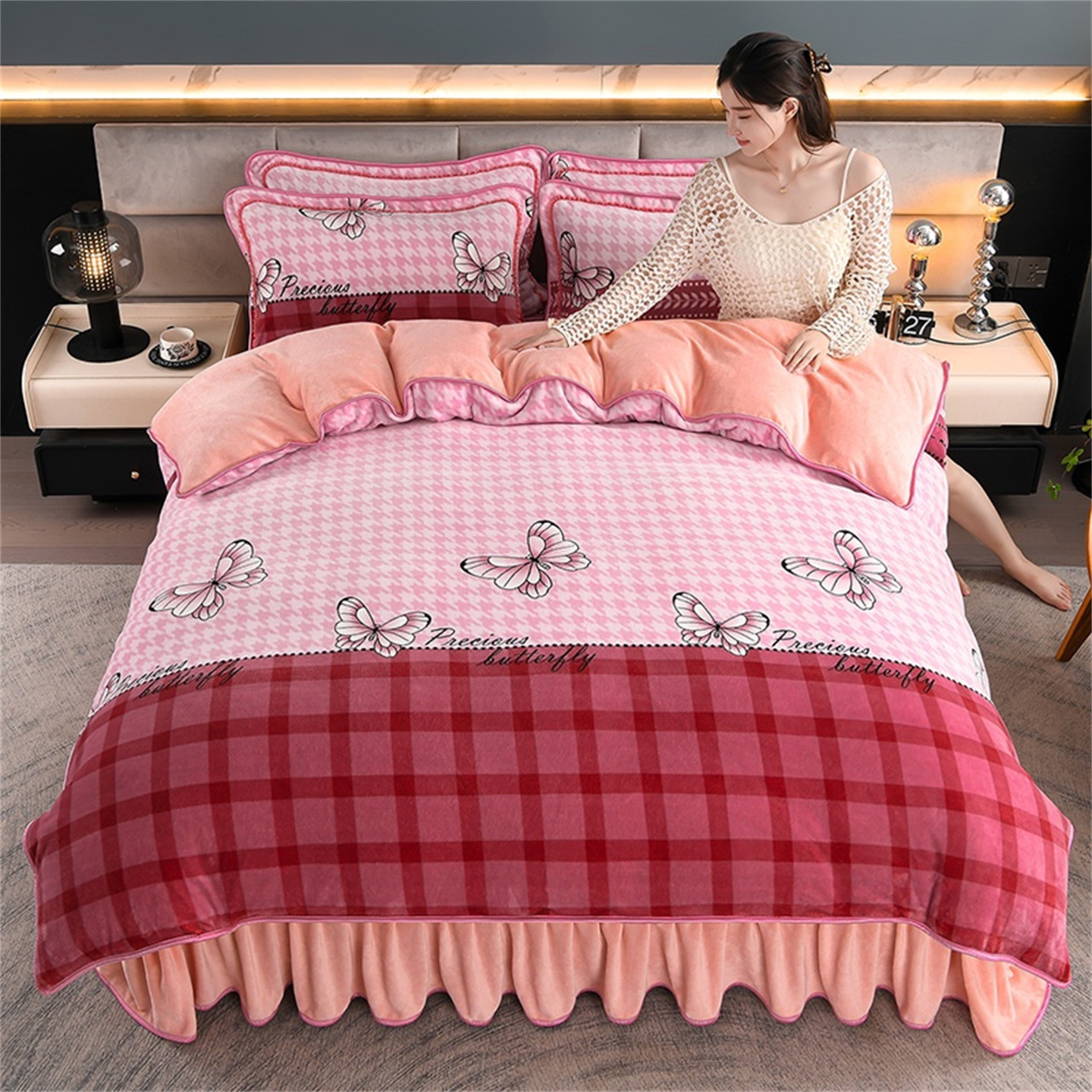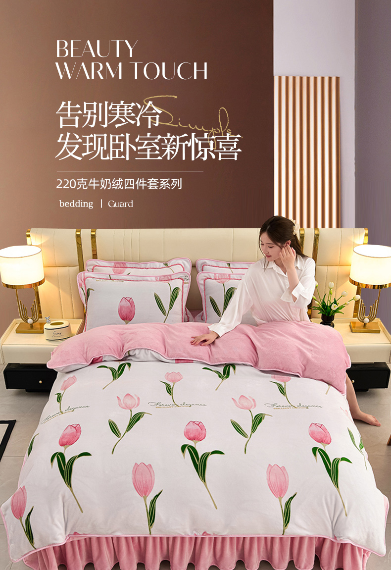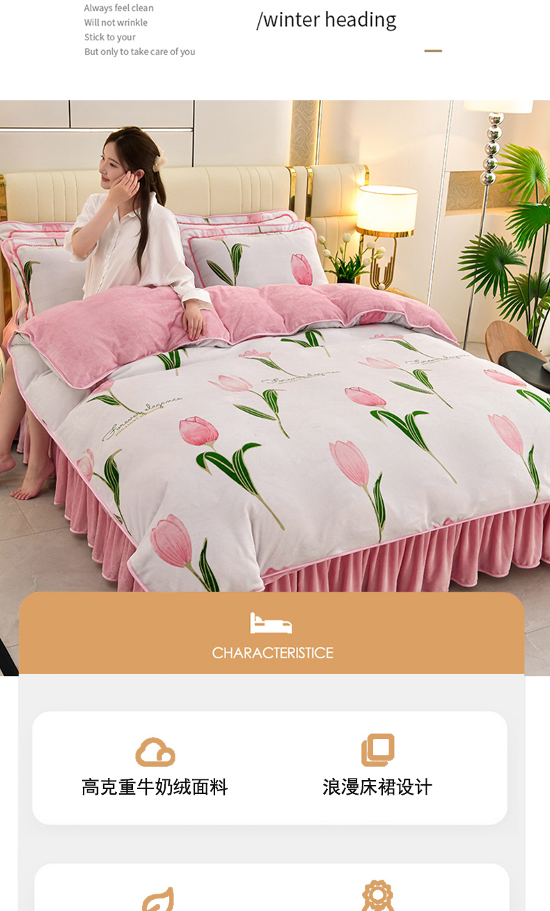 (总) 玖琳家纺 2025新款220g保暖舒适牛奶绒床裙四件套
