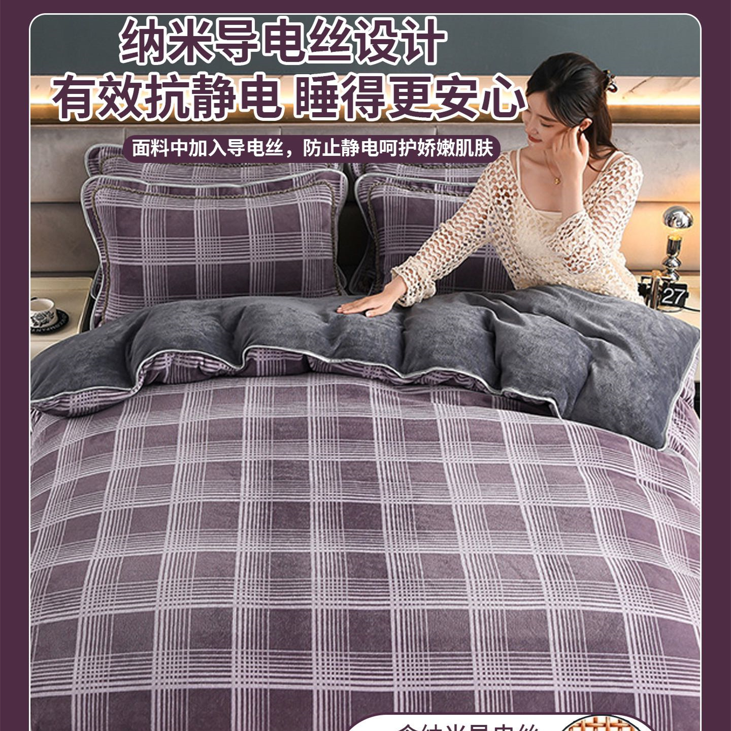 (总)玖琳家纺 2025新款双面240克全消牛奶绒铂金牛奶绒四件套-漫影系列,粉色,清草绿,香芋紫,组合图