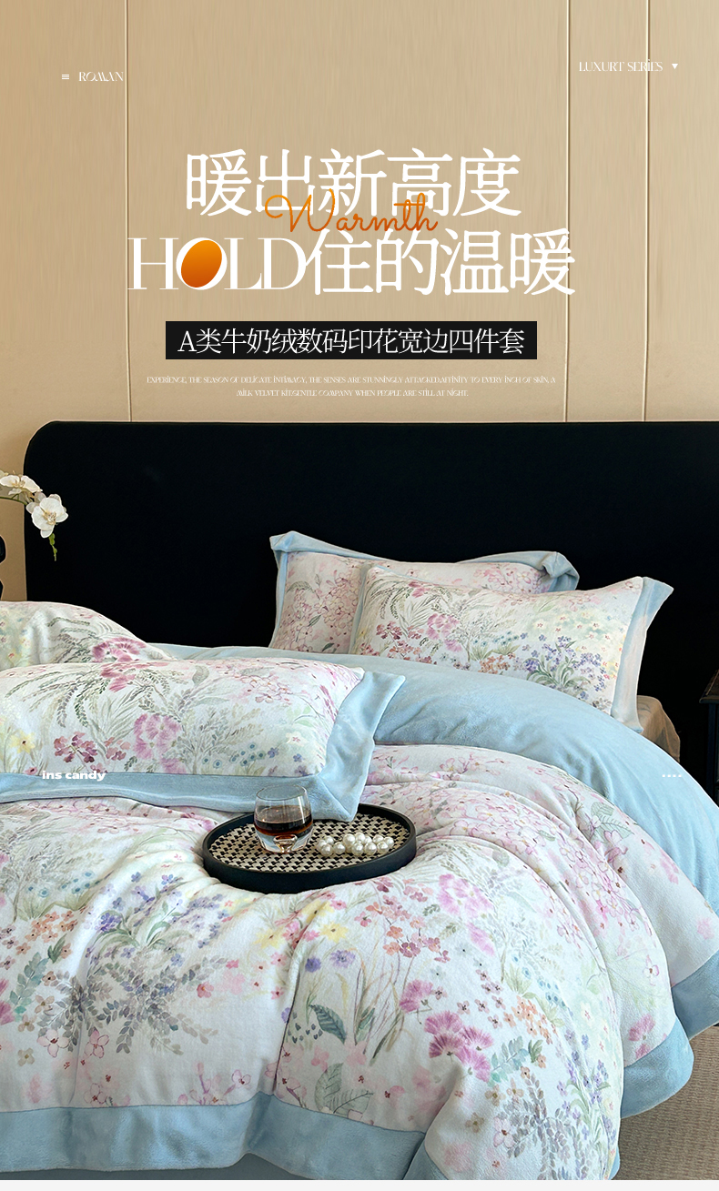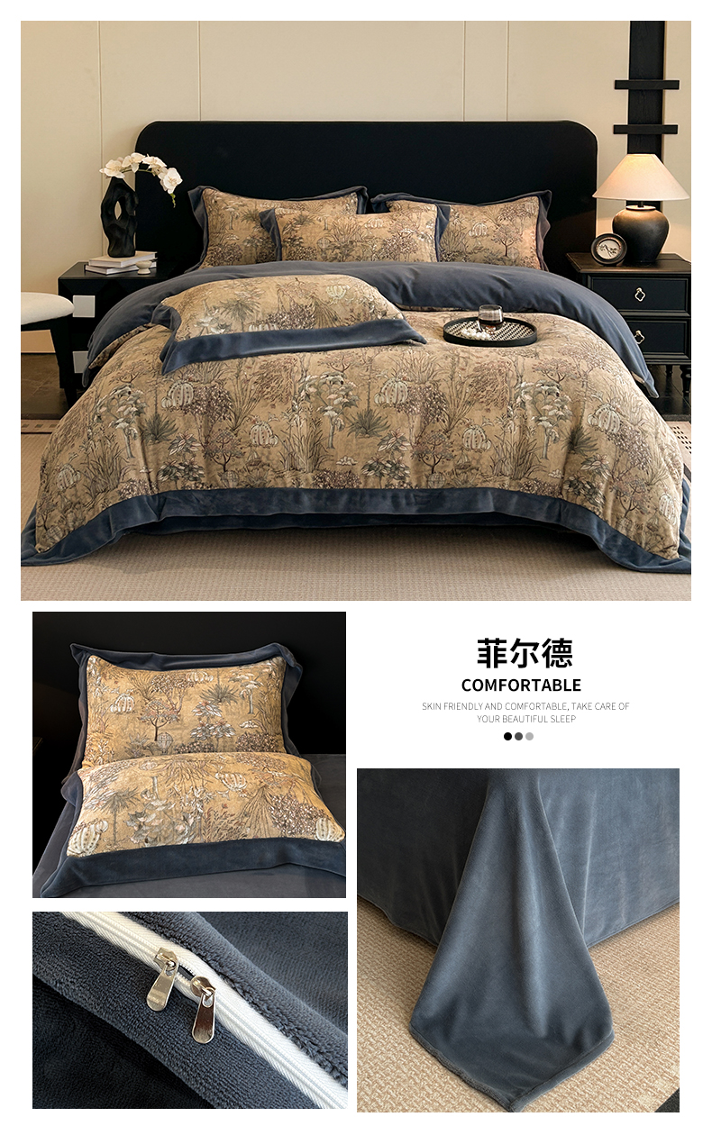 当前位置: 91家纺网 > 商品网购 > 床品套件 > 四件套 > 牛奶绒四件套 > 眷恋家纺 2025新款加厚牛奶绒法式数码印花宽边四件套 花海