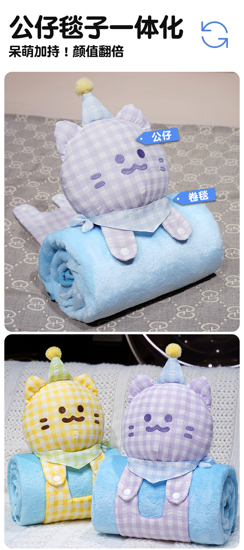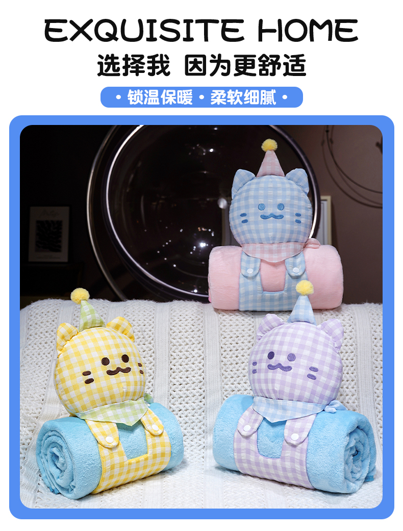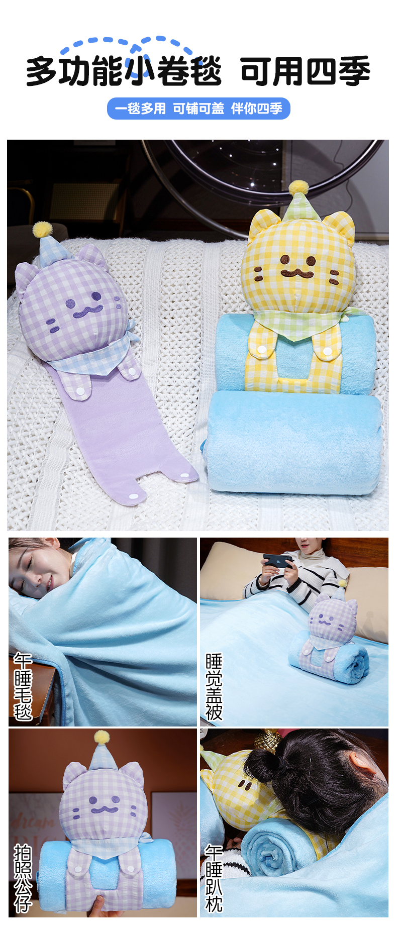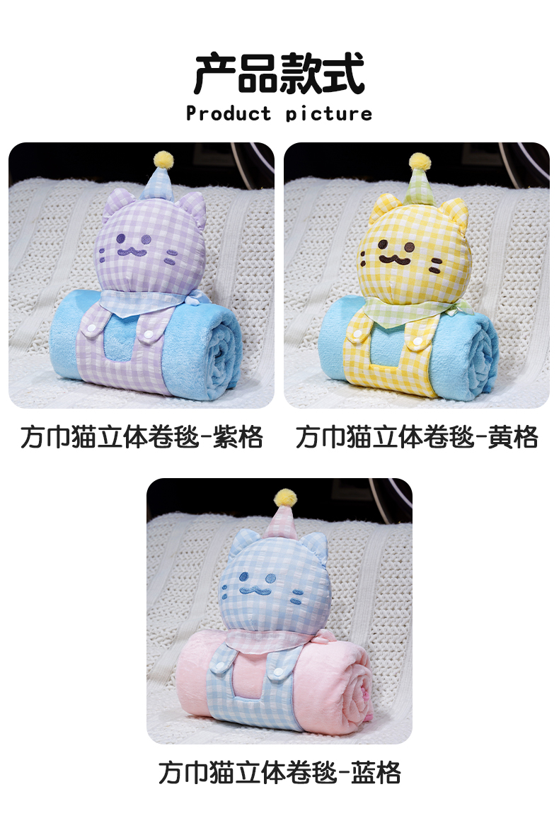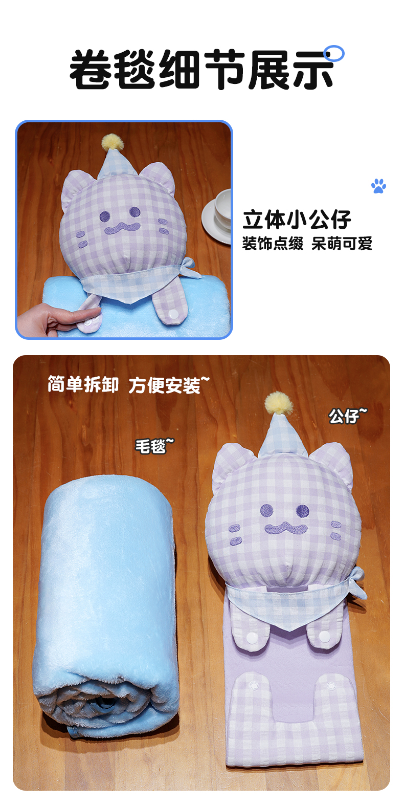 商品名称:仟亿莱 2025新款带帽方巾喵立体卷毯 卷卷紫格喵