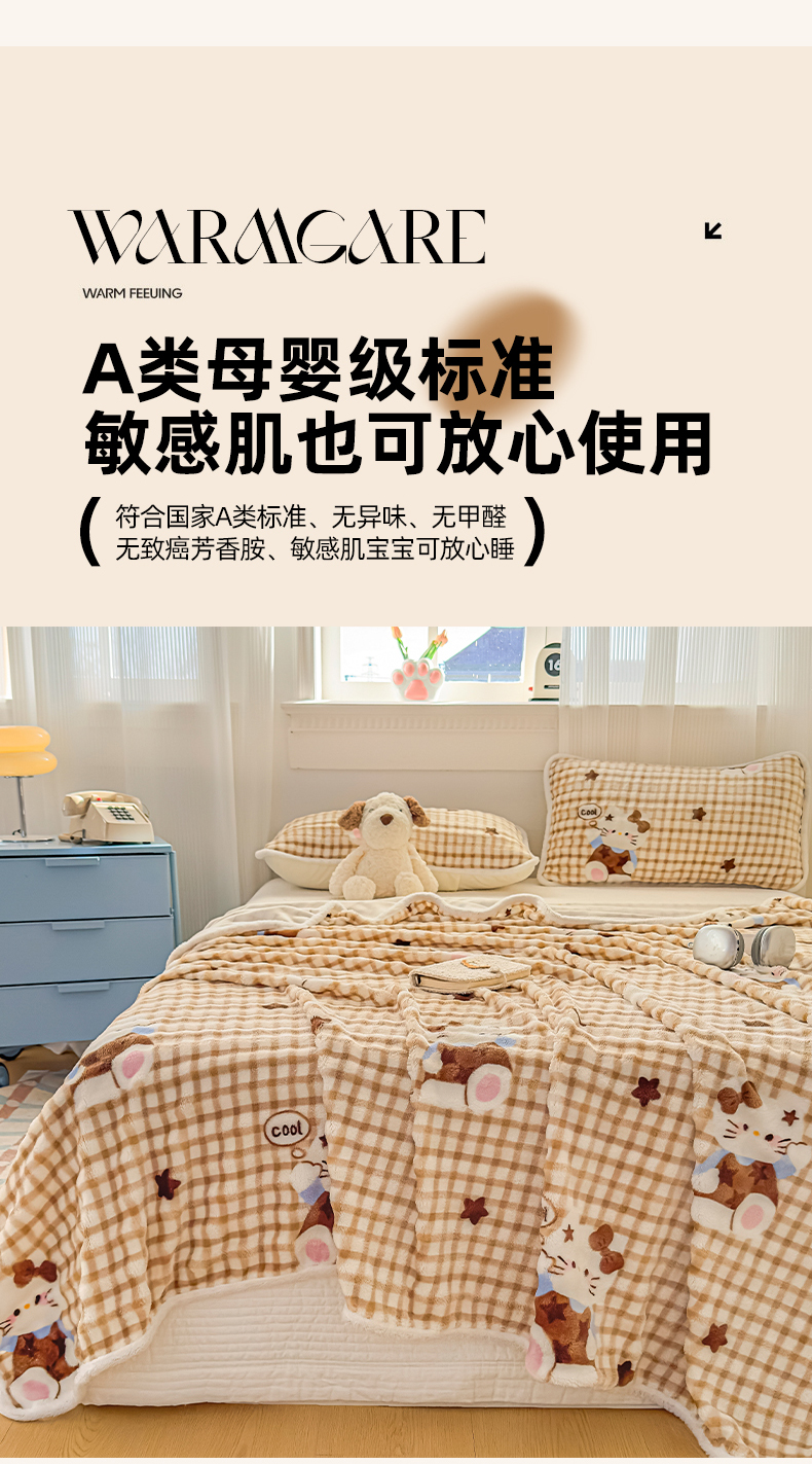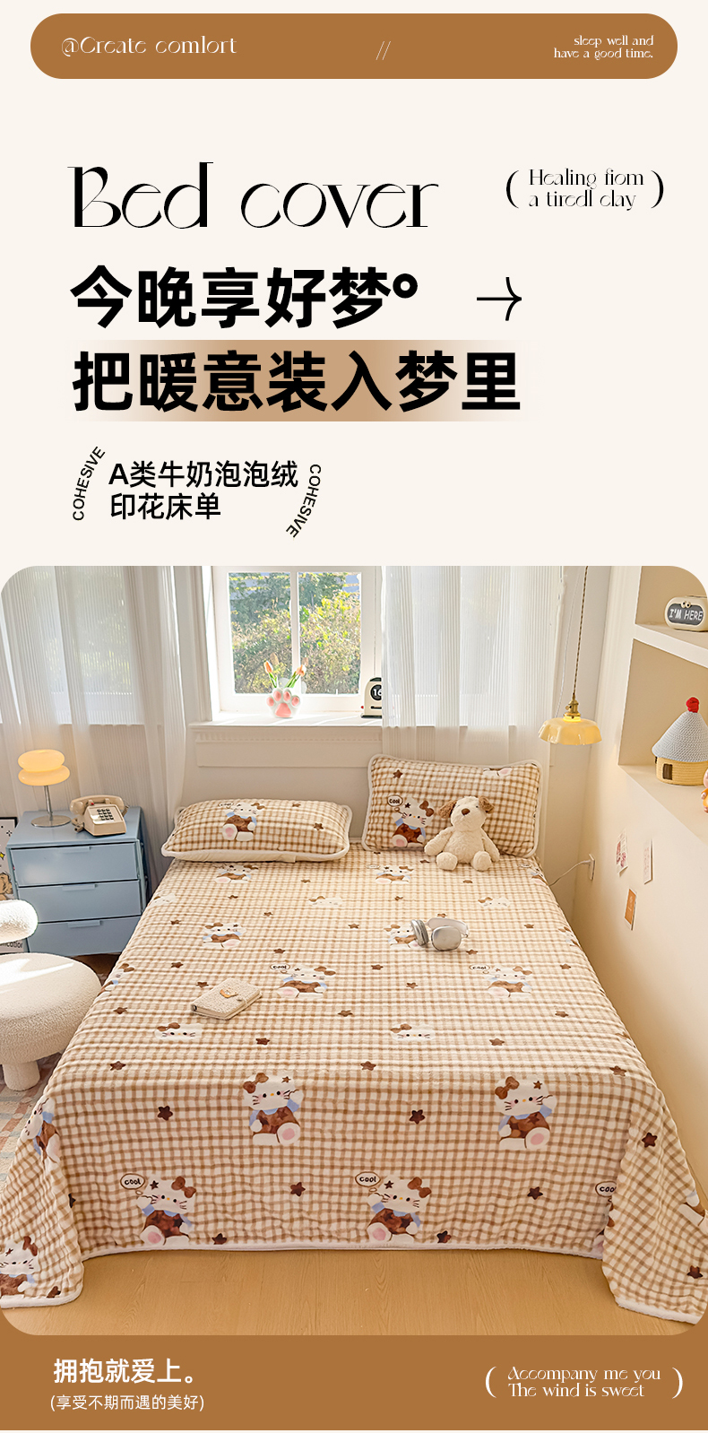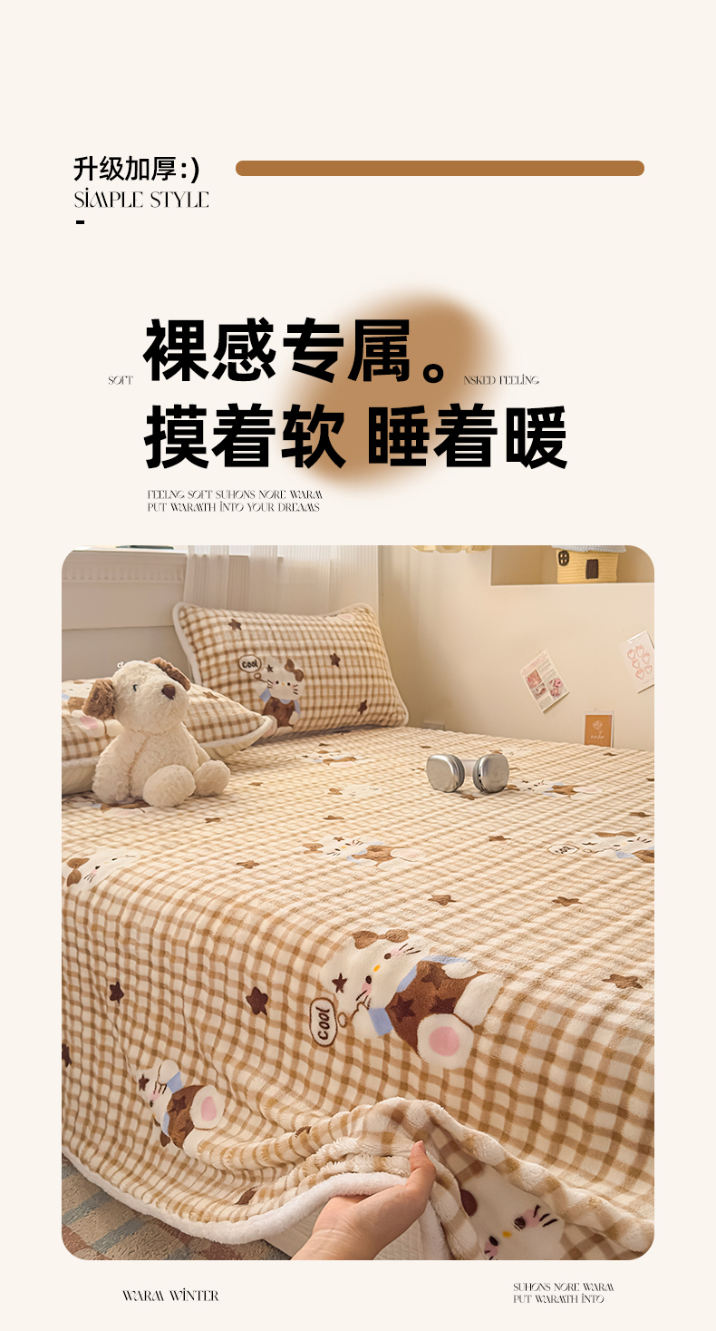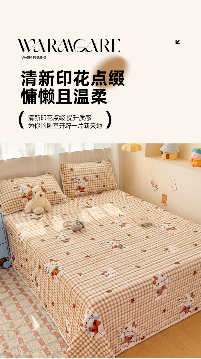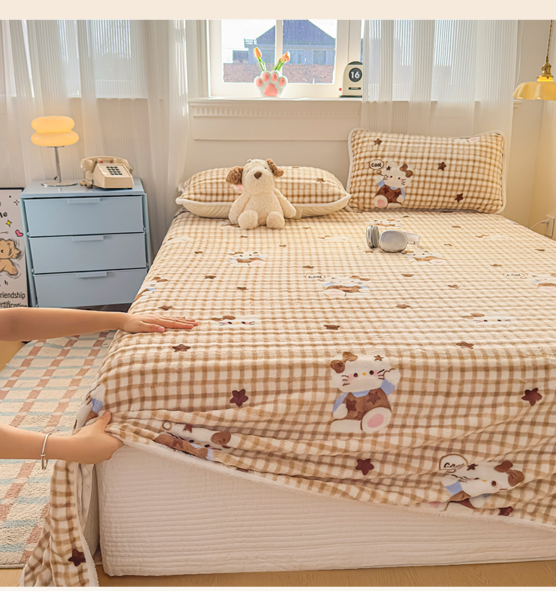 • 91家纺网 家纺一手货源 找家纺 丝芙妮家居(原乐视家纺) 2025新款A类牛奶泡泡绒印花单品床单 慵懒KT