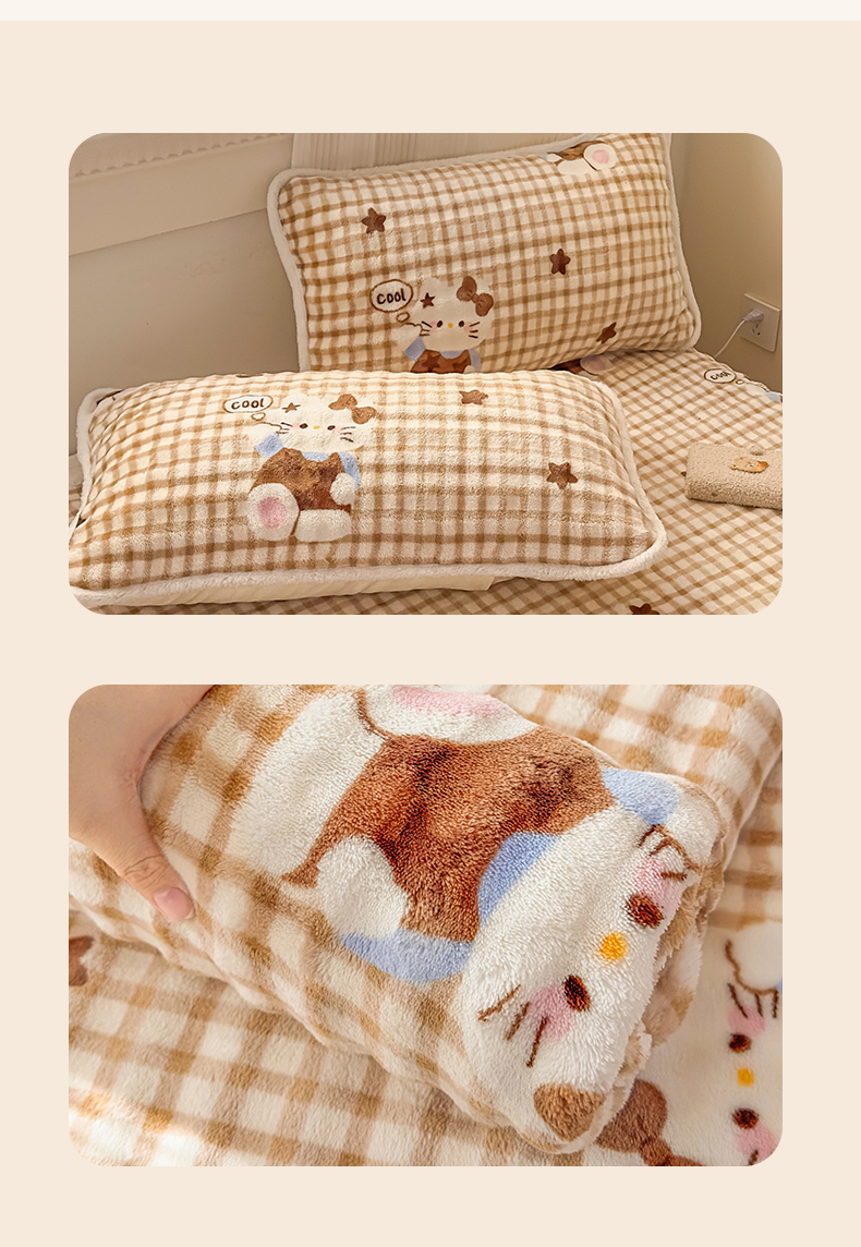 丝芙妮家居(原乐视家纺) 2025新款A类牛奶泡泡绒印花单品床单 慵懒KT