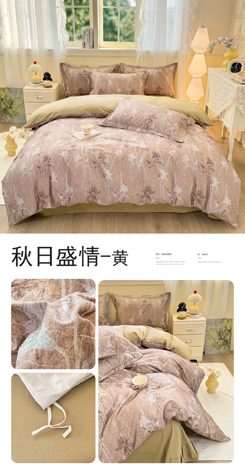 直播2024新款斜纹磨毛印花四件套植物羊绒套件秋风似锦,秋风似锦