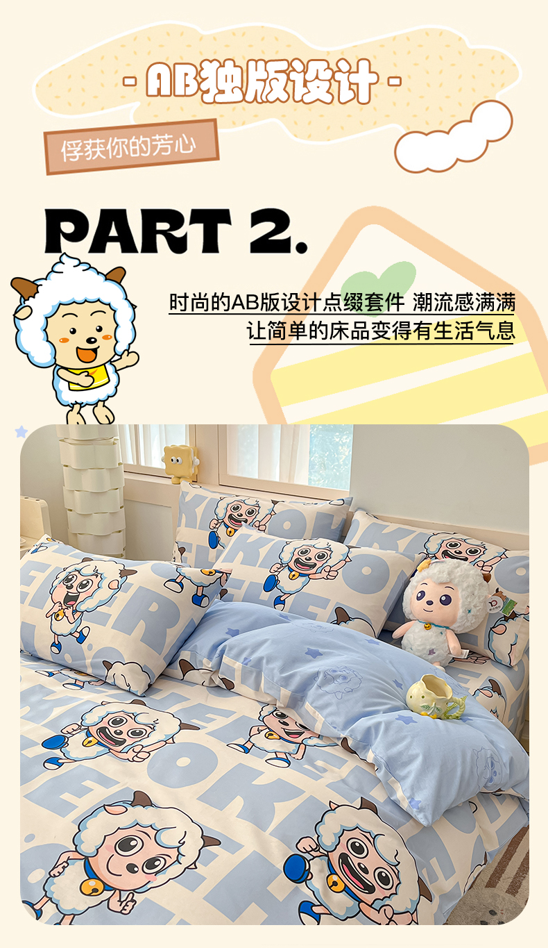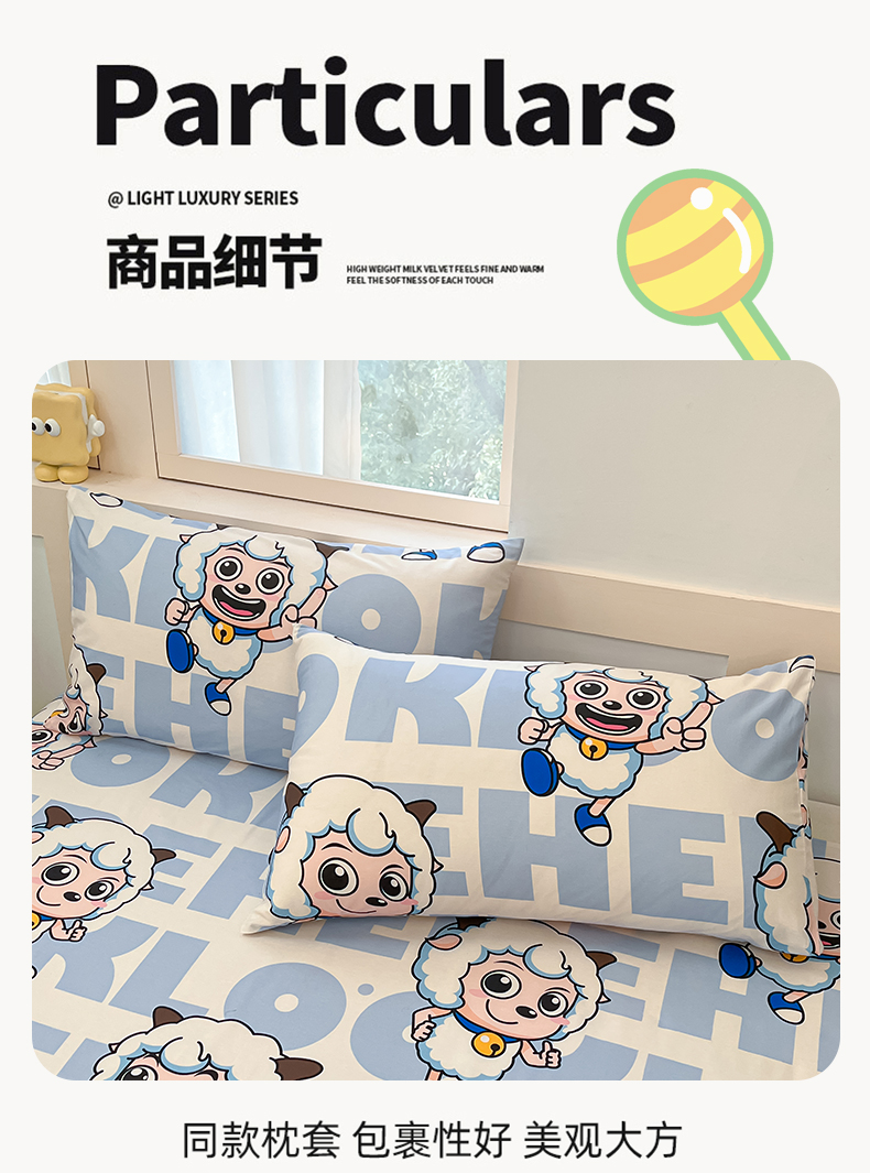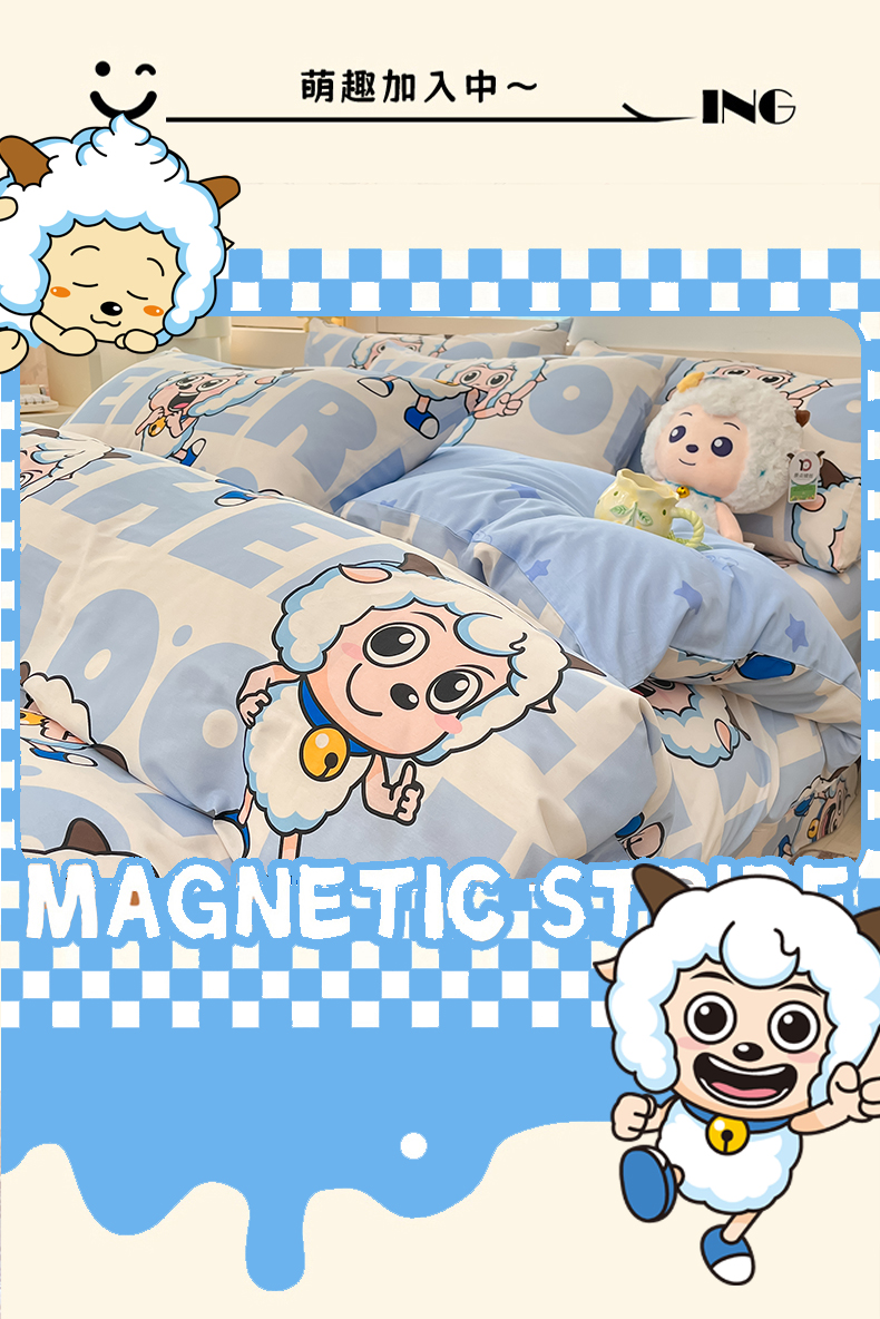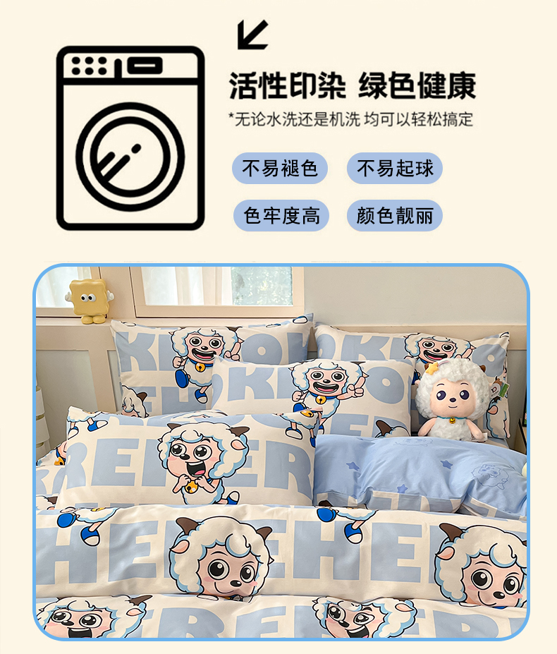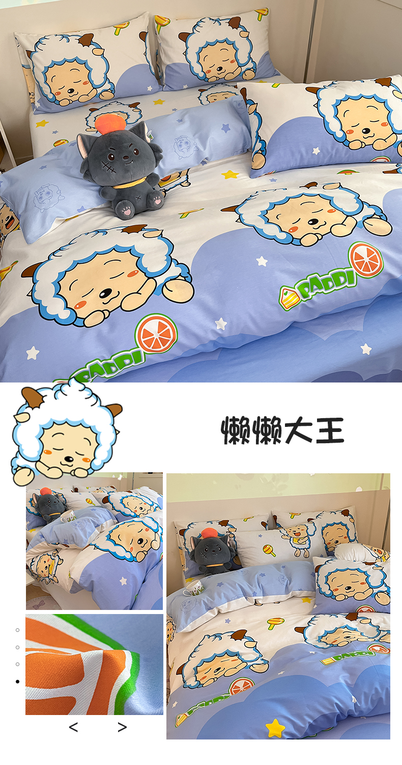 当前位置: 91家纺网 > 商品网购 > 床品套件 > 四件套 > 全棉普通四件套 > 金鑫汇家纺 2025新款喜羊羊与灰太狼全棉四件套 字母喜羊羊