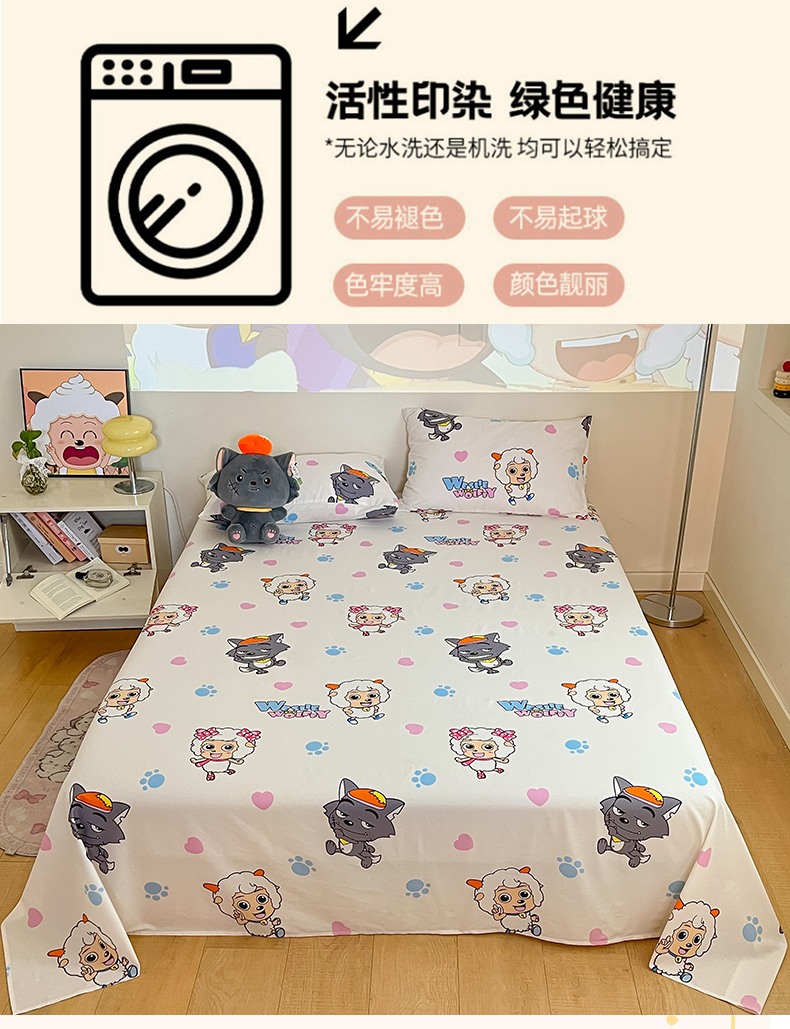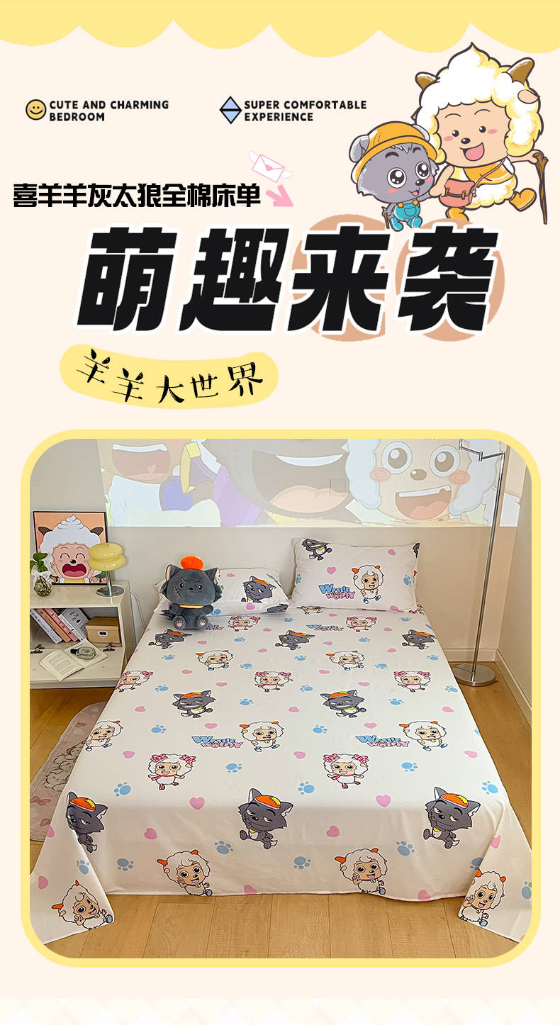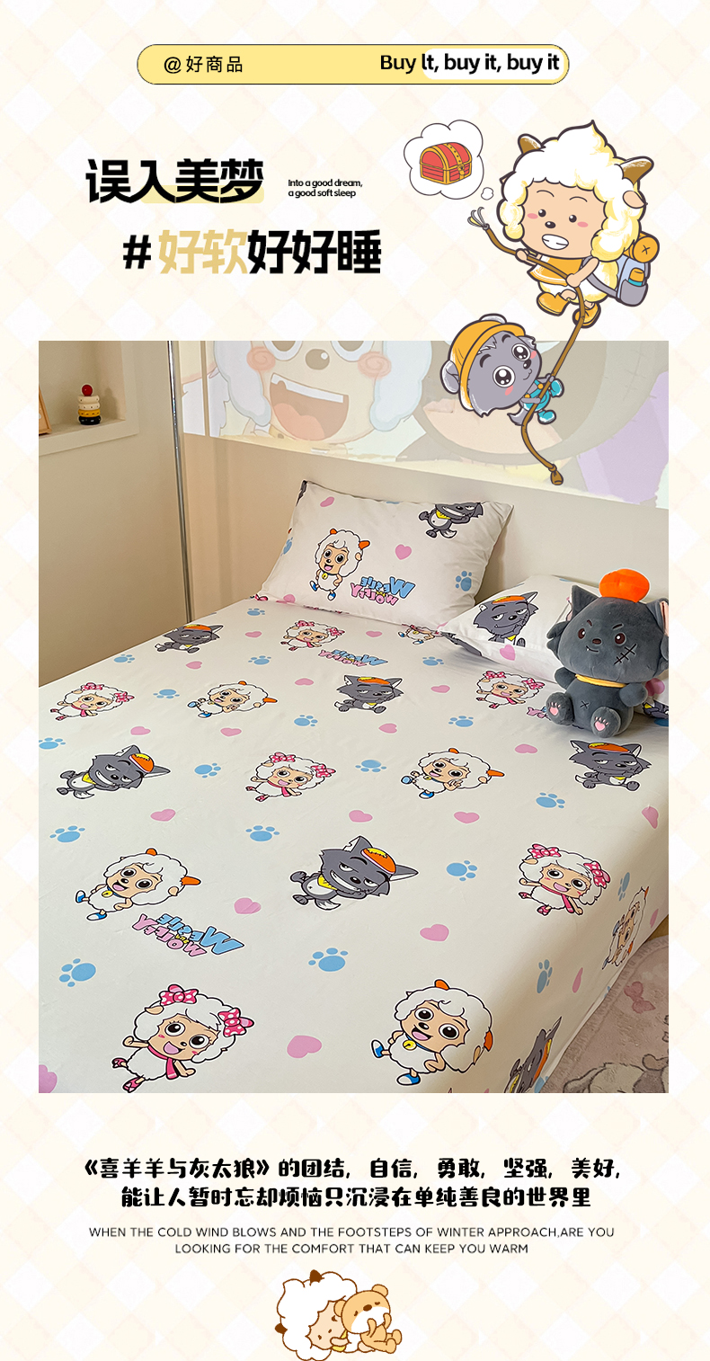 商品名称:金鑫汇家纺 2025新款喜羊羊与灰太狼全棉单品床单 狼羊共舞
