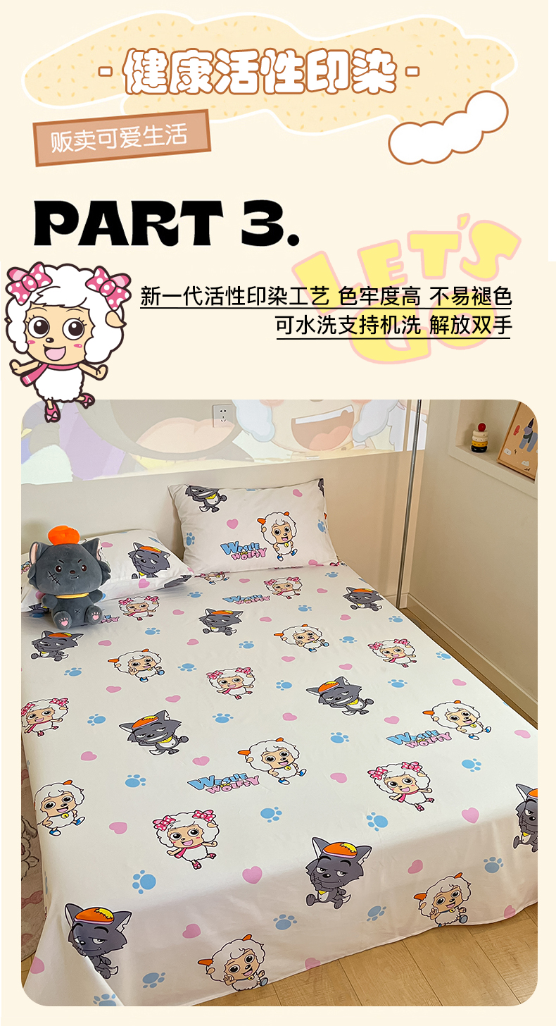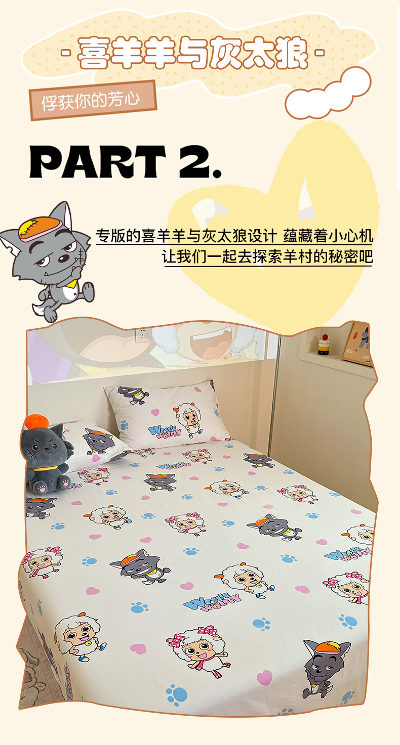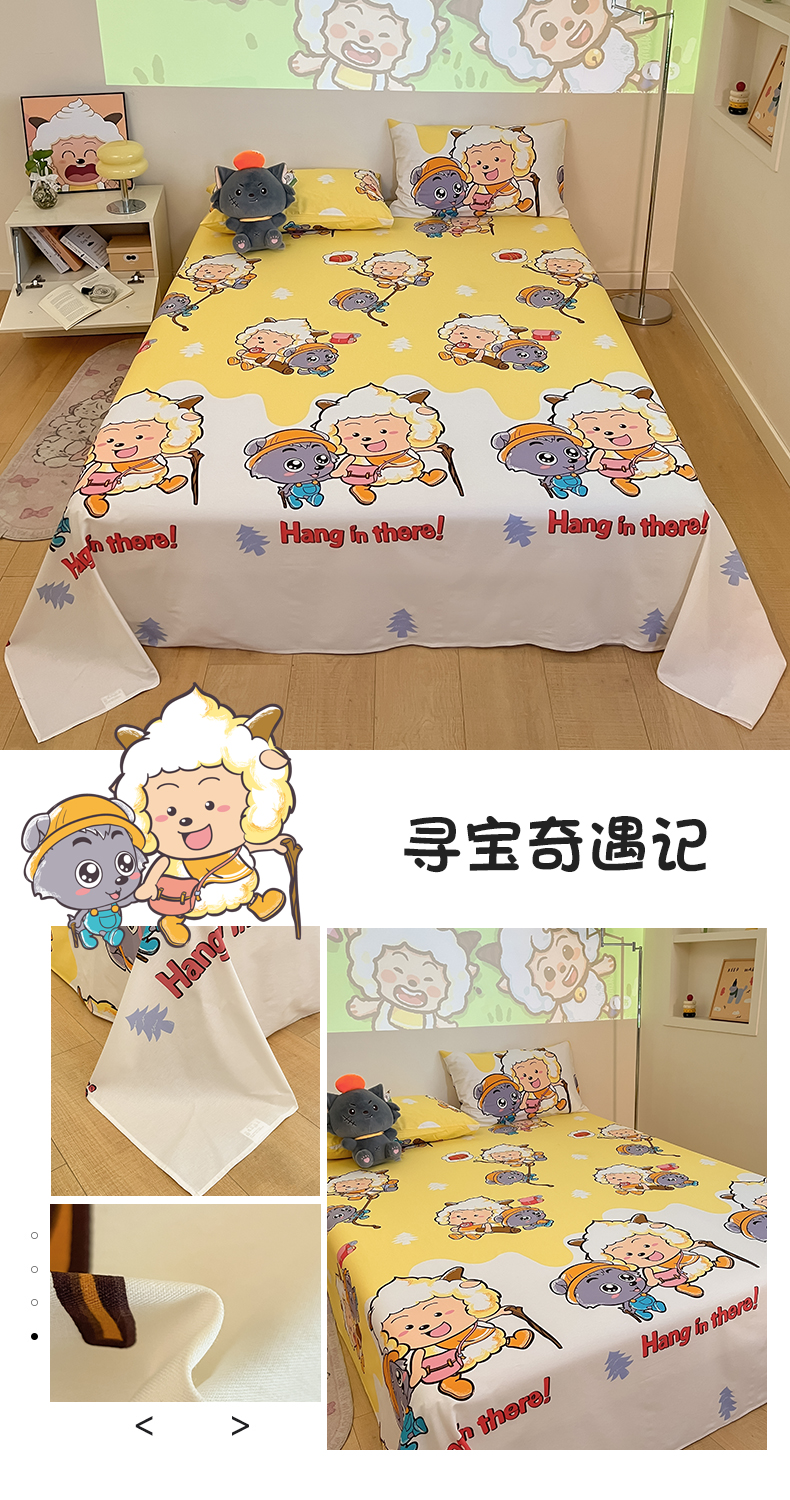 商品名称:金鑫汇家纺 2025新款喜羊羊与灰太狼全棉单品床单 狼羊共舞