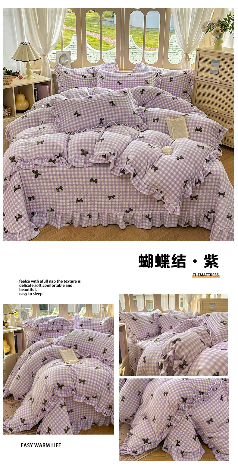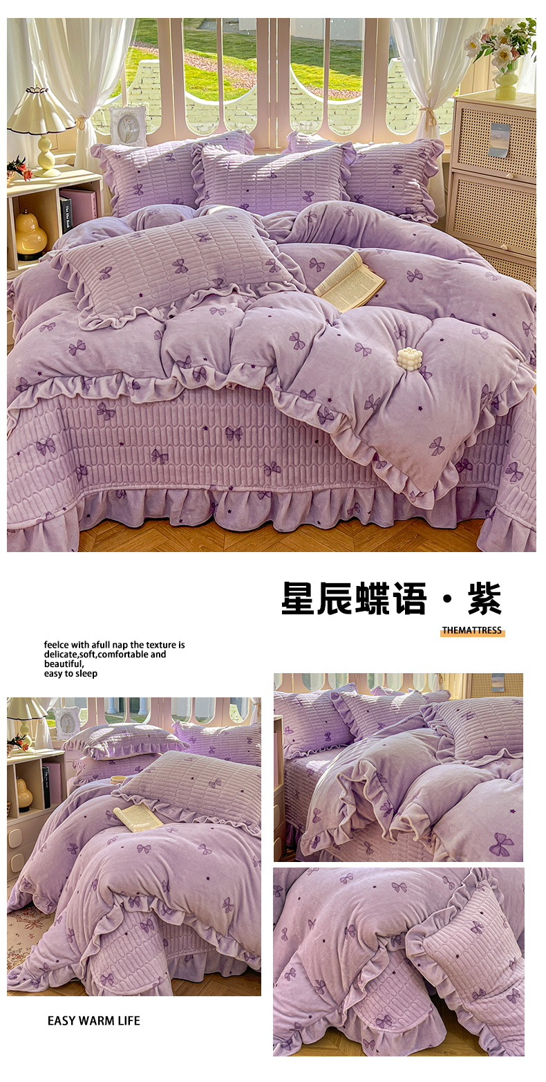 (总)美梦家纺 2025新款牛奶绒花边夹棉床盖四件套,爱心-灰,蝴蝶结-紫,蝶舞,蕾丝花-蓝,豆蔻,咖波点,蝴蝶结-灰,灵动草莓-米,秋叶-咖,甜美女孩,乌梅紫酱,星辰蝶语-紫,雨后花园,紫色物语,冰淇淋