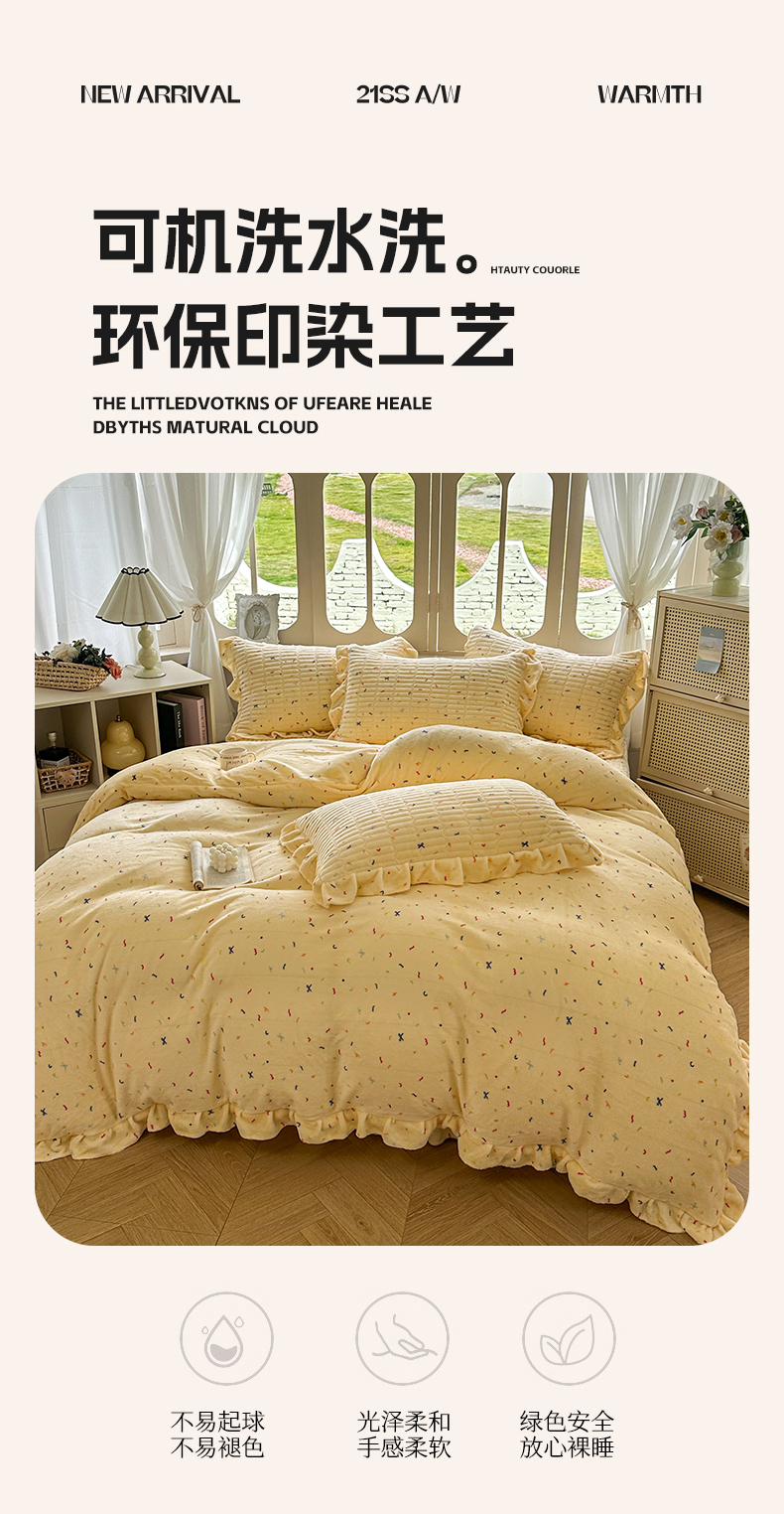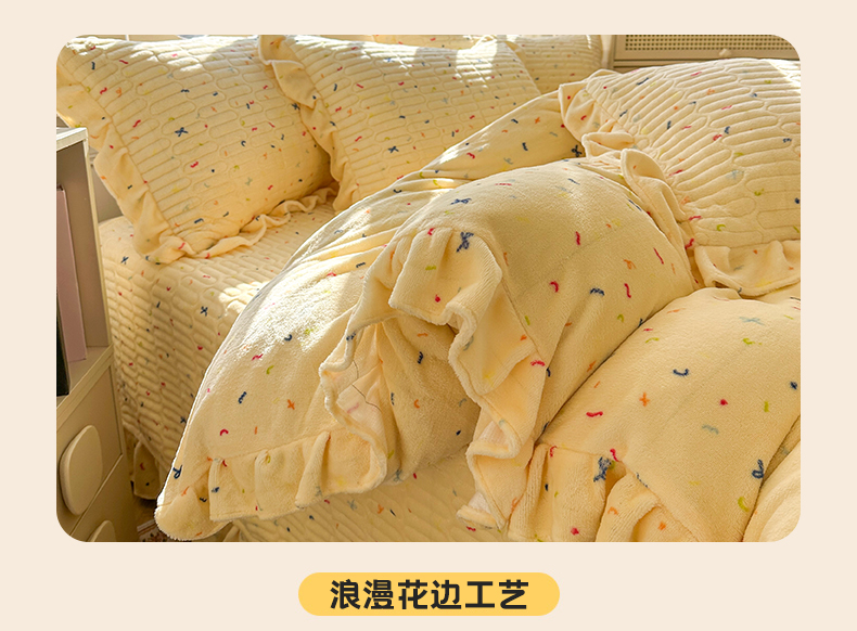 商品名称:美梦家纺 2025新款牛奶绒花边夹棉床盖四件套 雨后花园