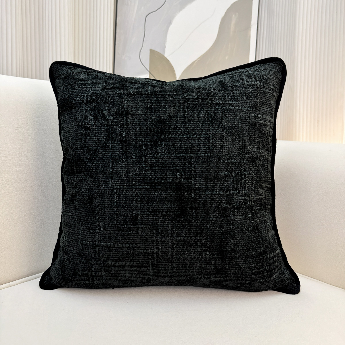 爱家居 2025新款纯色加厚雪尼尔纹理抱枕轻奢家居靠垫沙发床头靠包枕可拆洗 轻奢雪尼尔—黑色