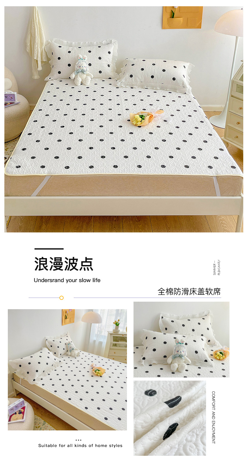 羽爱家纺 2025新款舒适可定制全棉防滑床盖软席浪漫波点