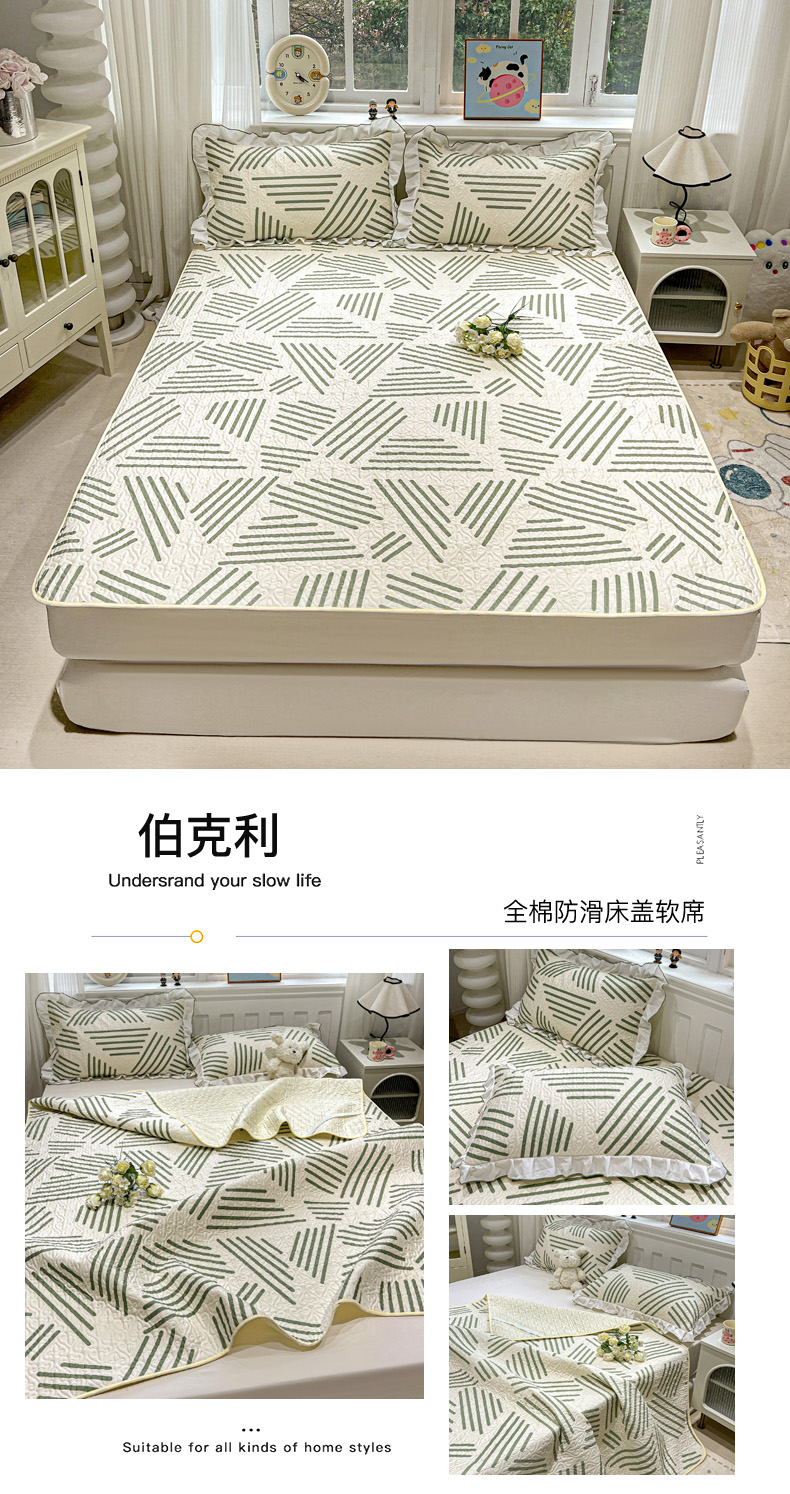 羽爱家纺 新款舒适可定制全棉防滑床盖软席伯克利