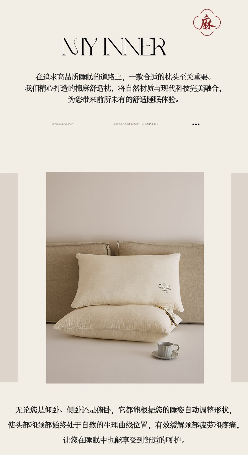 当前位置: 91家纺网 > 商品网购 > 枕头/枕芯/保健枕/颈椎枕 > 枕头枕芯 > 境月枕芯坊 2025新款棉麻舒适枕枕头枕芯 棉麻舒适枕-立体高款