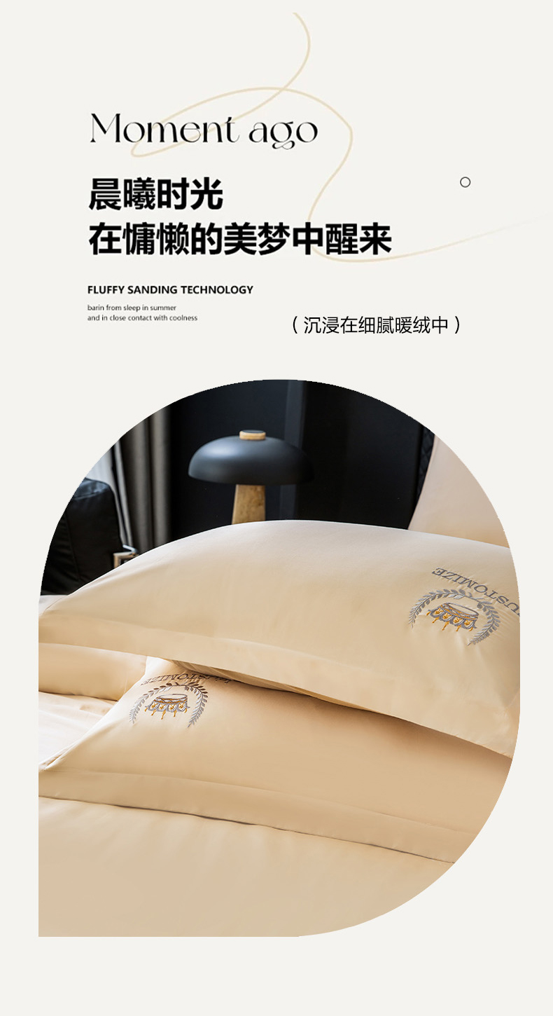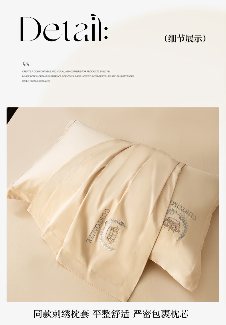 卡诗兰 2025新款A类50S双股新疆长绒棉贡缎面料刺绣四件套-高端礼盒装 香槟色-皇冠