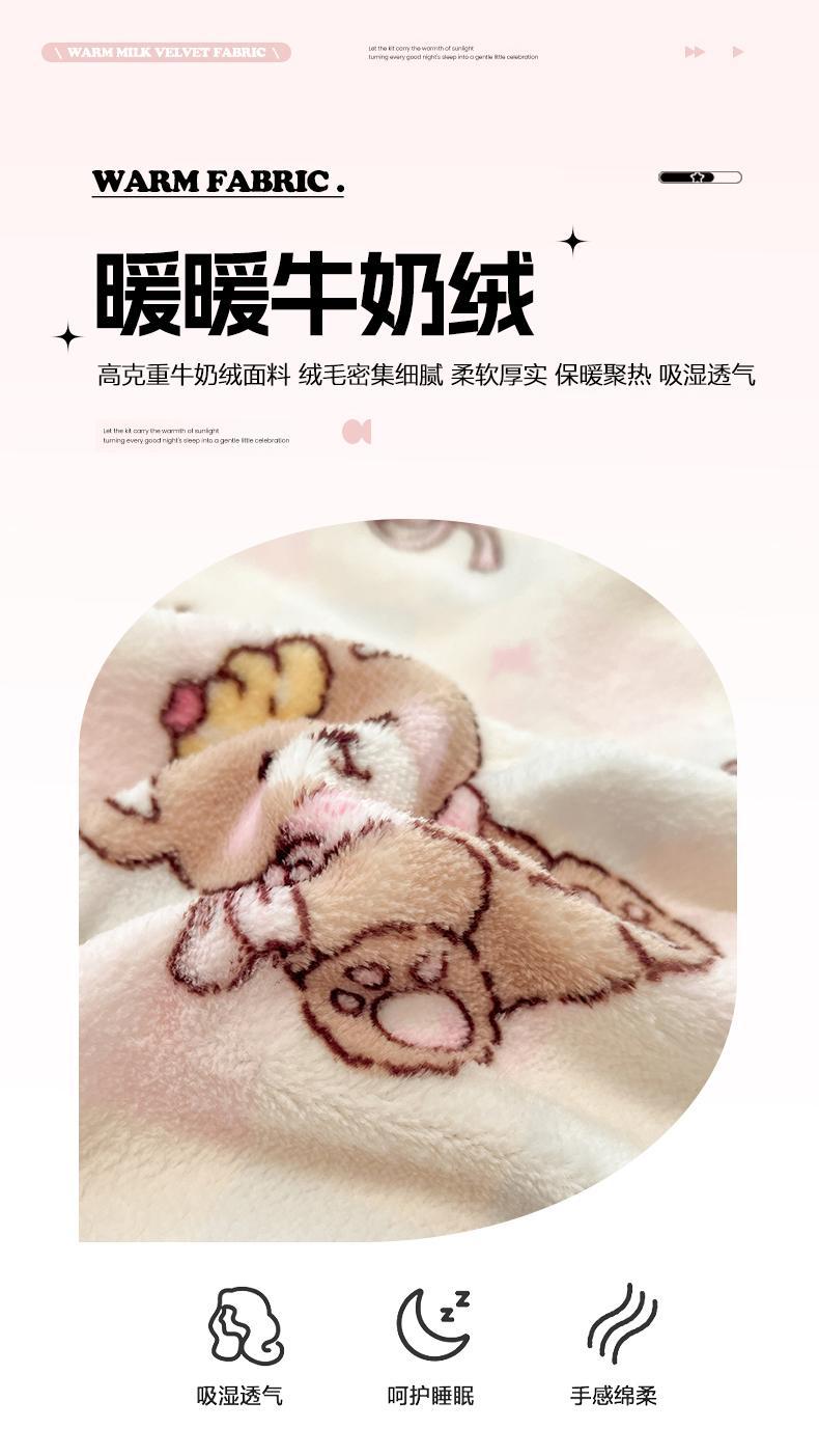 (总)吉象家纺 2025新款高克重牛奶绒印花被套,布偶猫,宠物派,点点围脖狗,粉色猫咪,格子樱桃狗,狗狗乐园,好伙伴,萝莉猫咪,奶萌修狗,小可爱,星星宠物,音乐熊仔