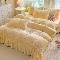 商品名称:苏米娜2025秋冬新款11斤230g全消光牛奶绒夹棉床盖款四件套纯色蕾丝花边刺绣床裙款床盖--米兰系列 米兰-暖黄