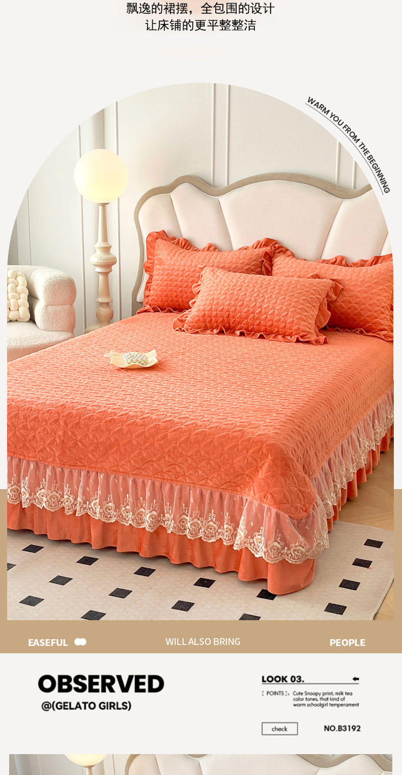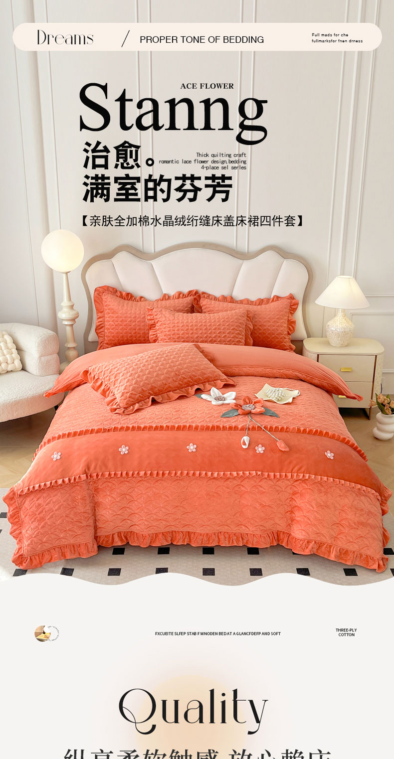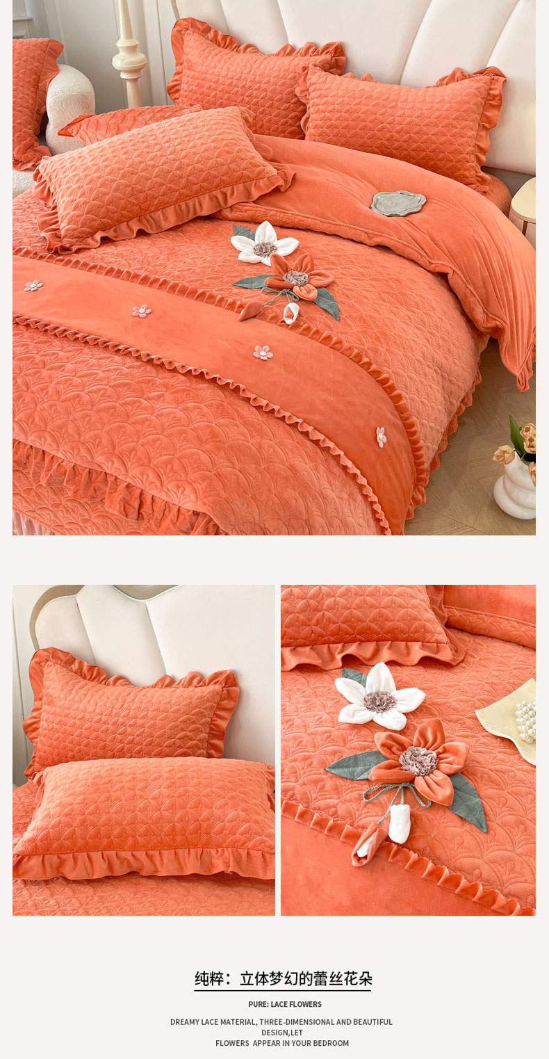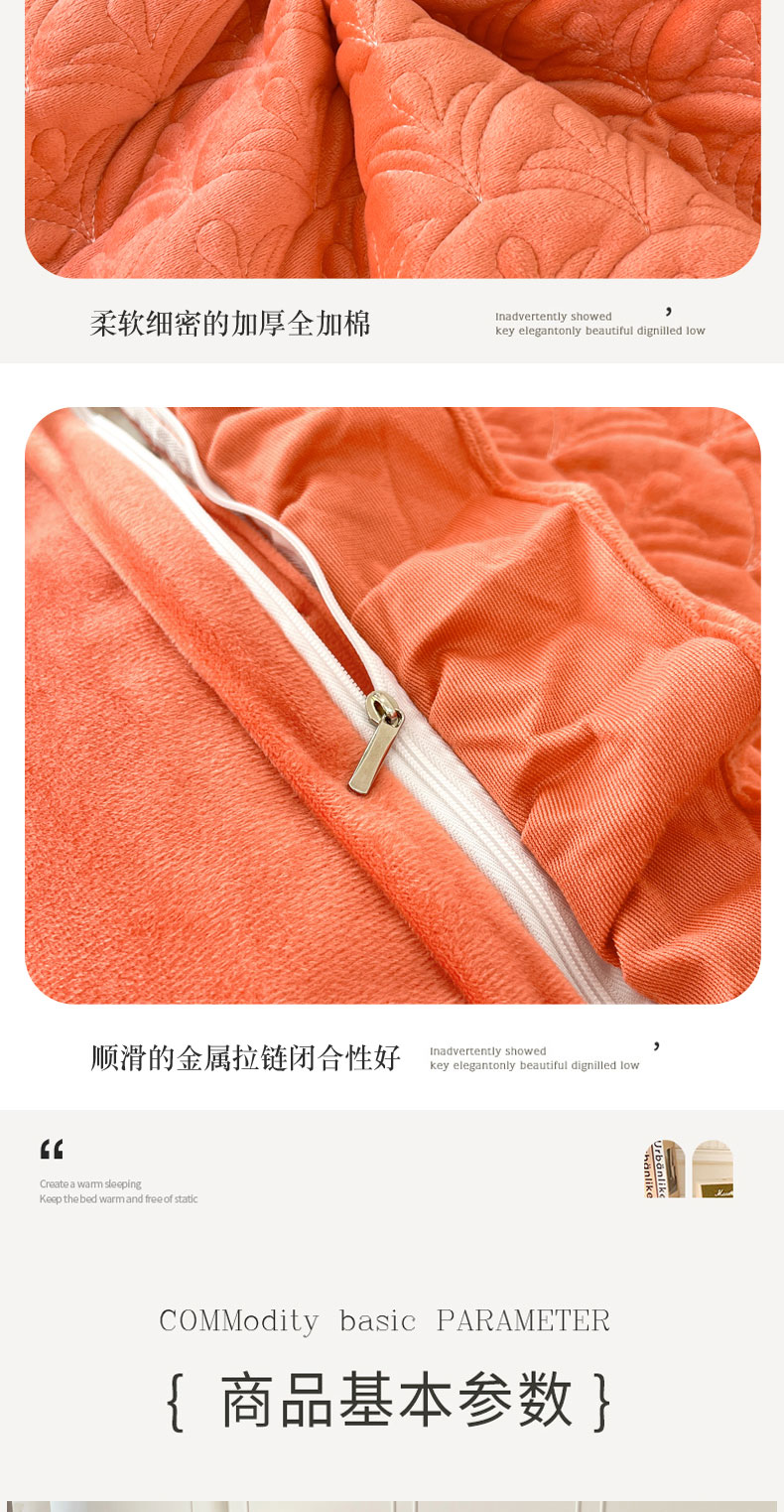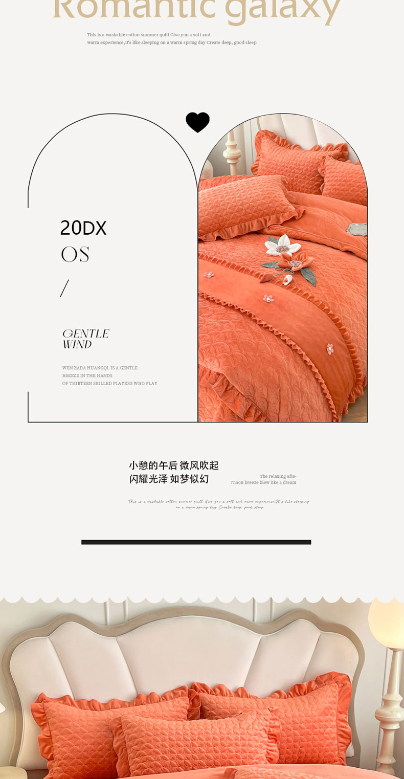 商品名称:兴美佳家纺 2024新款水晶绒全加棉床盖四件套-冬之恋 冬之恋-橘色
