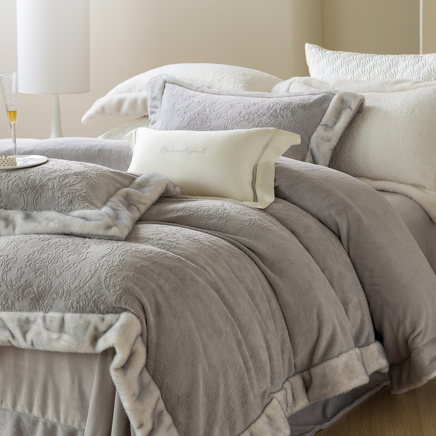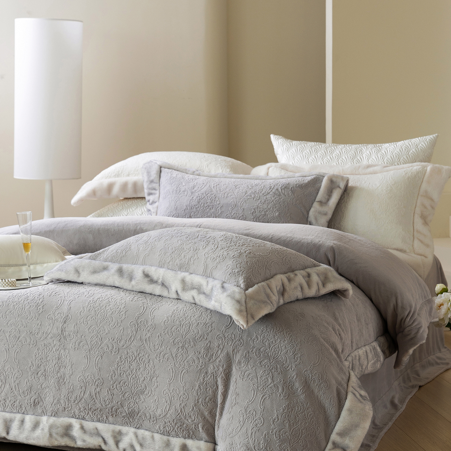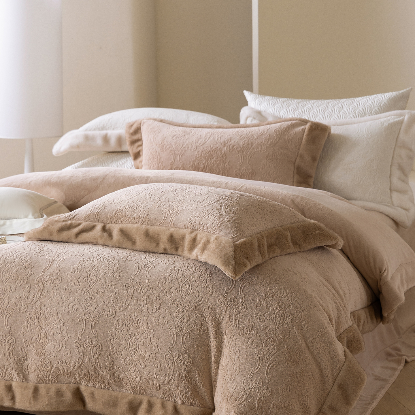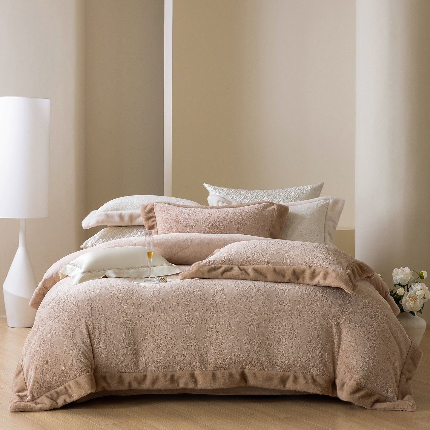 佳汐蓝家纺 2025新款奶芙绒浮雕工艺四件套-雪春北集 控价:券后不低于458 雪春北集-白色