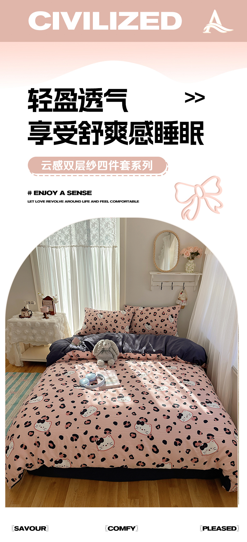 (总)贝扬思家纺 2025新款敲可爱的奶呼呼云感双层纱简约四件套系列-超级治愈~