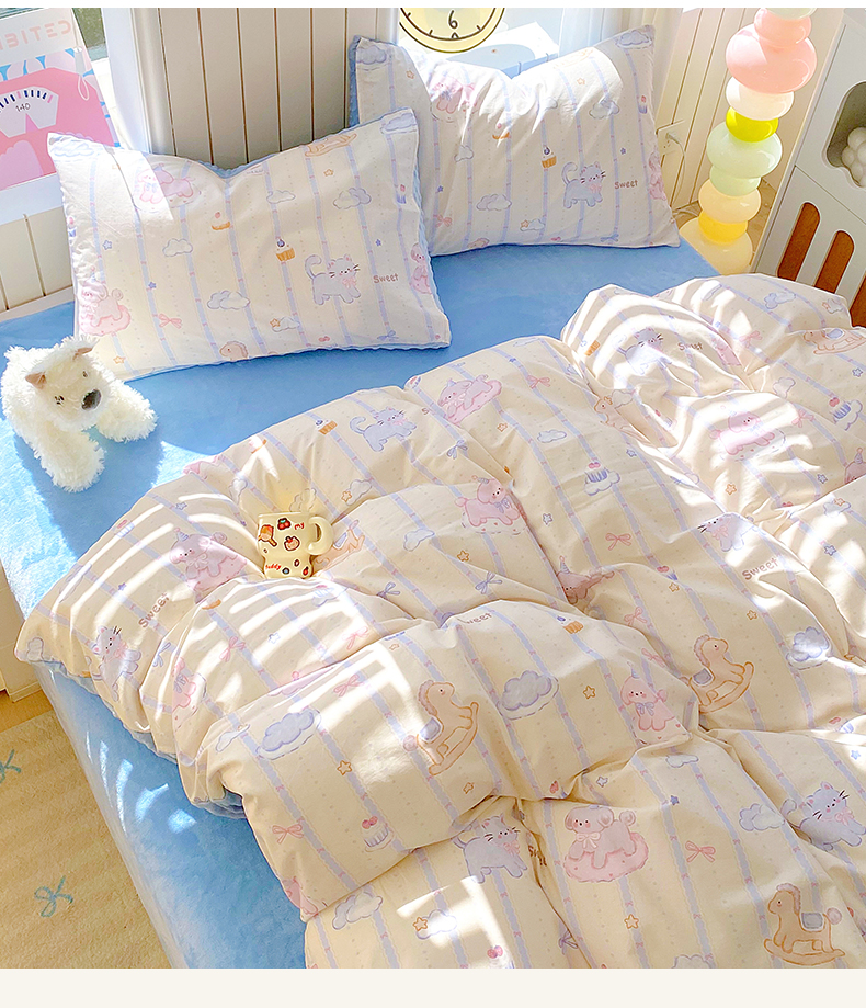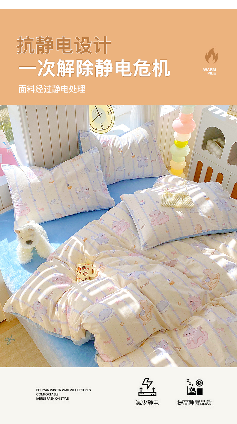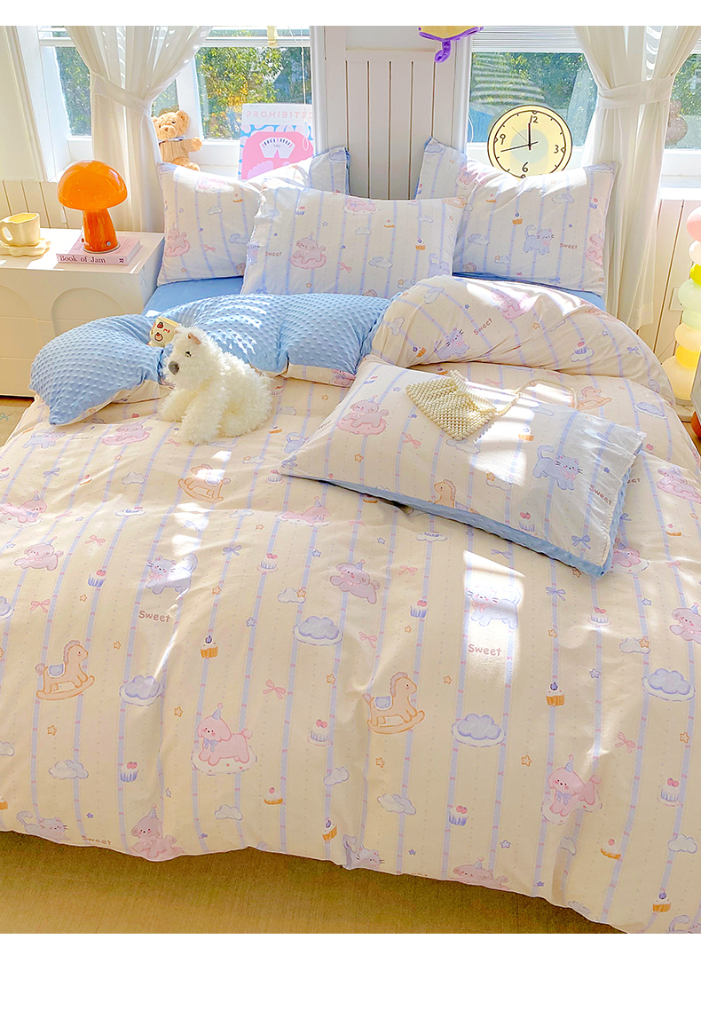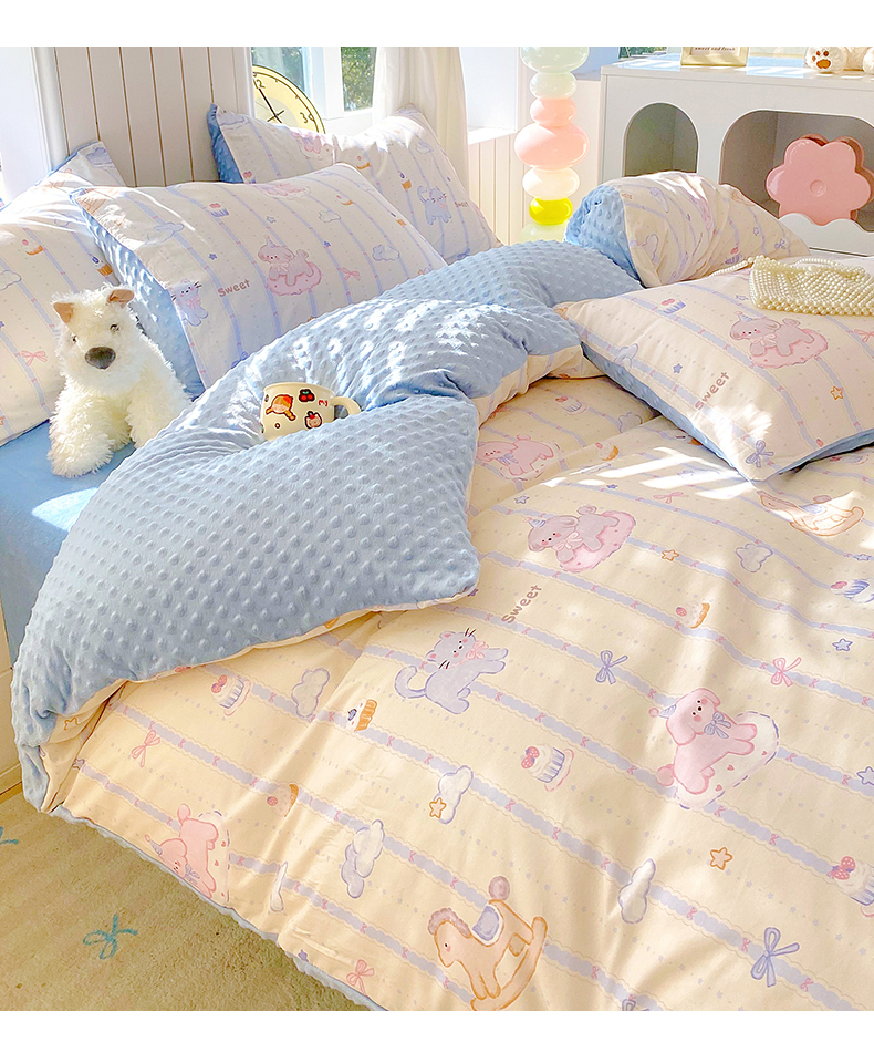 当前位置: 91家纺网 > 商品网购 > 床品套件 > 四件套 > 全棉普通四件套 > 金鑫汇家纺 2025新款全棉纯棉棉加豆豆绒棉加绒系列四件套 棉加豆豆绒-甜梦园-蓝