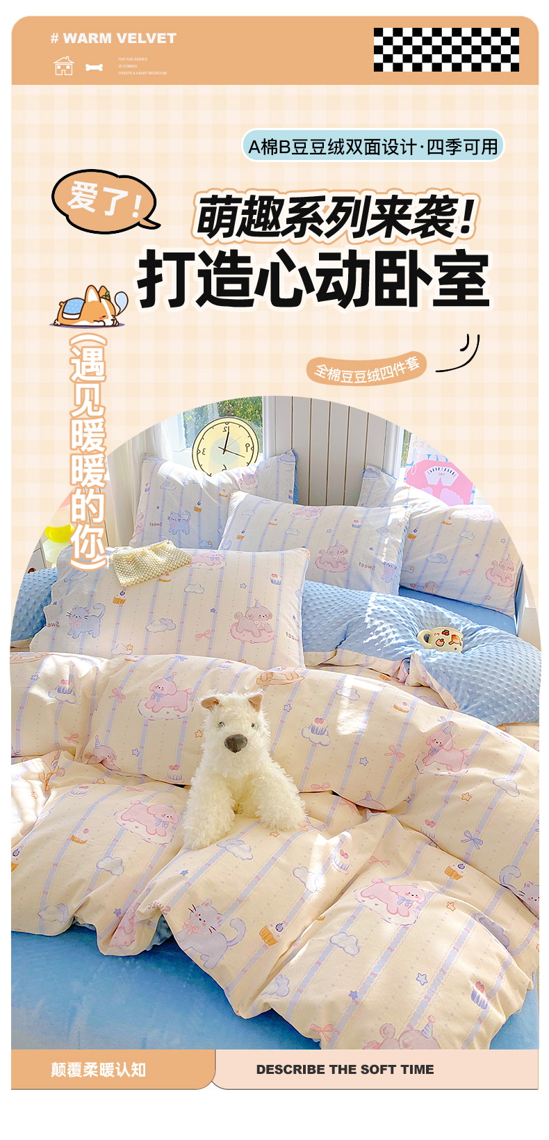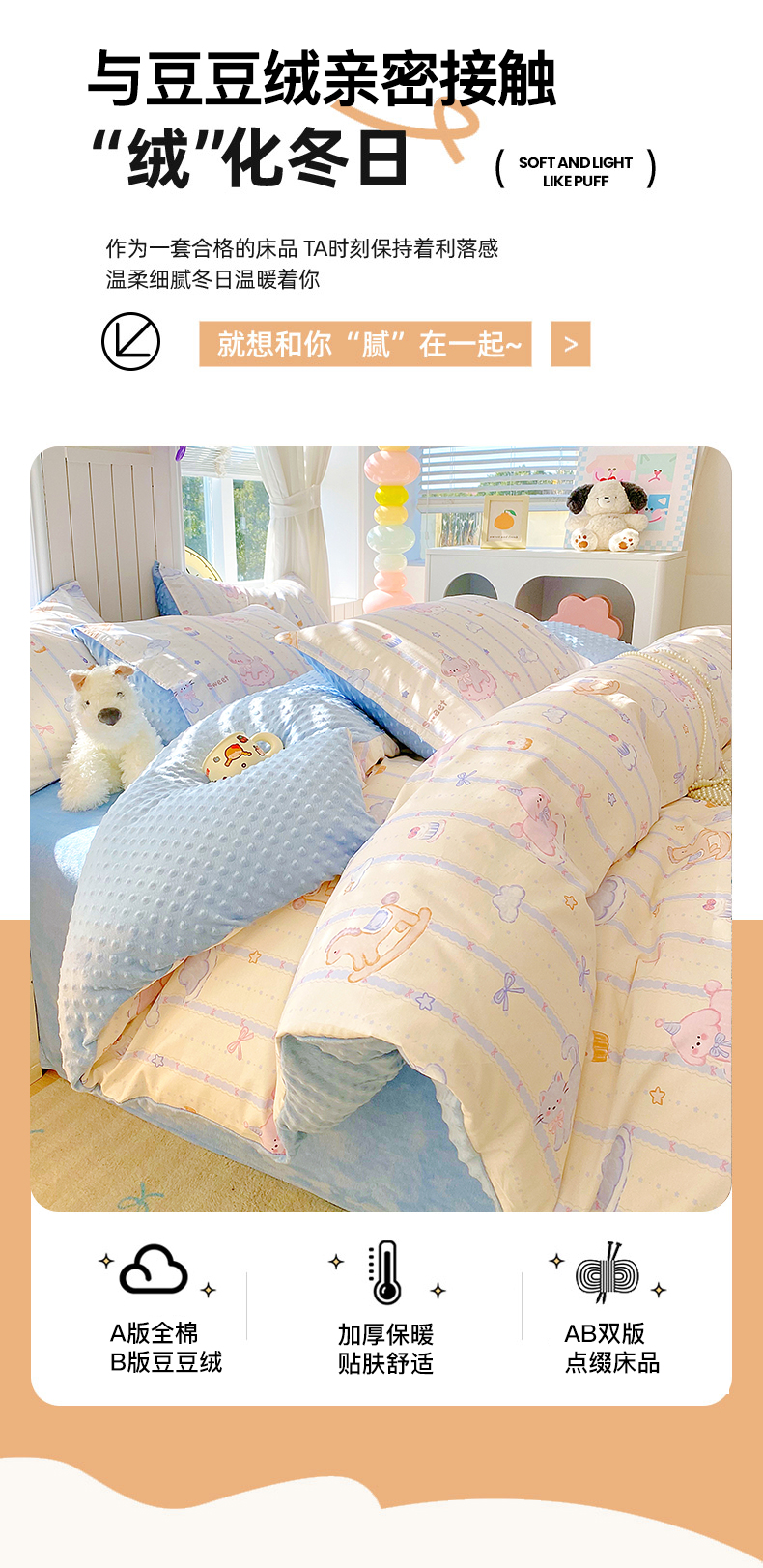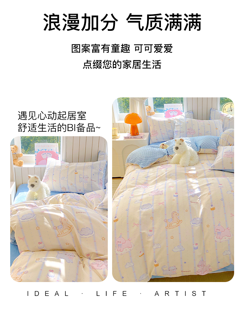 当前位置: 91家纺网 > 商品网购 > 床品套件 > 四件套 > 全棉普通四件套 > 金鑫汇家纺 2025新款全棉纯棉棉加豆豆绒棉加绒系列四件套 棉加豆豆绒-甜梦园-蓝