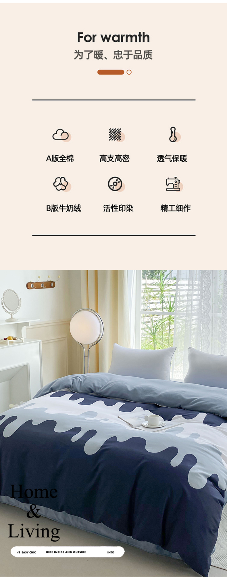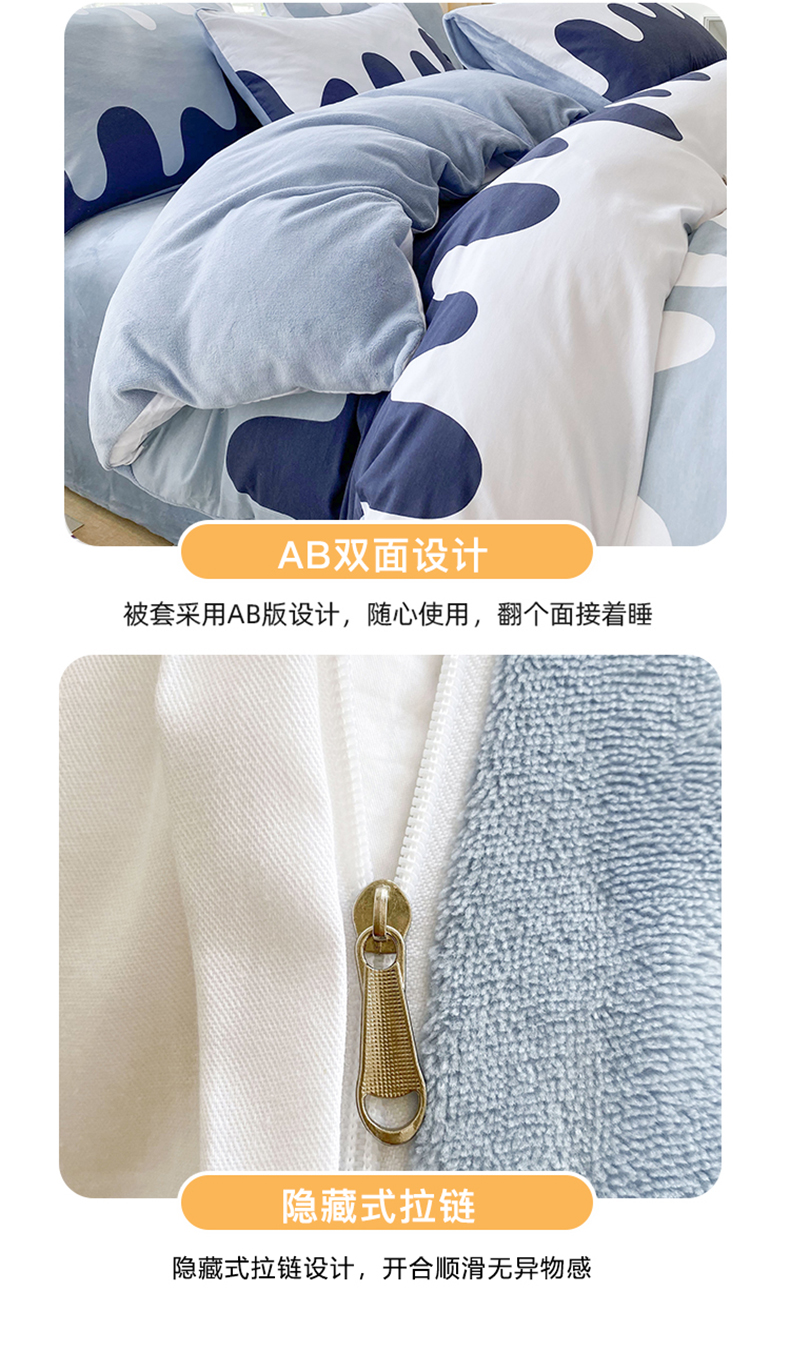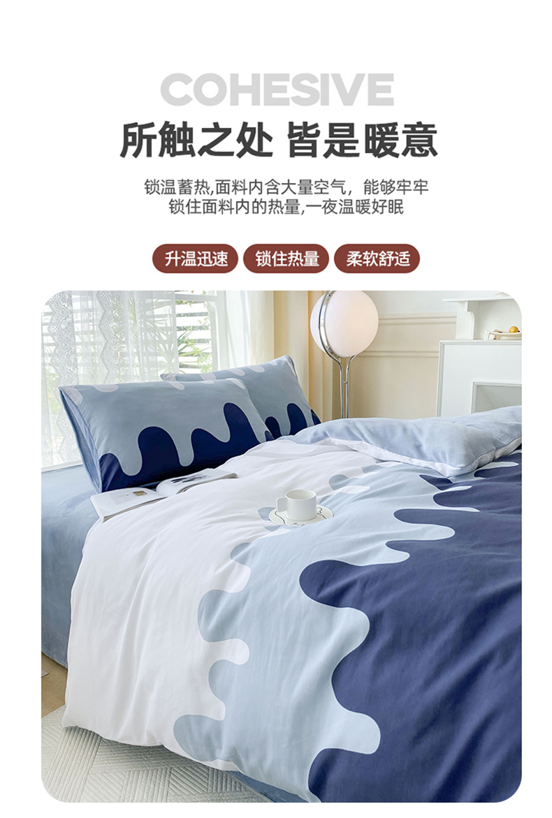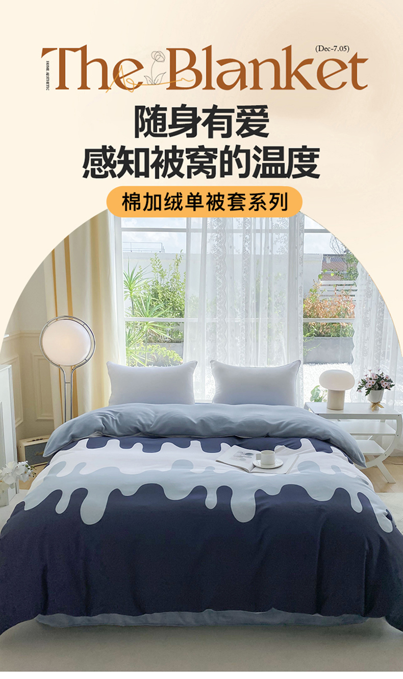 金鑫汇家纺 2025新款全棉豆豆绒系列单被套-棉加绒系列 棉加绒-奶油蓝
