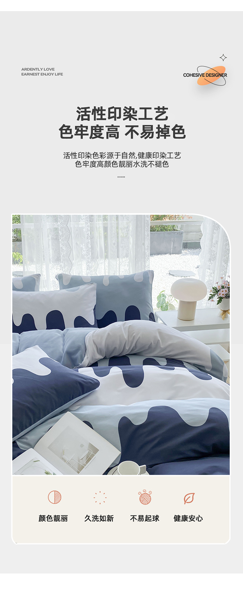 (总)金鑫汇家纺 2026新款全棉印花小清新四件套系列-可露丽,海盐可露丽,浅咖可露丽,浅绿可露丽,月下花影-桔,月下花影-蓝,月下花影-绿