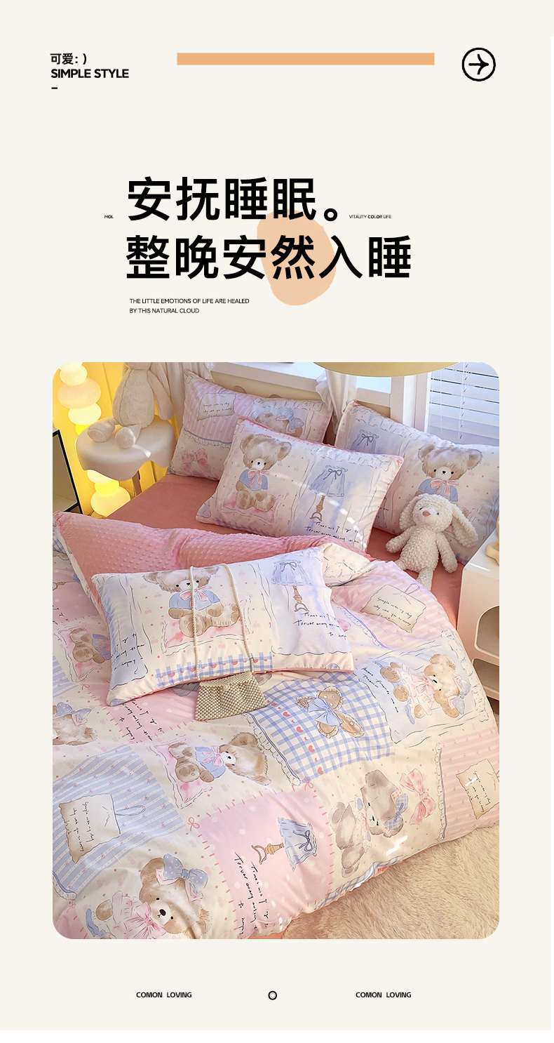 金鑫汇家纺 2025新款全棉豆豆绒系列单被套-棉加绒系列 棉加豆豆绒-熊熊精灵