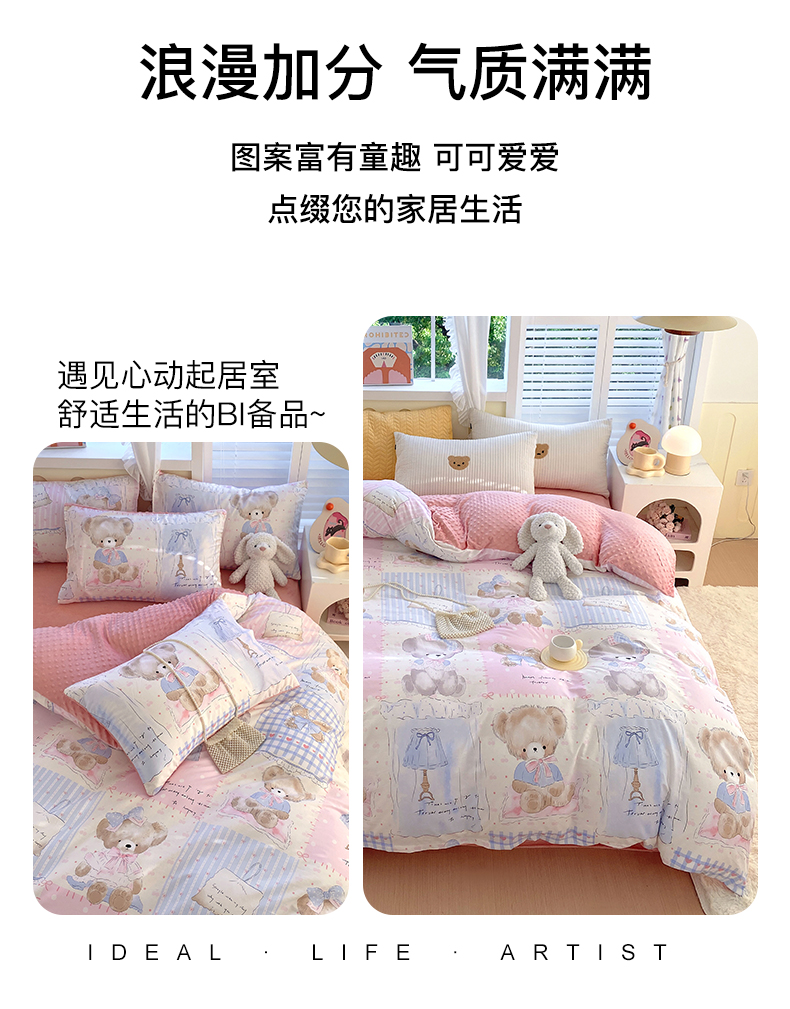 • 91家纺网 家纺一手货源 找家纺 金鑫汇家纺 2025新款全棉豆豆绒系列单被套-棉加绒系列 棉加豆豆绒-熊熊精灵